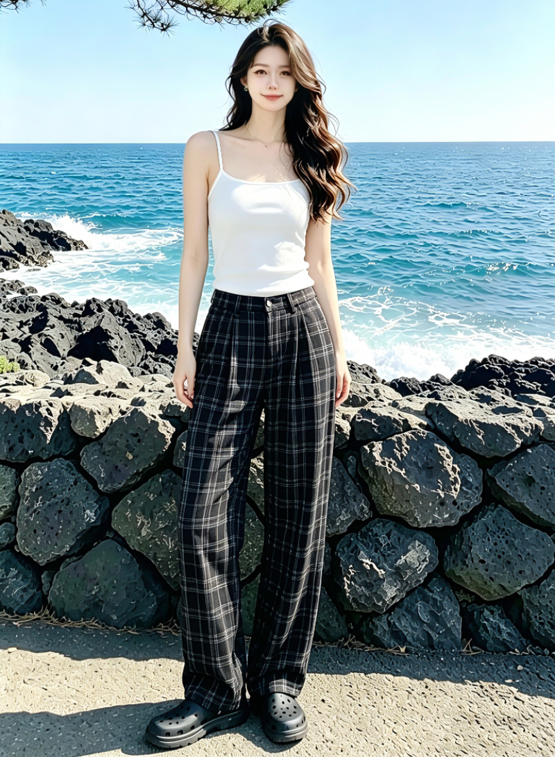 얇고 가벼운 호흡 센스 큰 진자 금액 펌프 로프 핀치 Pleat 넓은 다리 치마바지 캐주얼 바지