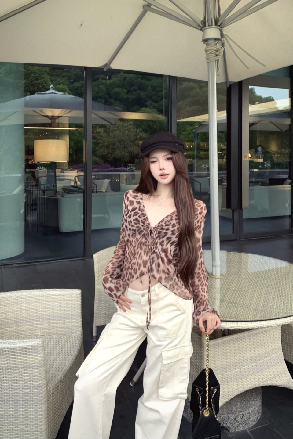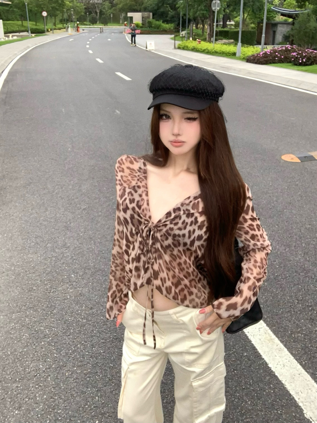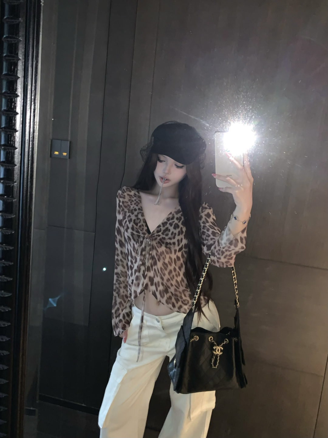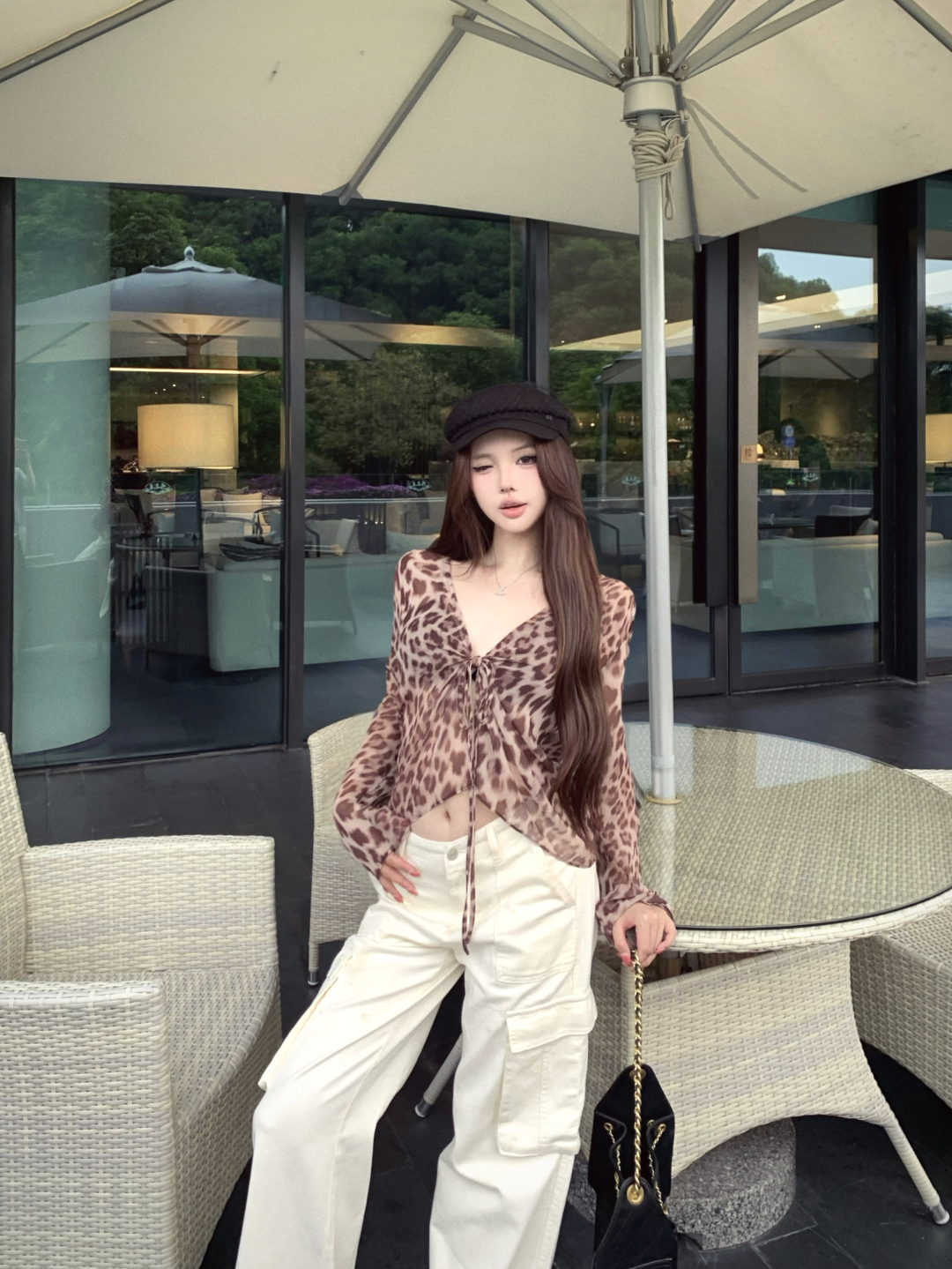 실사 정가 자정 바 플러그 Romantik 작은 셔츠 마이크로 ~을 통해 블라우스 자외선 차단 레오파드 무늬 셔츠 V넥 맨위
