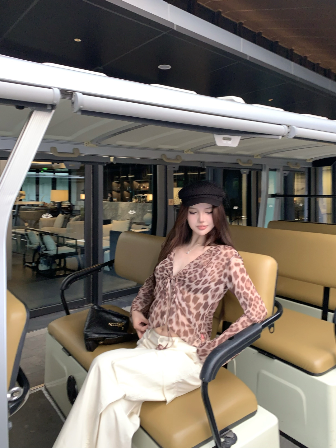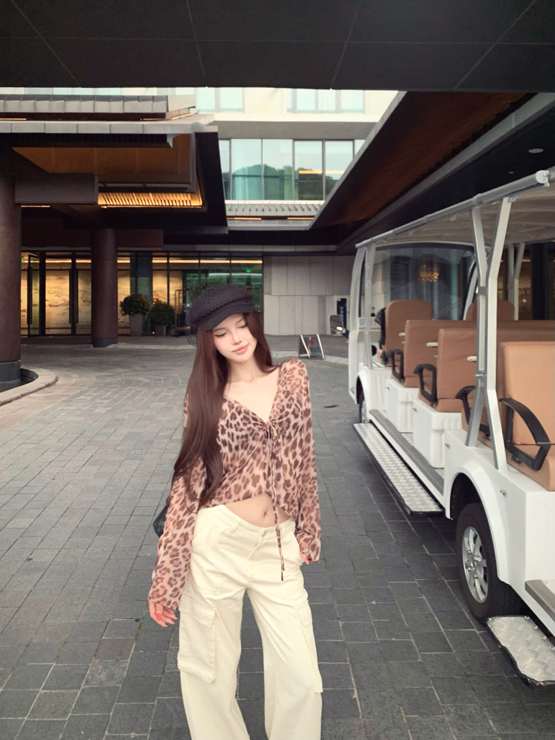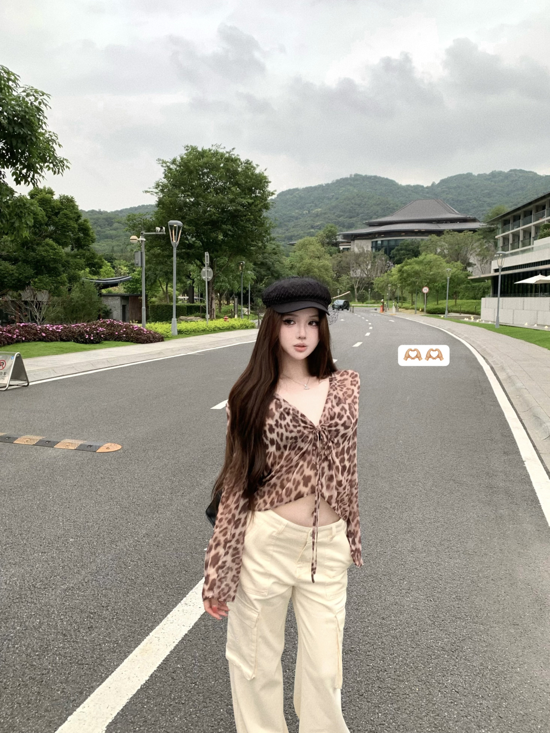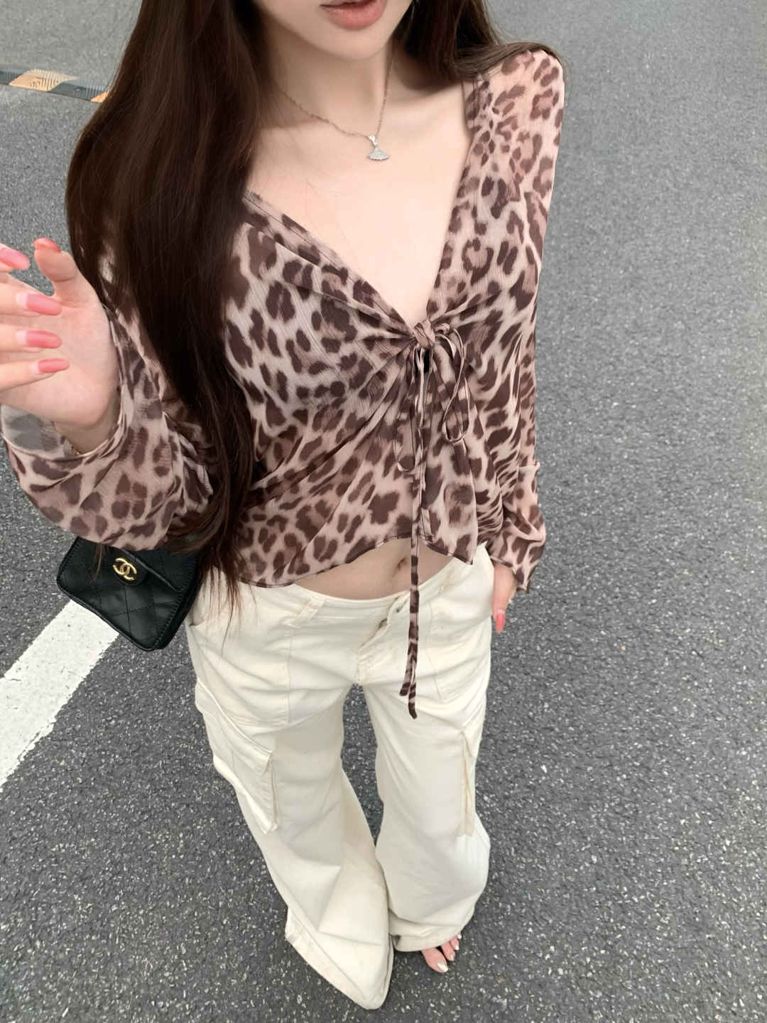 실사 정가 자정 바 플러그 Romantik 작은 셔츠 마이크로 ~을 통해 블라우스 자외선 차단 레오파드 무늬 셔츠 V넥 맨위