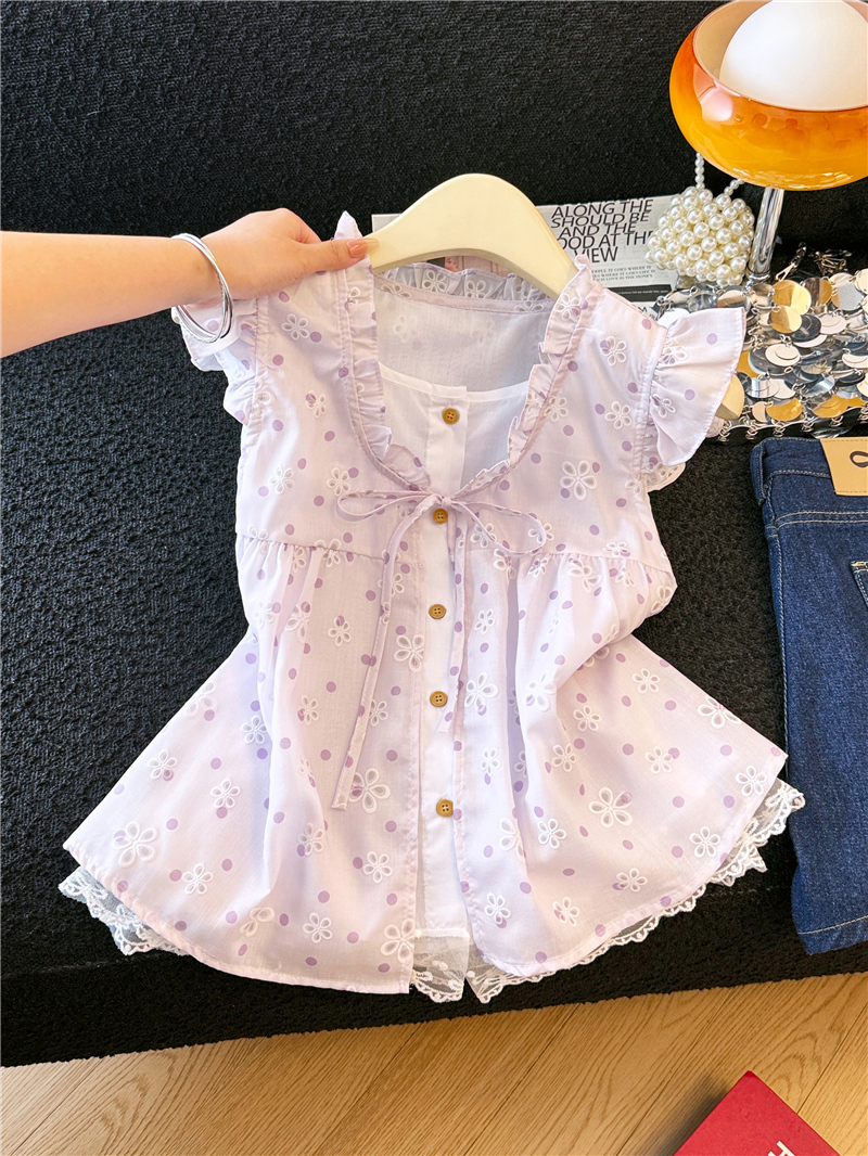 프랑스식 프릴 페이크 레이어드 여성 셔츠 여름 2026 새로운 프릴 연령 감소 루즈핏 Feifei 소매 인형 셔츠