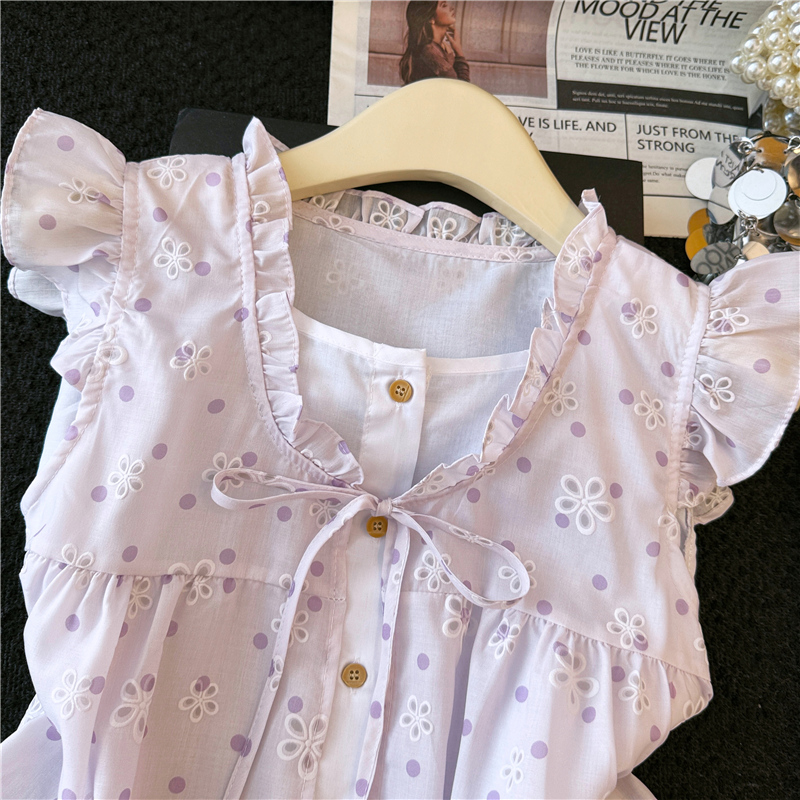 고유 한 아름다운 디자인 센스 V넥 페이크 레이어드 한 부서 ins 달콤함 꽃무늬 쉬폰 슬립 여성 루즈핏 민소매 맨위
