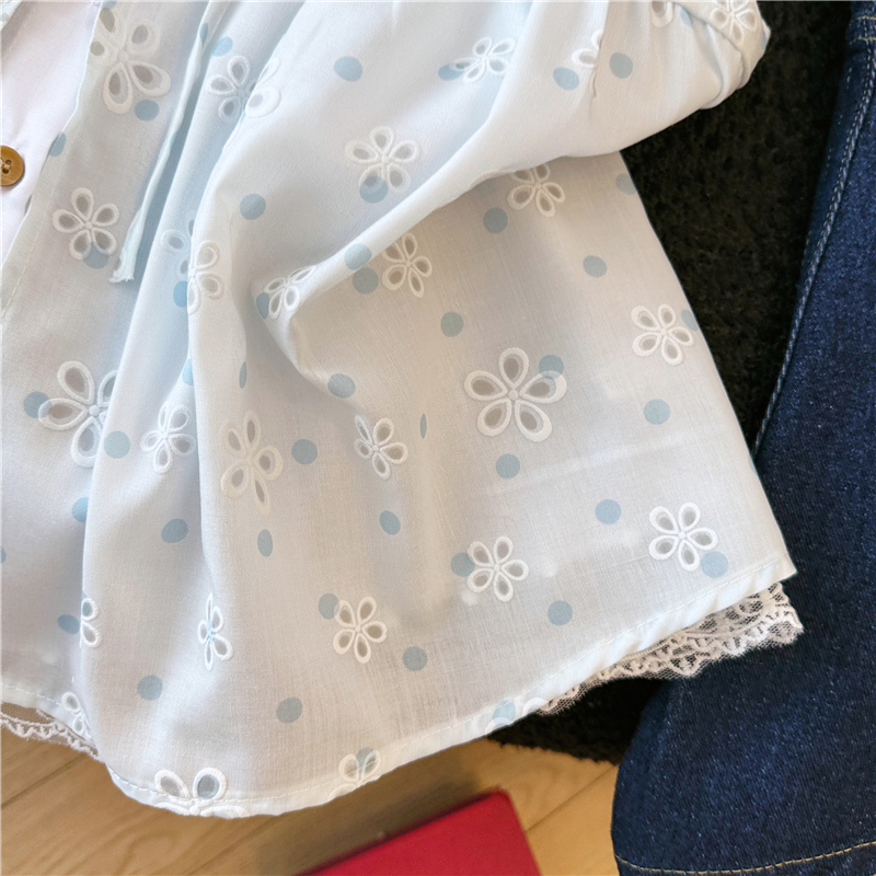 프랑스식 휴가 바람 자수 꽃 홀로우 아웃 7부 소매 여성 셔츠 봄 여름 2026 루즈핏 싱글 줄 버튼 연령 감소 맨위
