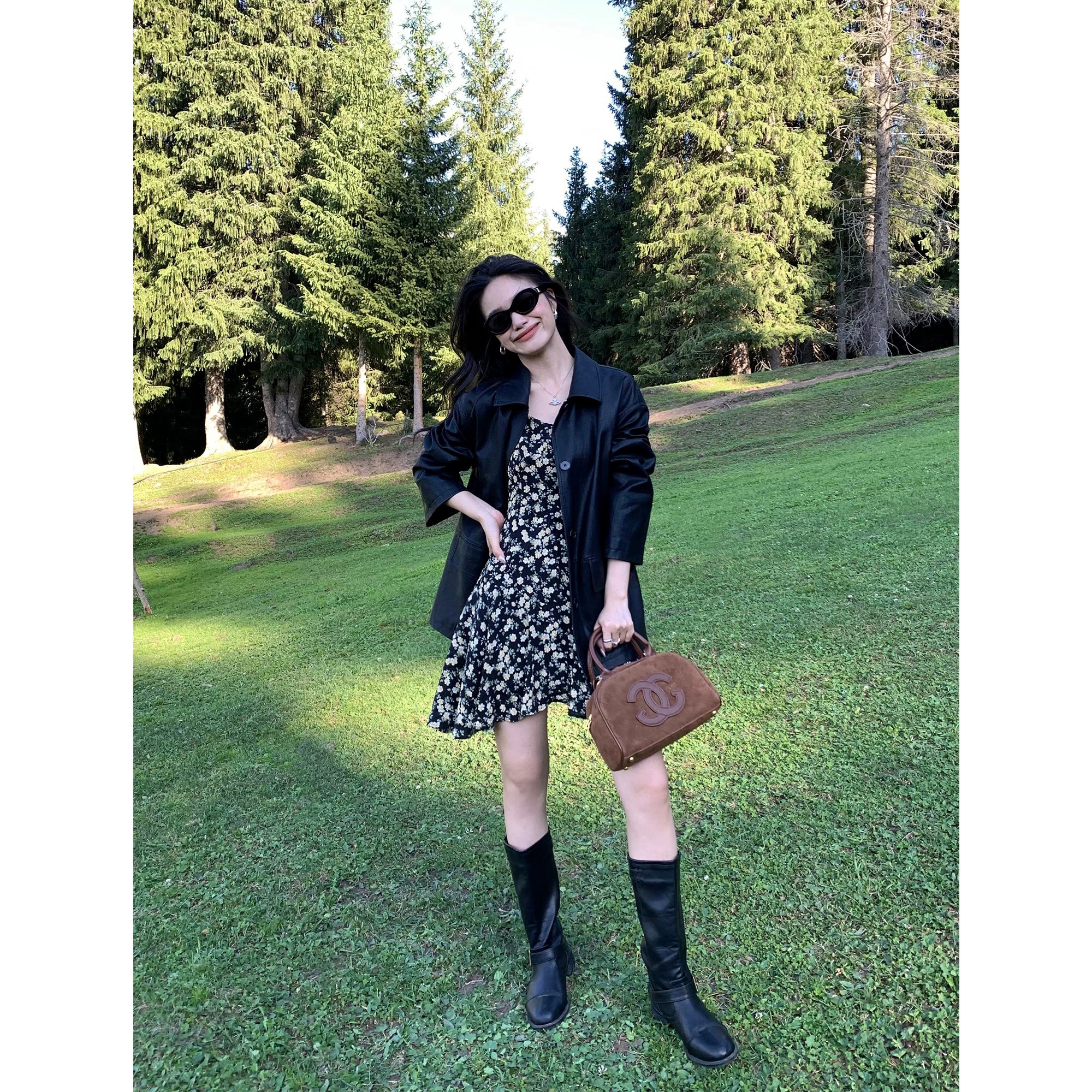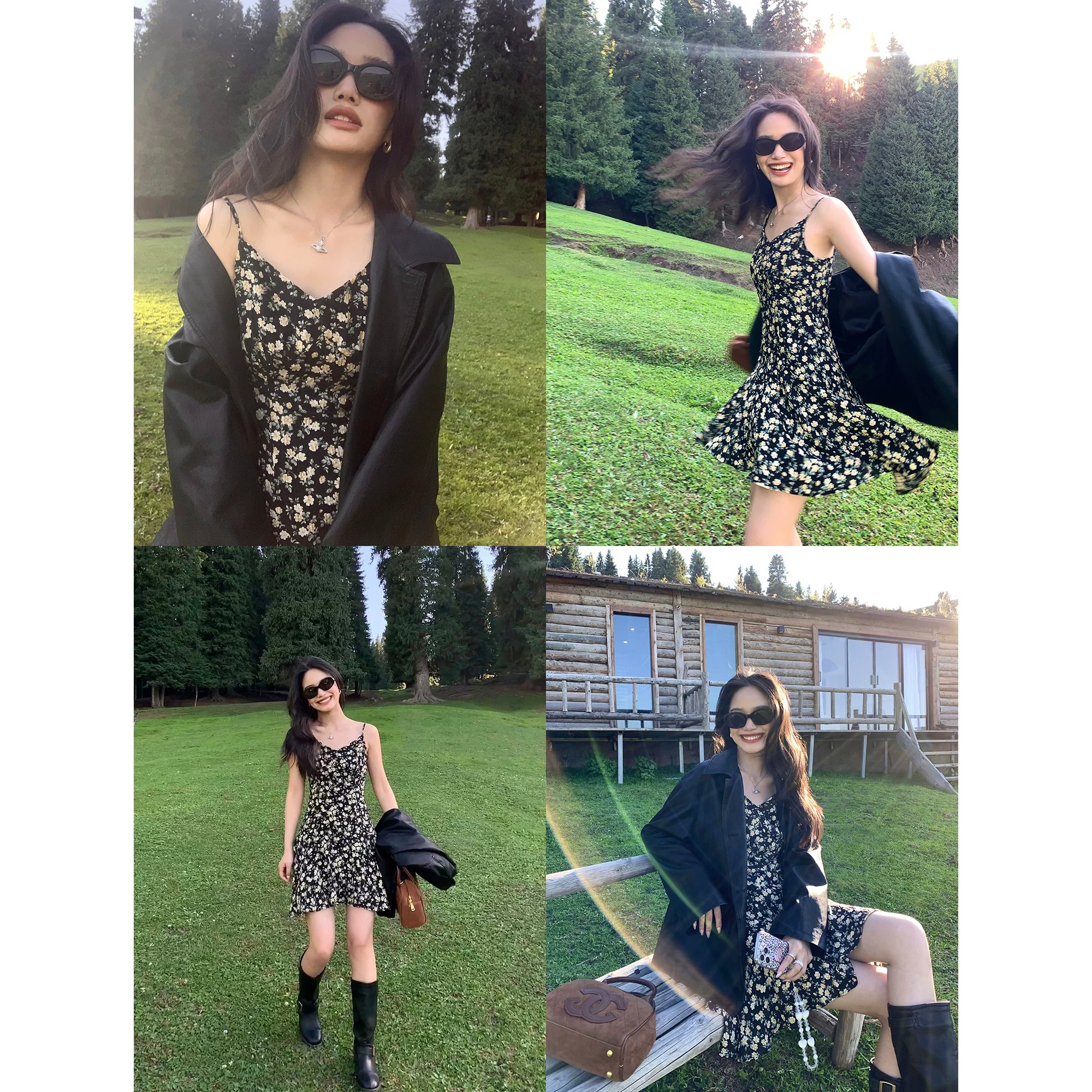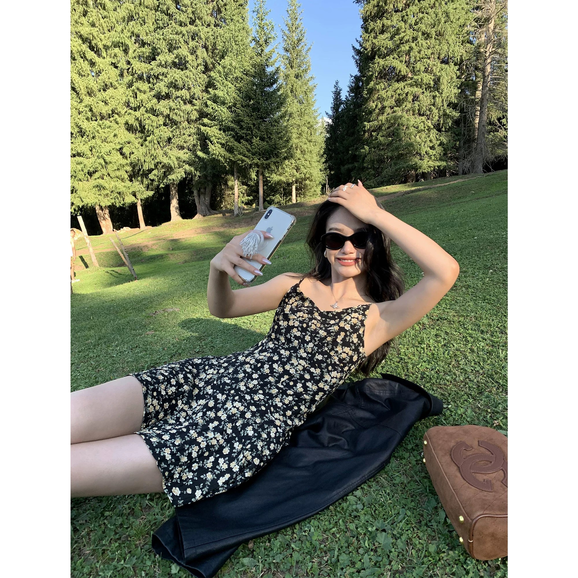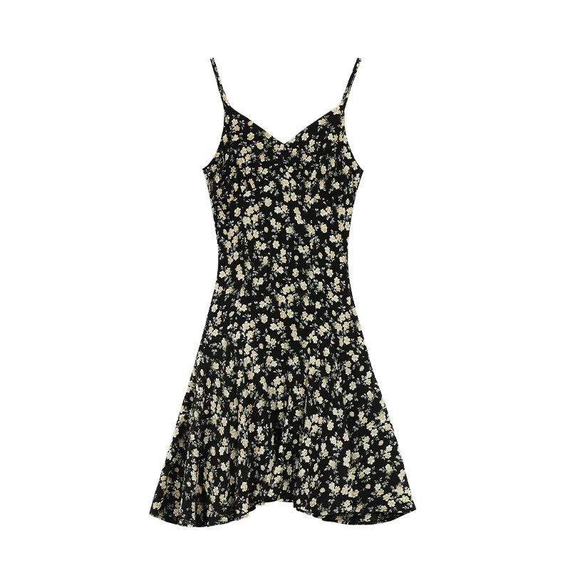 pusumede 프랑스식 V넥 꽃무늬 슬립 여성 드레스 여름 허리 수축 슬림해 보이는 질감 센스 한 마디 짧은 치마