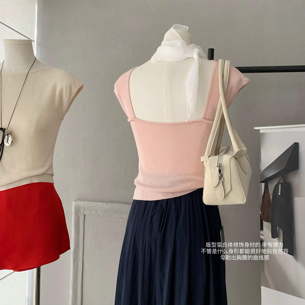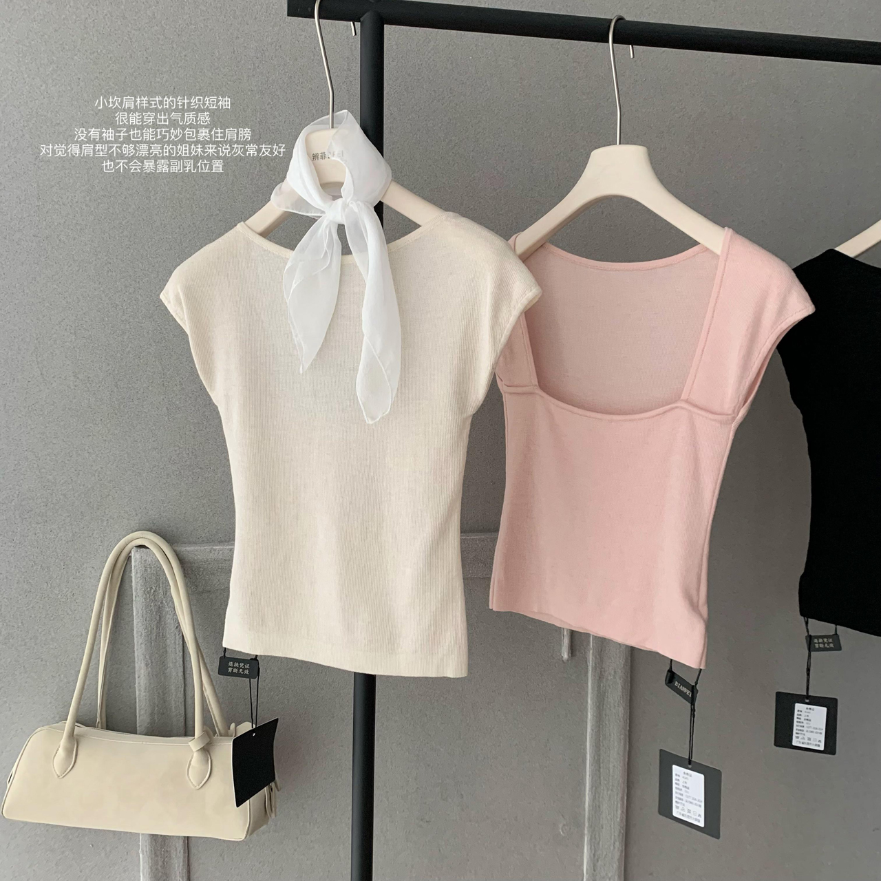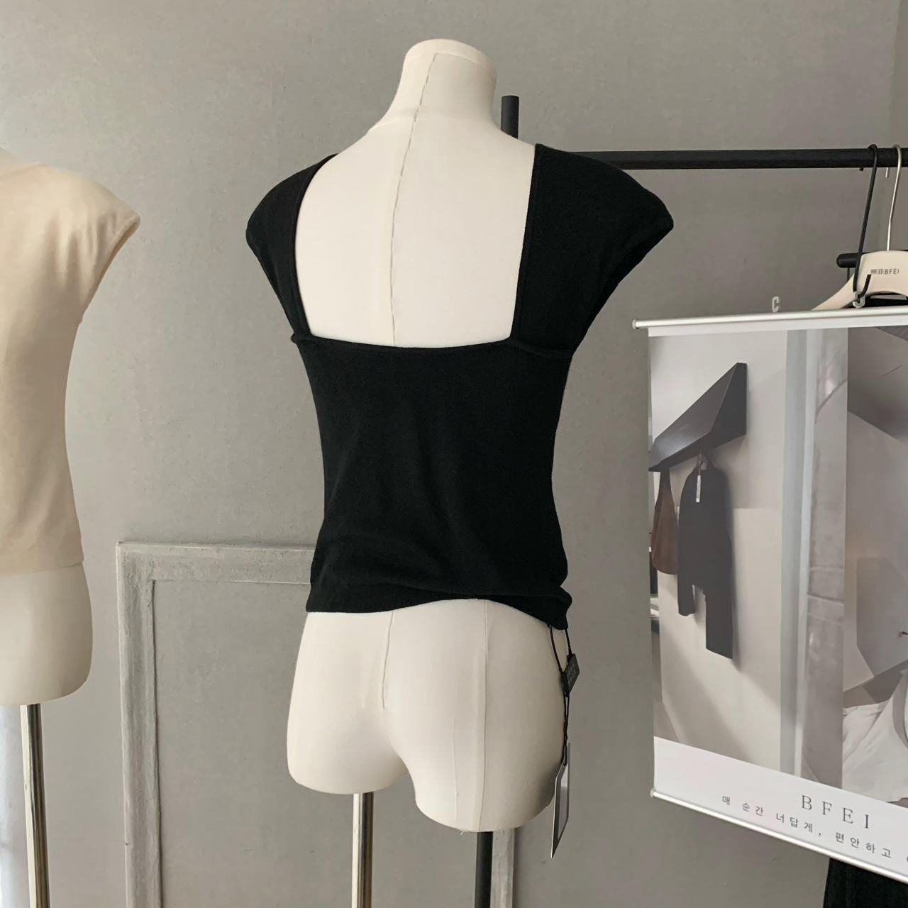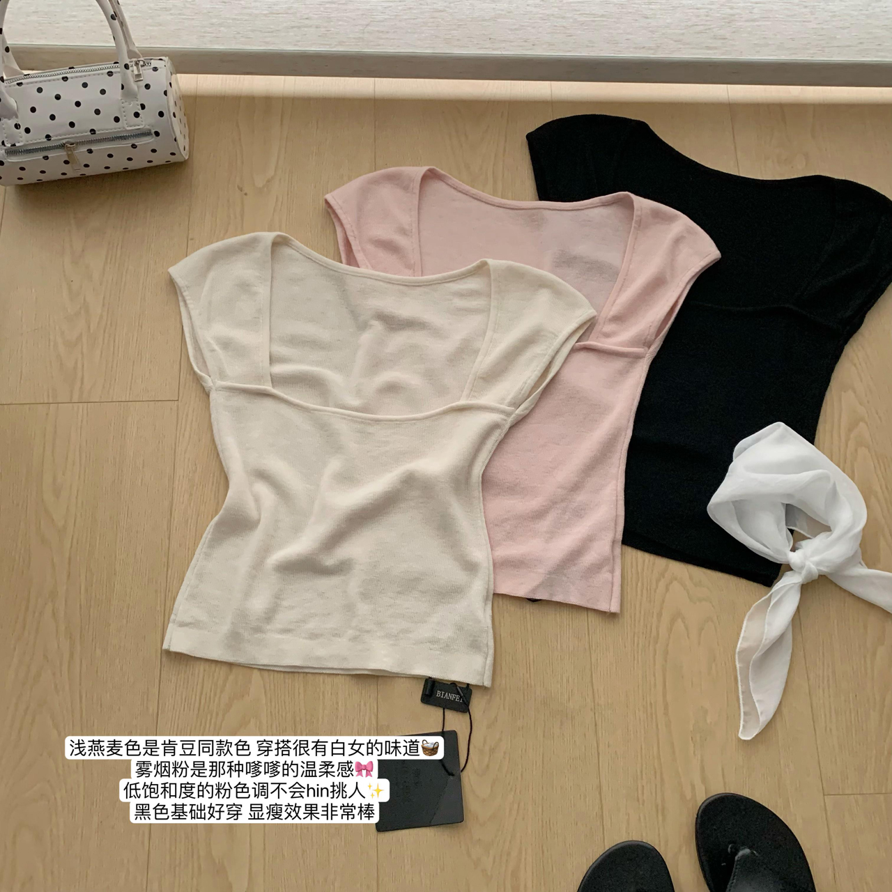 안녕하세요. 팬 팬 켄 콩 comfy 화이트 여성 품격 작은 날다 소매 니트 반팔 백리스 몸매 가꾸기 쇼트 스타일 맨위