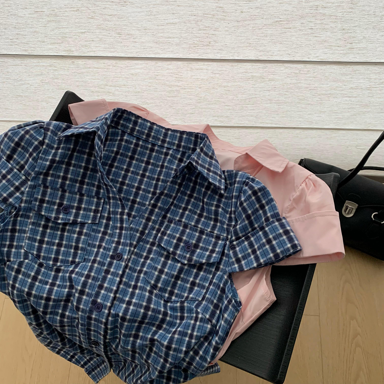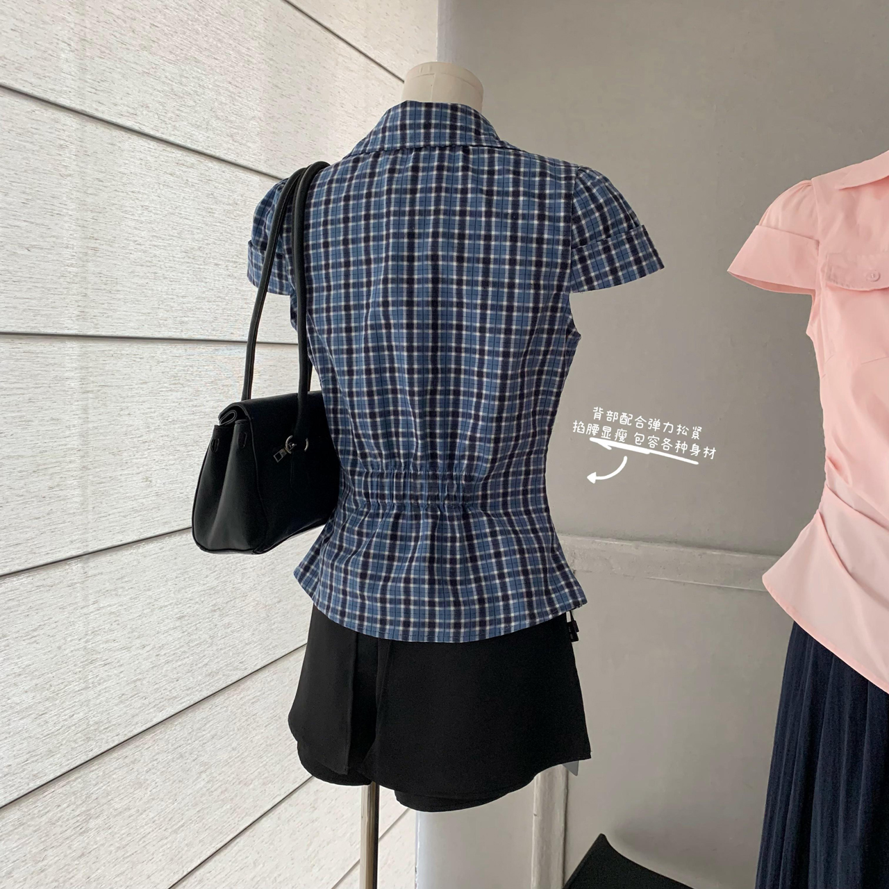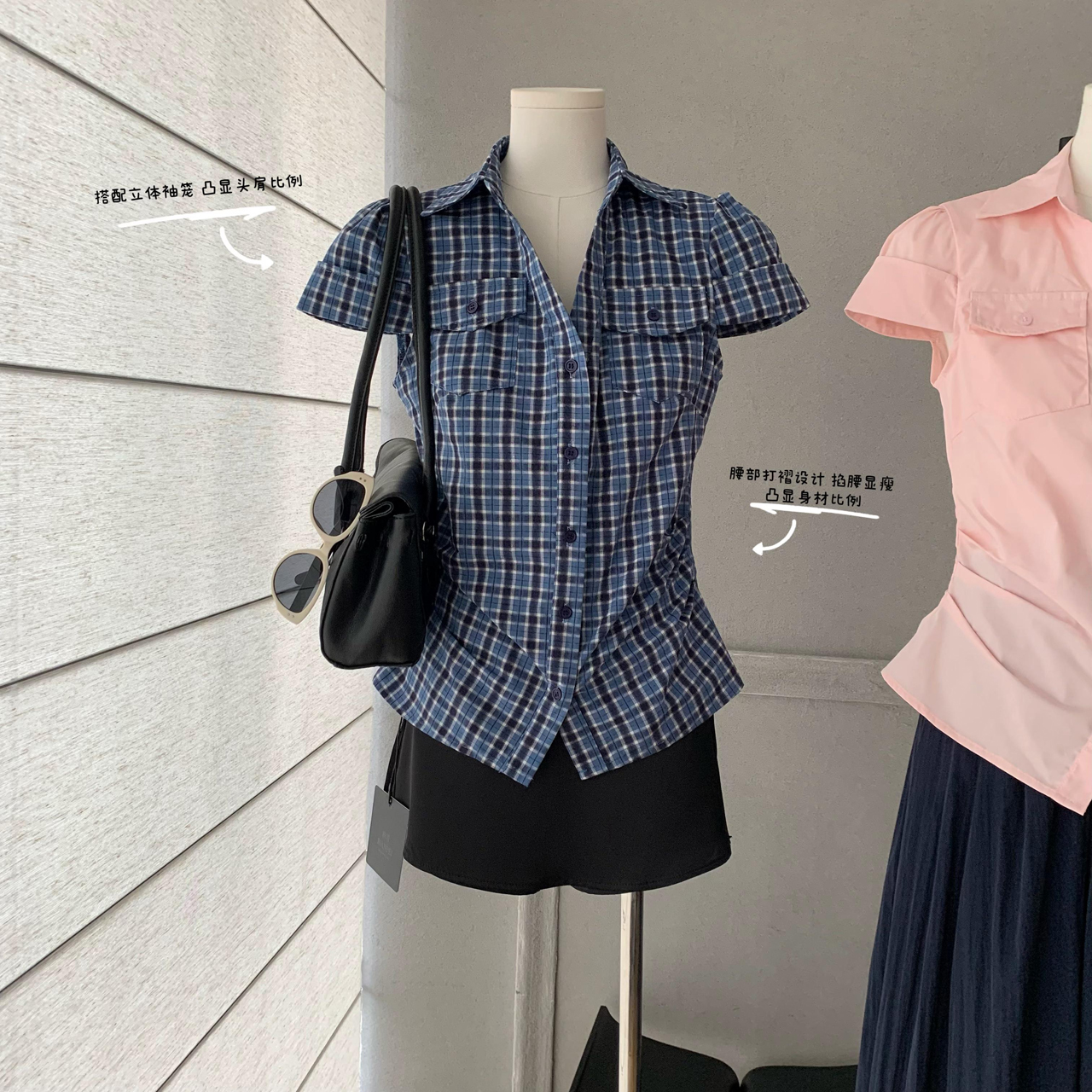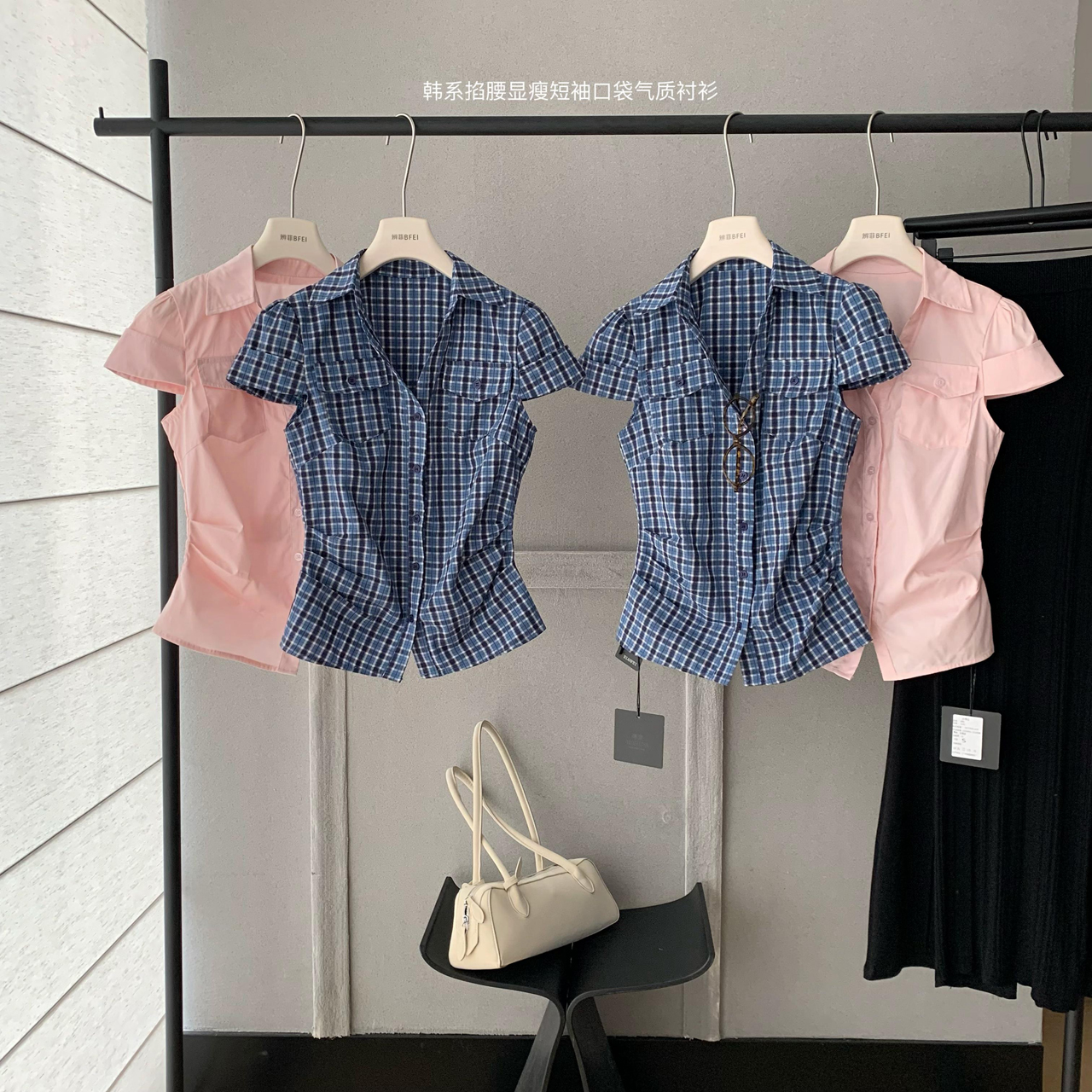 soote season 오리지널 한 부서 꼬집기 허리 몸매 가꾸기 슬림해 보이는 반팔 주머니 허리 수축 품격 셔츠 맨위 여성