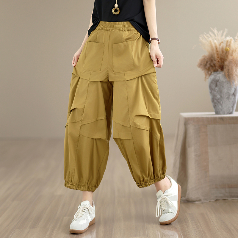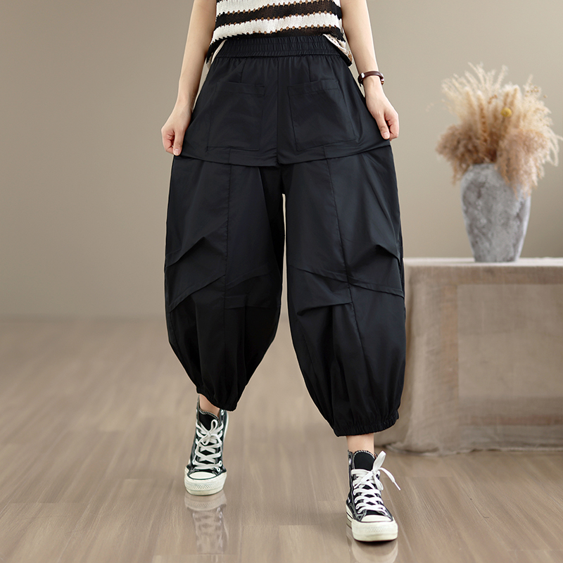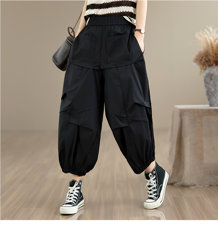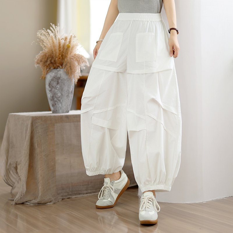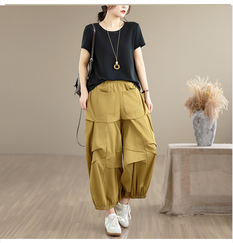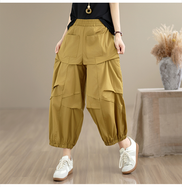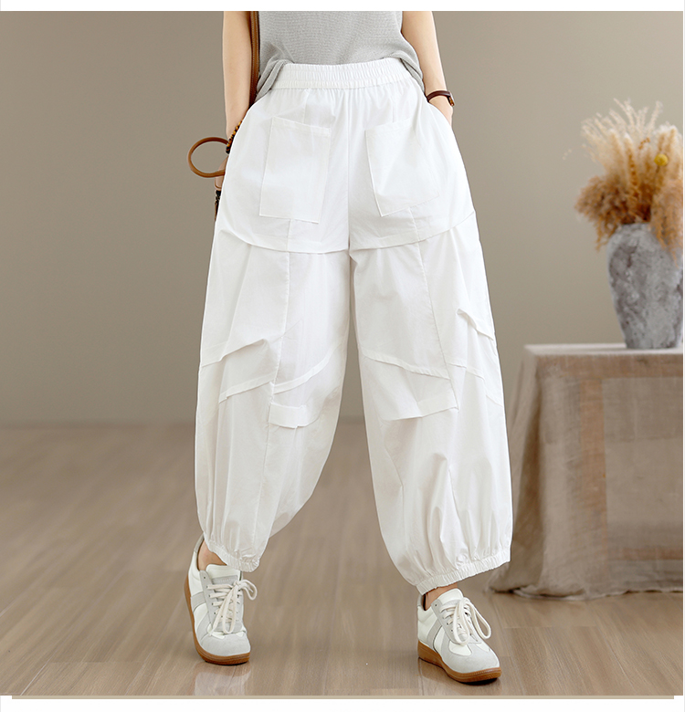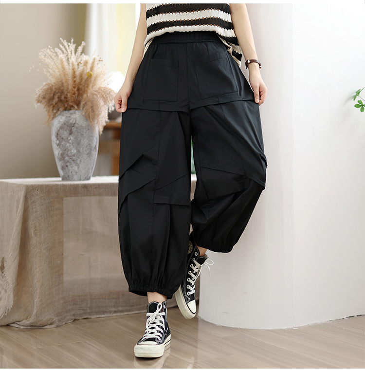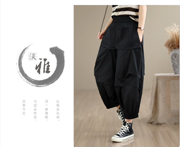 실사 2026 여름 면 100% 패션 캐주얼 불규칙 하렘 바지 루즈핏 다용도 표지 고기 슬림해 보이는 9 포인트 캐주얼 바지