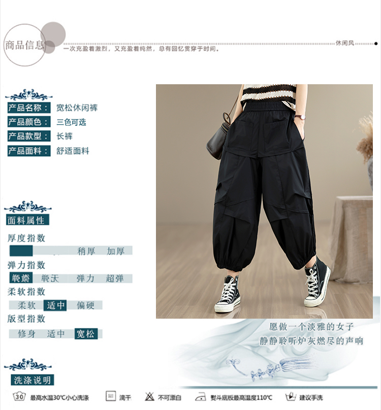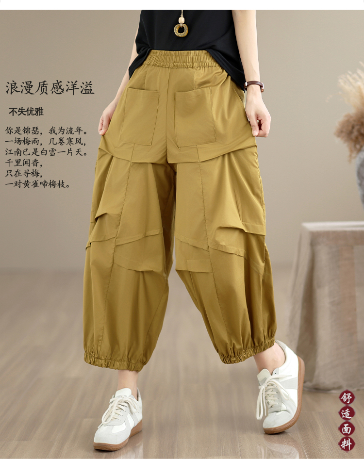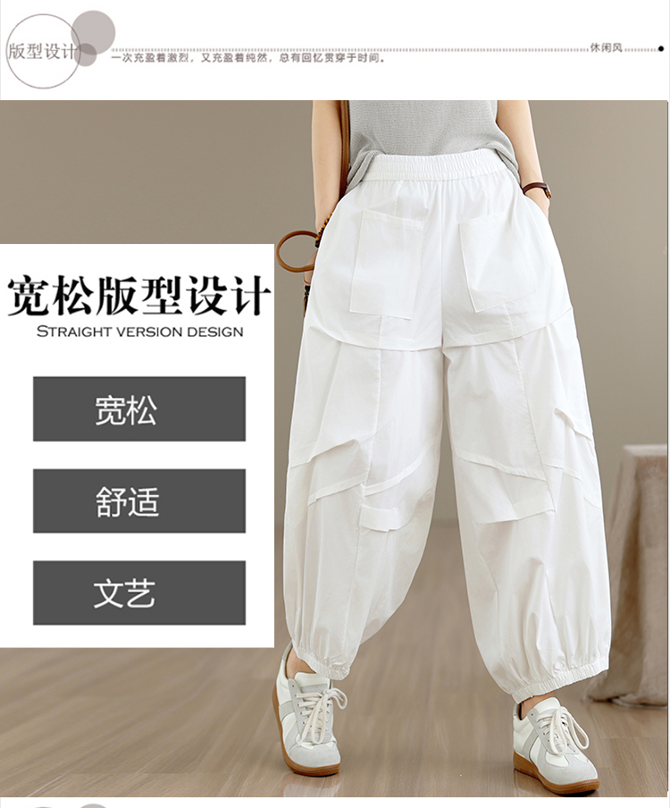 2026 여름 새로운 면 100% 패션 캐주얼 허리밴드 루즈핏 다용도 표지 고기 슬림해 보이는 9 포인트 할란 캐주얼 바지
