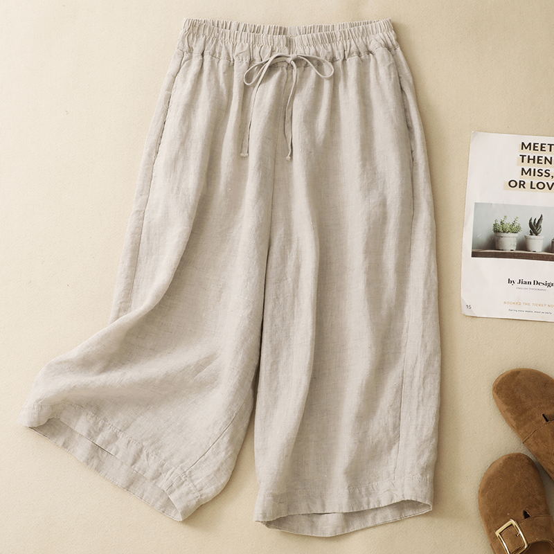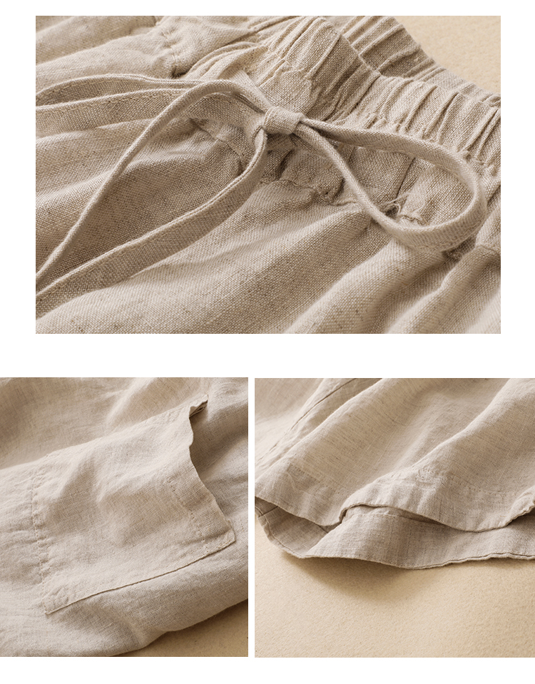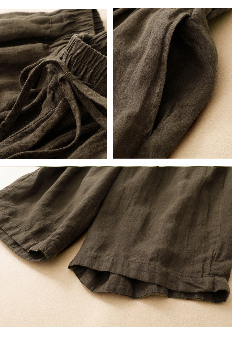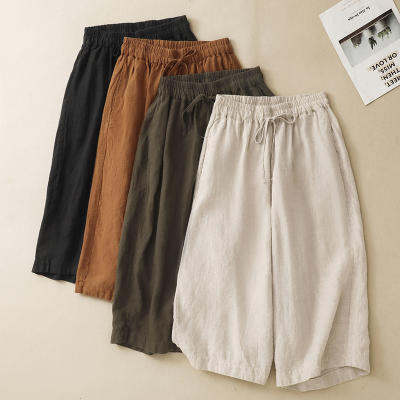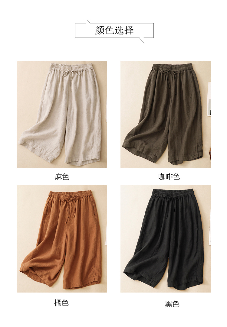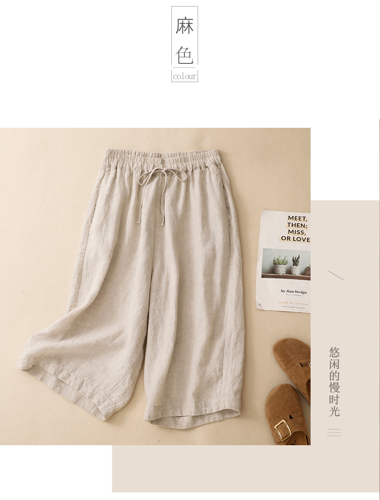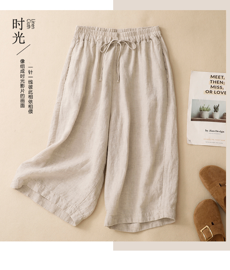 2026 여름 새로운 레트로 아마 바지 허리밴드 다용도 슬림해 보이는 루즈핏 캐주얼 7 점 문예 스트레이트 팬츠 여성