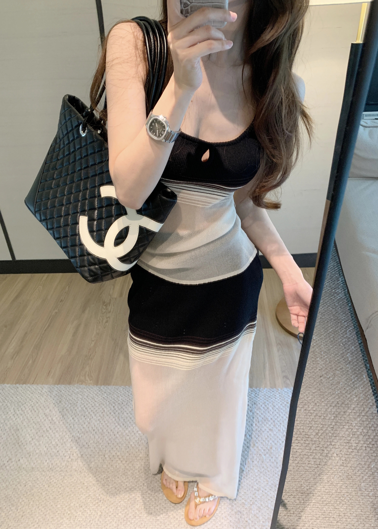홀로우 아웃 니트 드레스