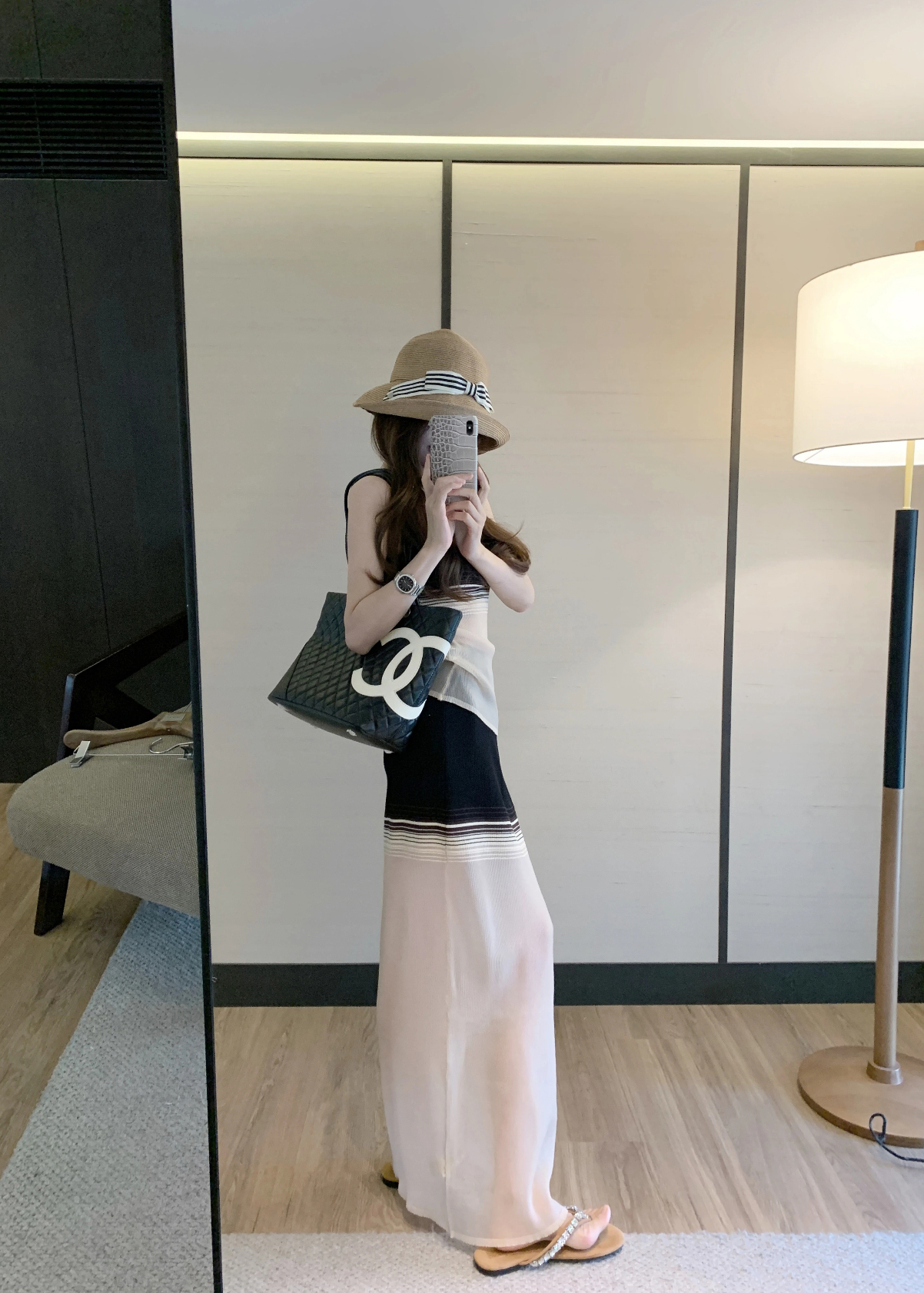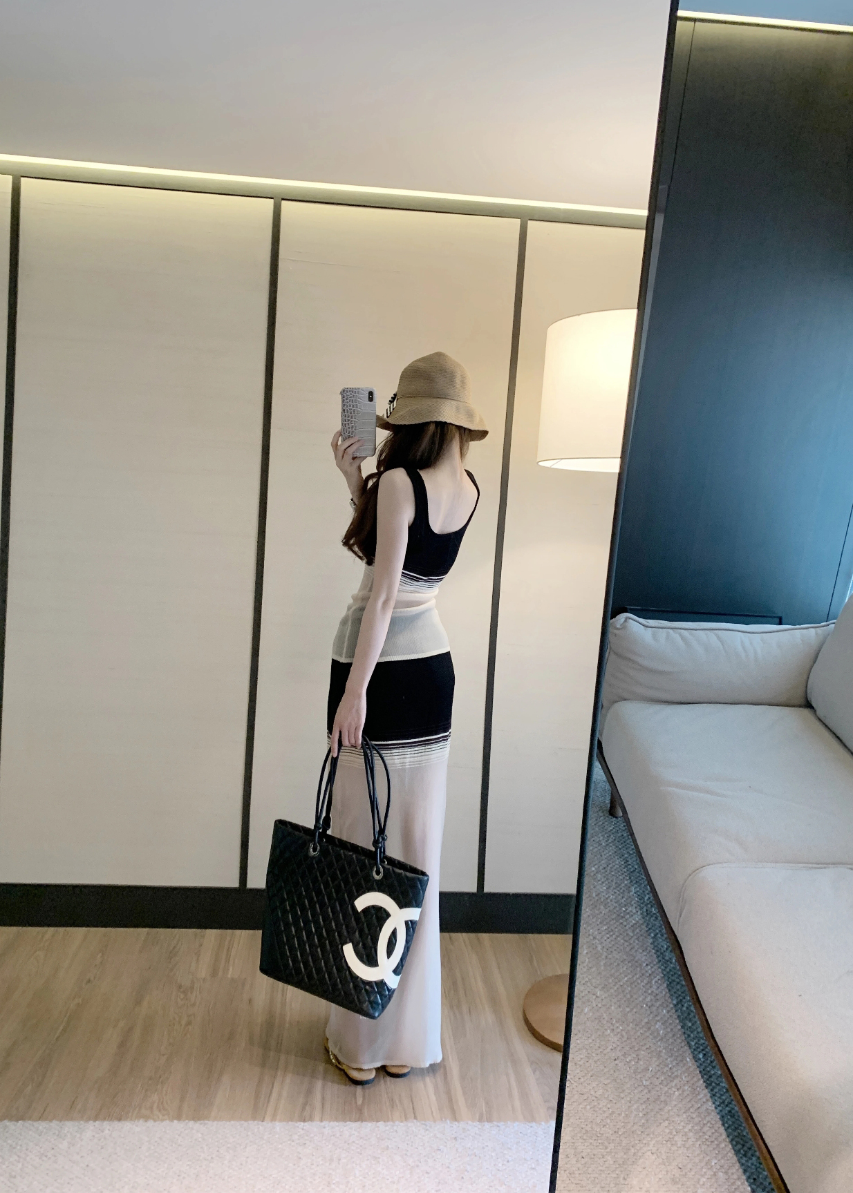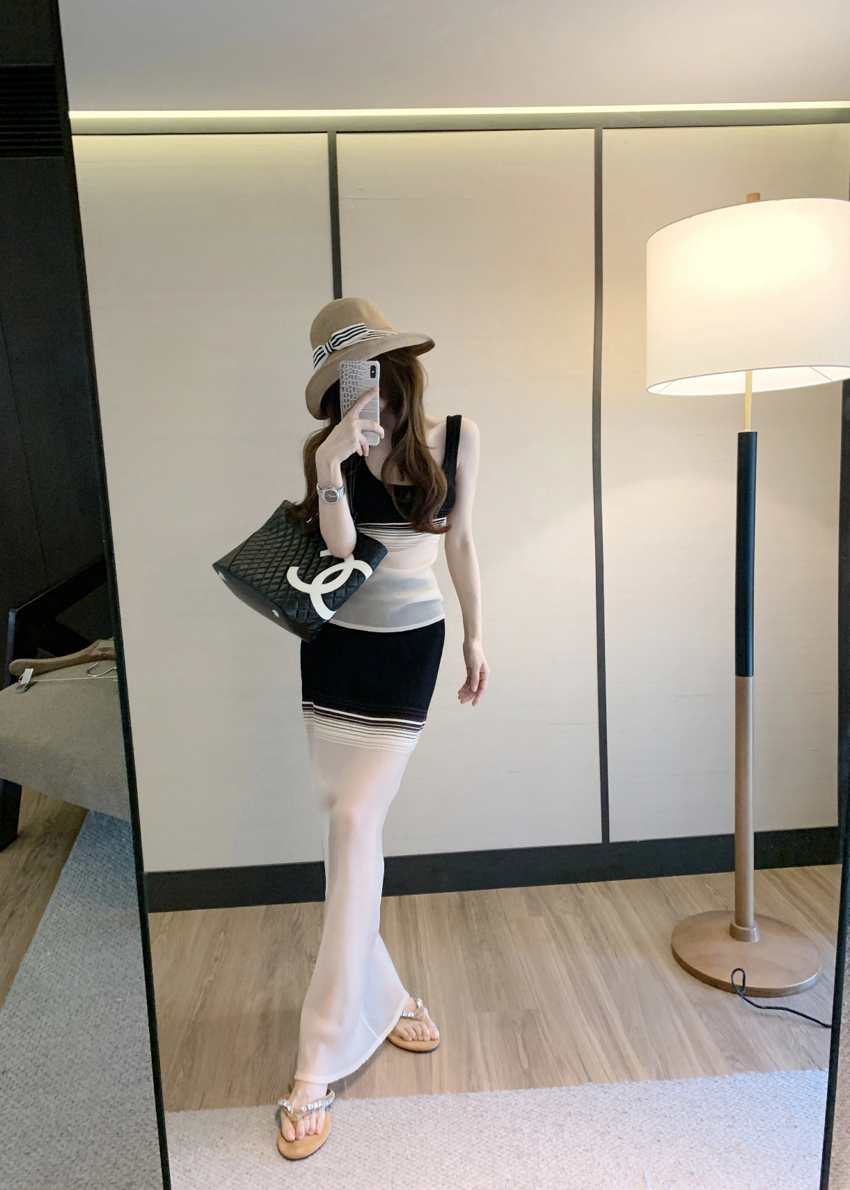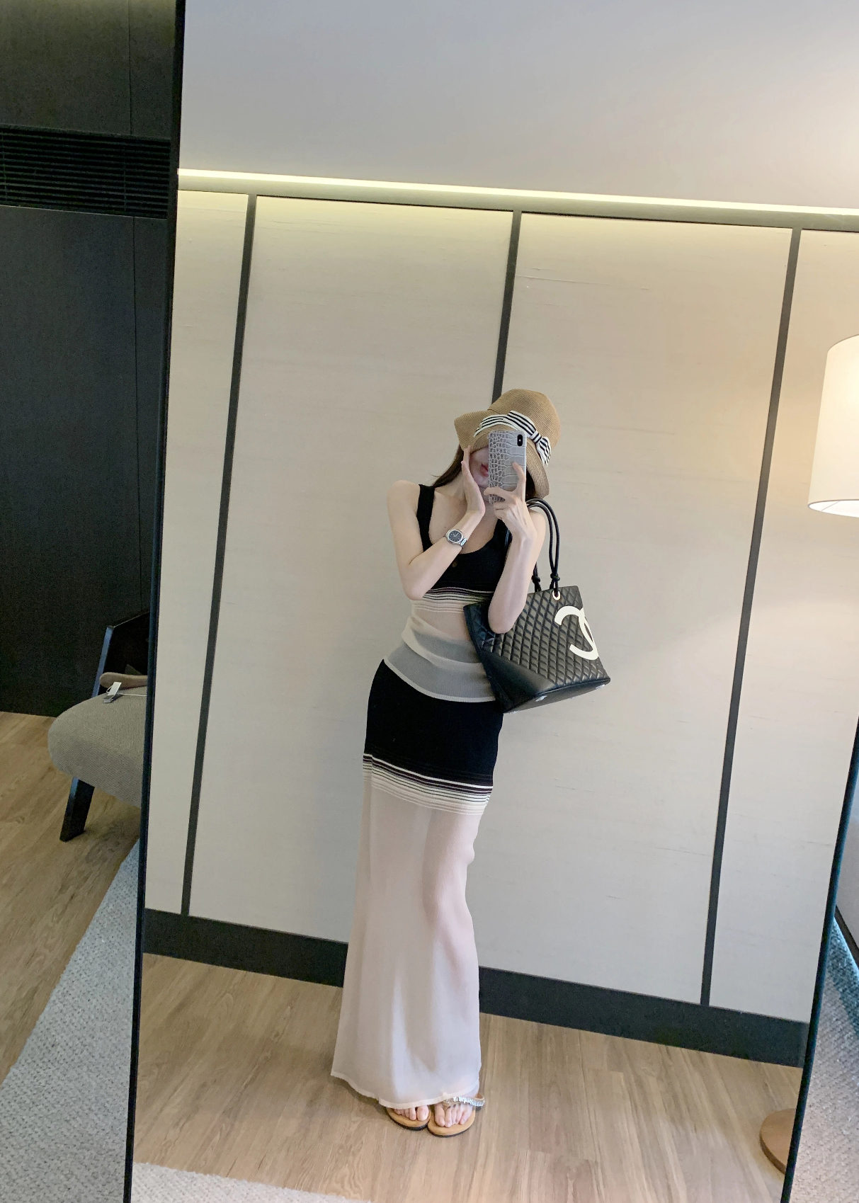 라이 경기 서울 느긋한 스트라이프 니트 반신 스커트 여성 여름 스트레이트 롱 스커트 슬림해 보이는 타이트 스커트 치마