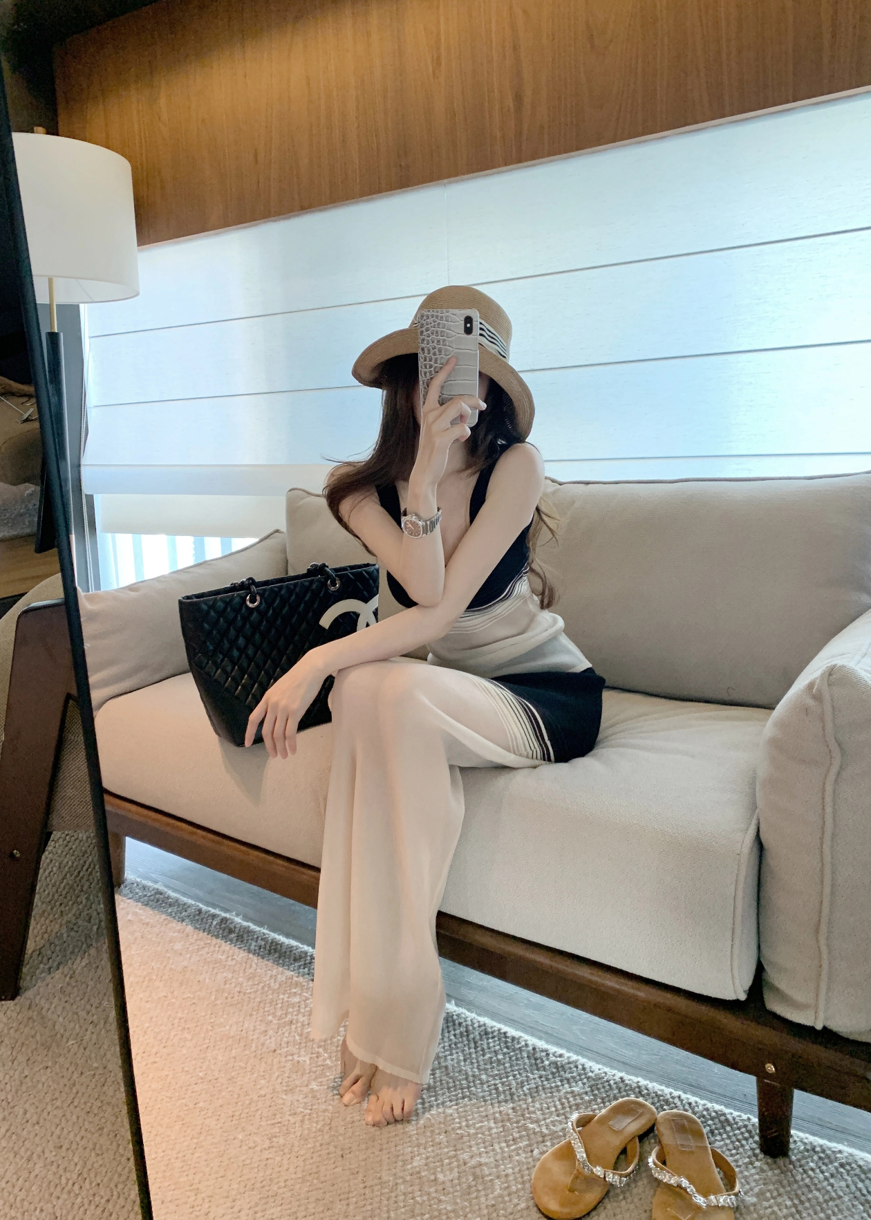 순수한 욕망 바람 프랑스식 홀로우 아웃 슬립 드레스 봄 여름 부드러운 느긋한 품격 숄 롱 스커트 세트