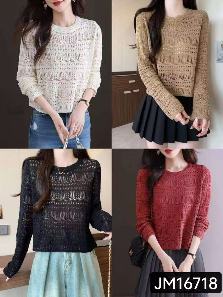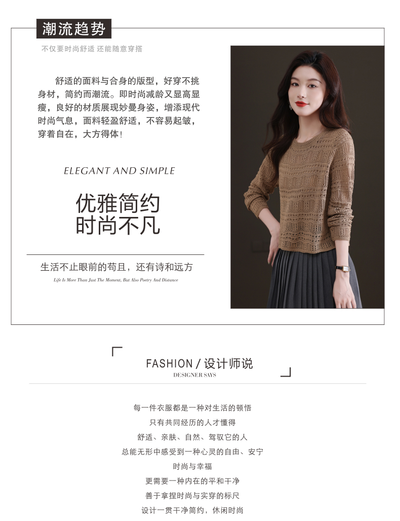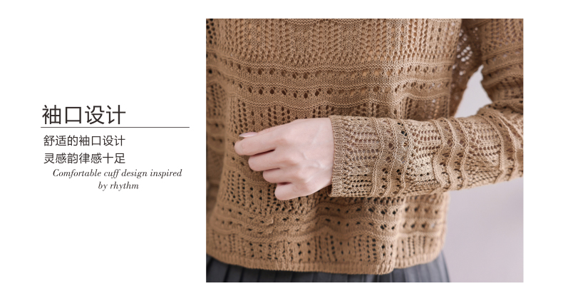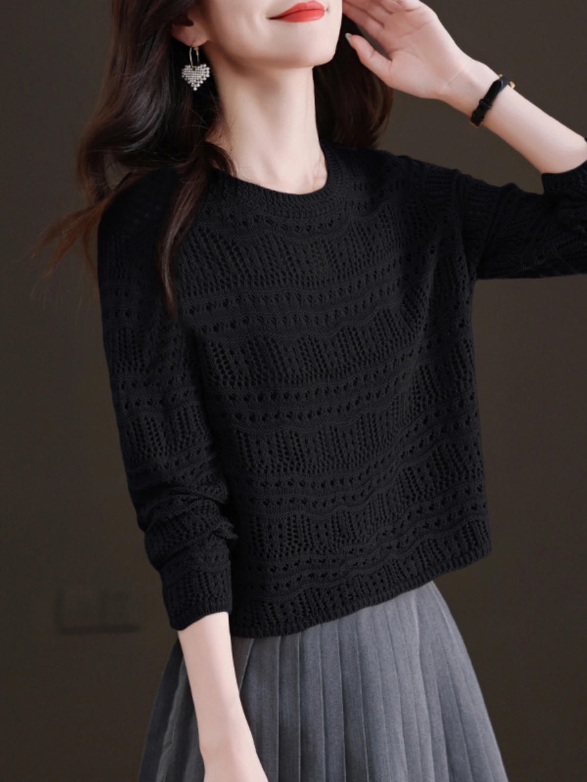 2026 봄 여름 디자인 센스 루즈핏 쇼트 스타일 라운드 넥 니트 스웨터 레트로 홀로우 아웃 이후 트임 긴팔 맨위 블라우스 여성