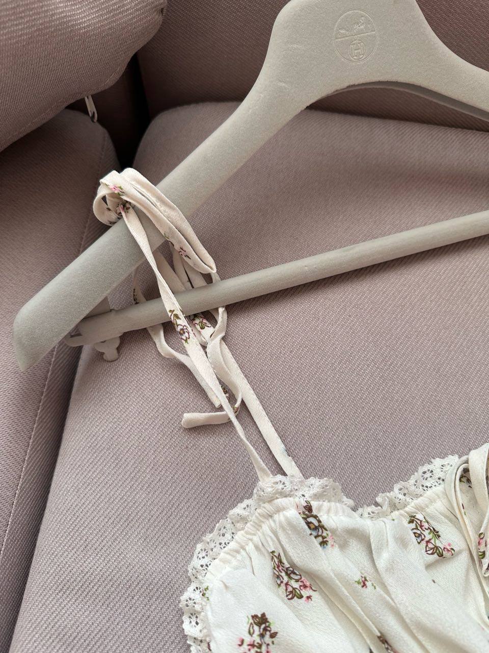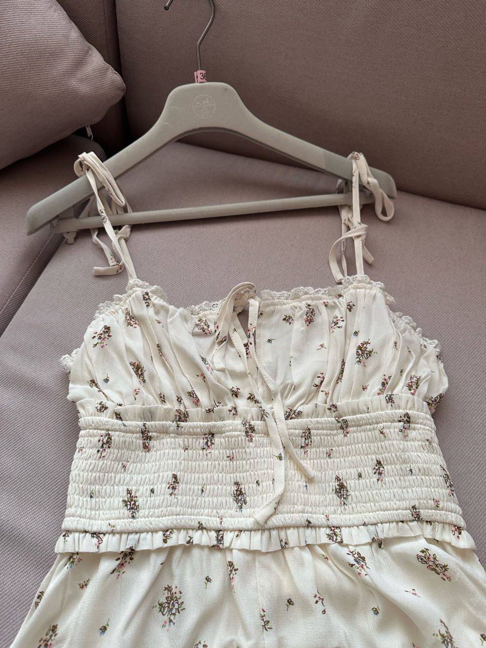 miu 부서 작은 청신 꽃무늬 순수한 사람들 실크 풍부한 크레이프 원단 스트랩 허리 수축 올인원 치마바지