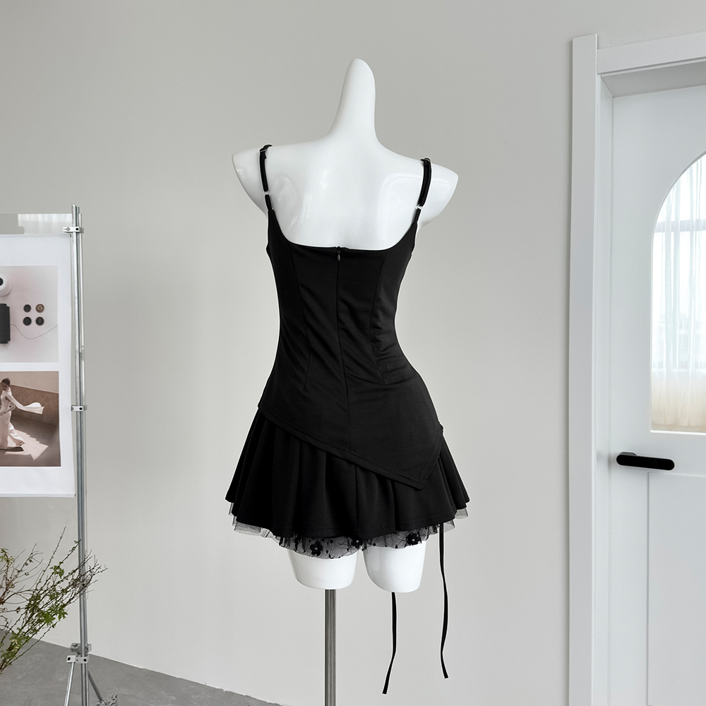 몸매 가꾸기 민소매 행침 목 검정색 맨위 세트 여성 의류 여름 2026 새로운 섹시함 핫걸 반신 스커트 투피스 세트