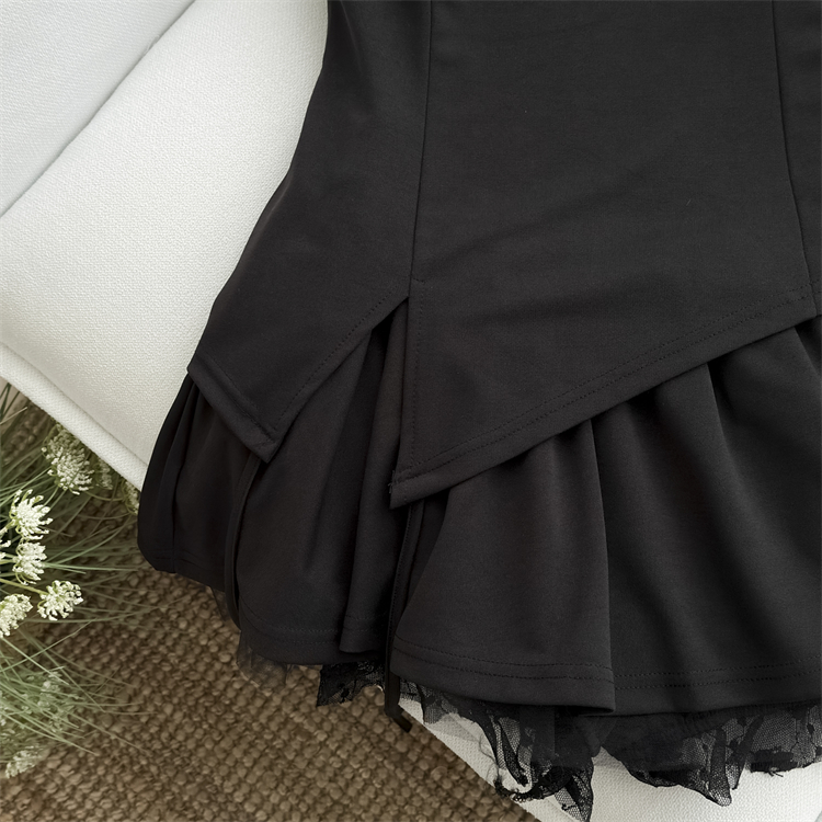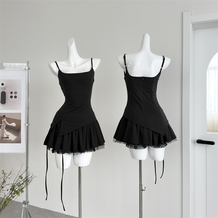 프랑스식 섹시함 핫걸 행침 목 민소매 여성 드레스 여름 흑인과 백인 배색 몸매 가꾸기 슬림해 보이는 품격 아름다운 미니 스커트