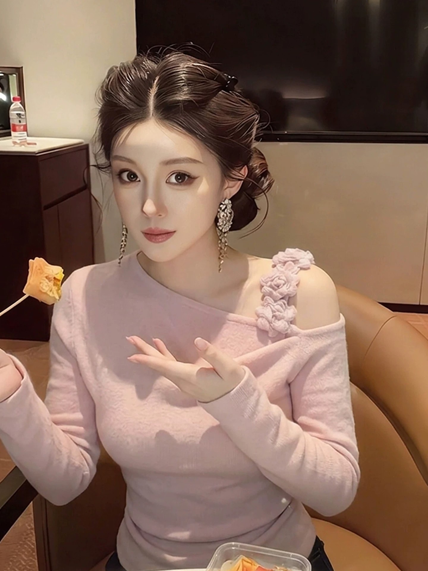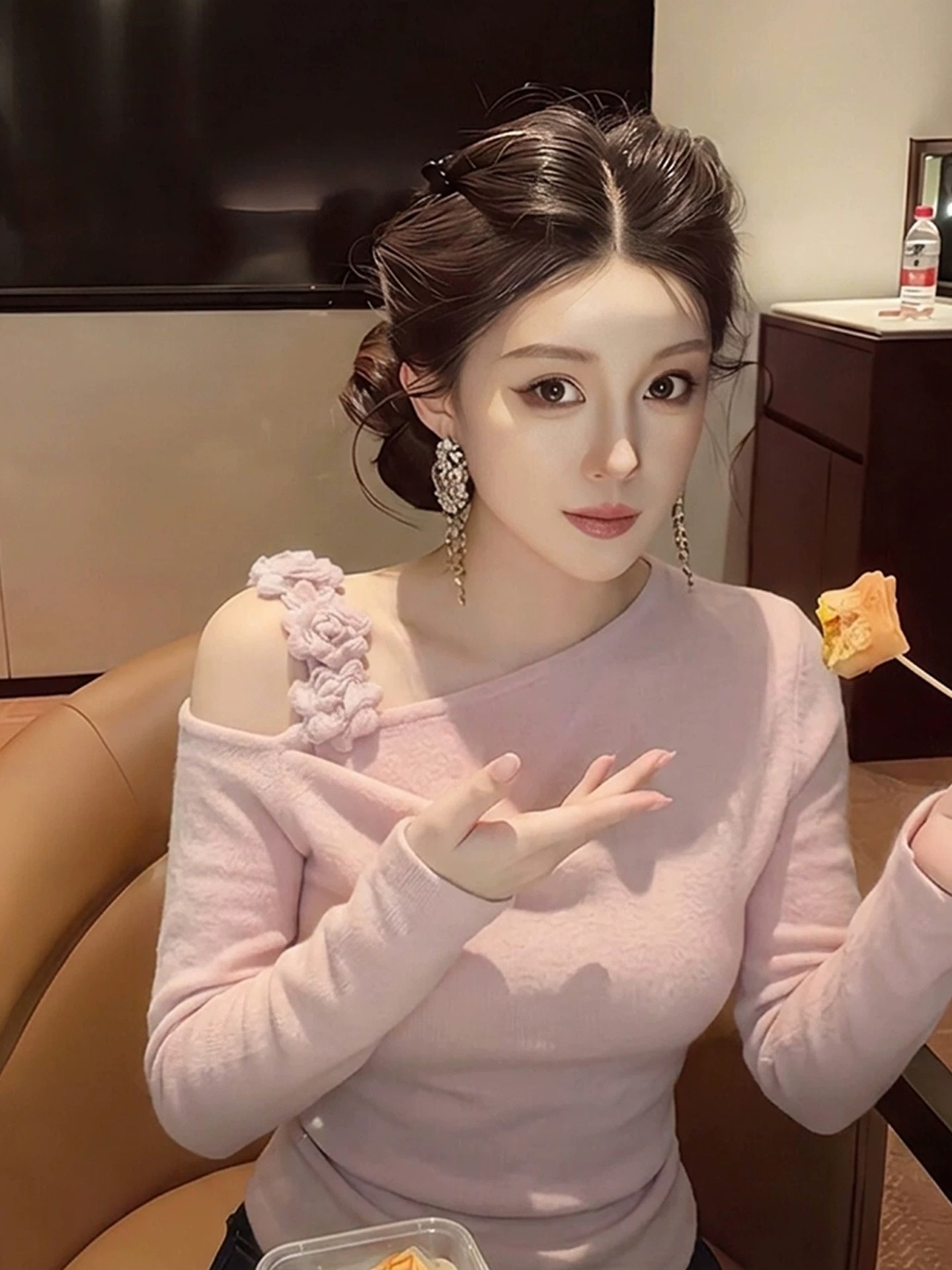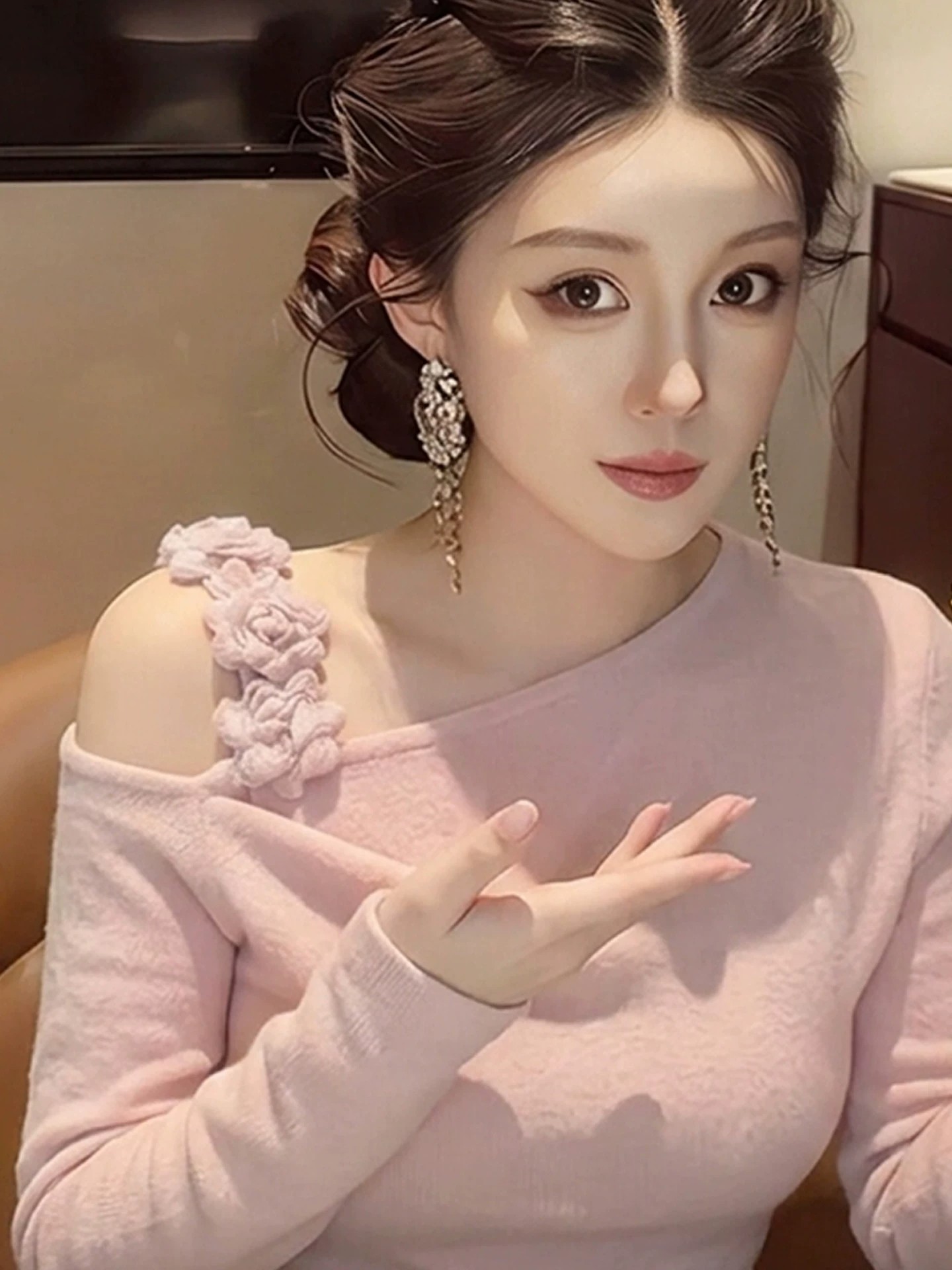 봄 가을 고유 한 Chic 슈퍼 잘 생긴 맨위 빛 럭셔리 고급 센스 작은 대중 아니요 명중 섹션 외국 가스 연령 감소 살구 색상 여성 셔츠