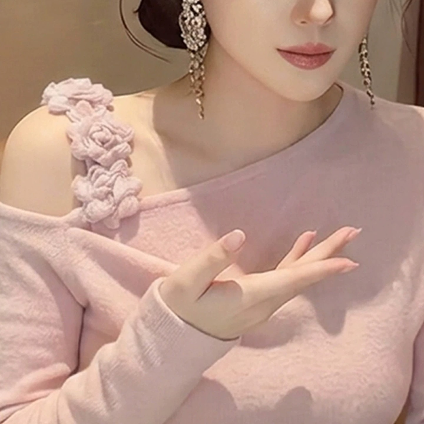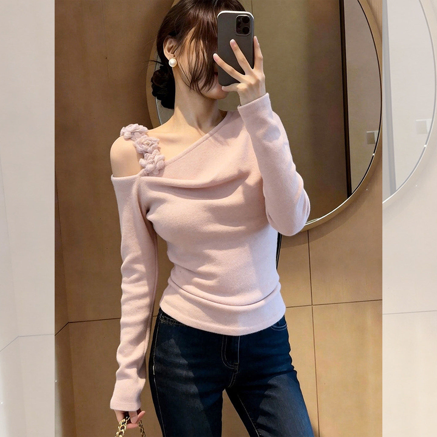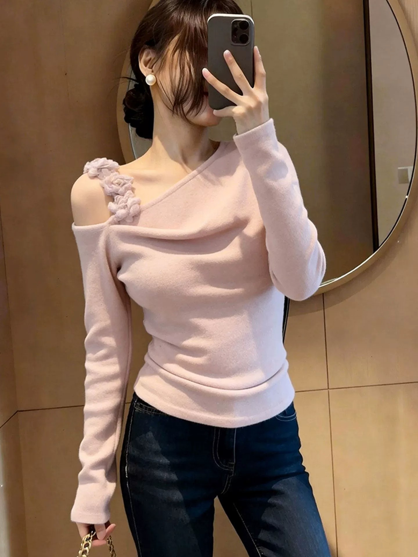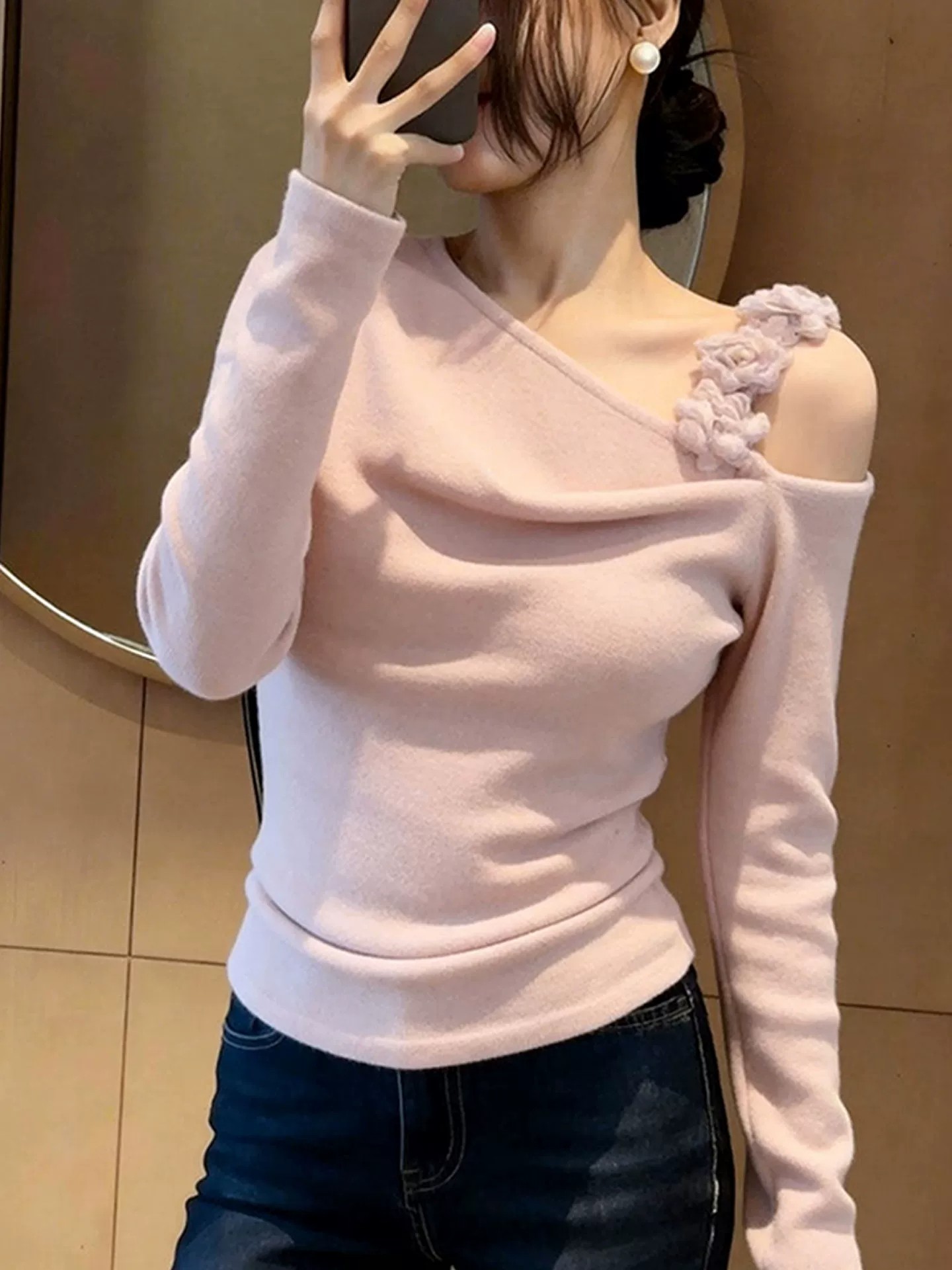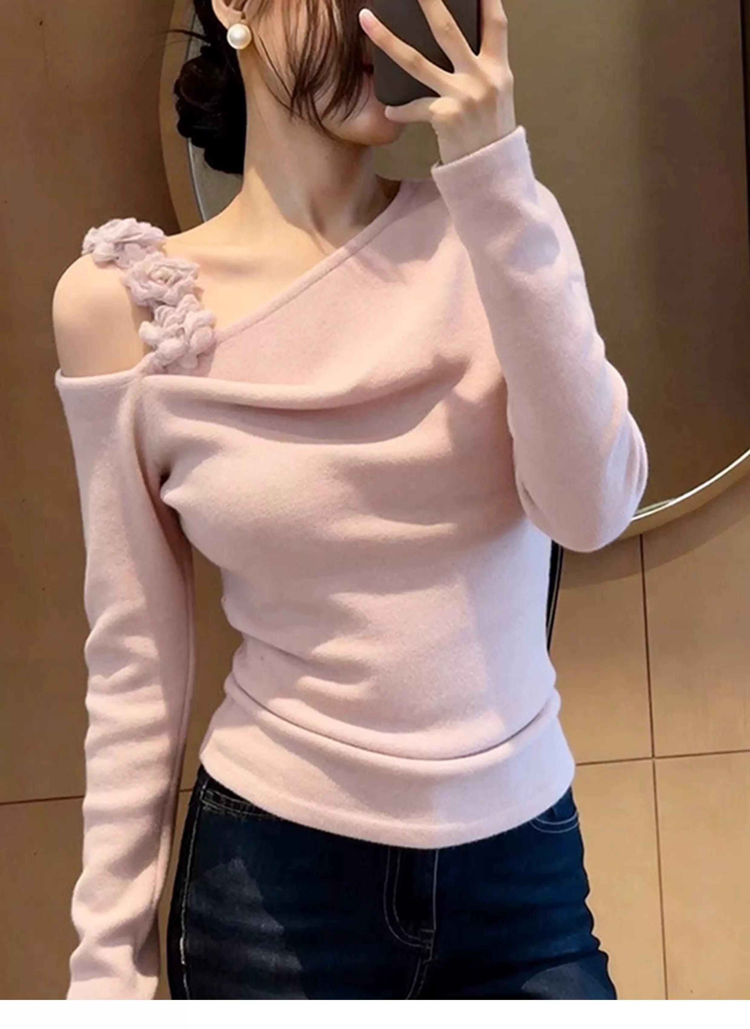 이른 봄 고유 한 아름다운 맨위 2026 새로운 품격 여성 디자인 센스 아니요 명중 섹션 자이언트 잘 생긴 ~ 중 긴팔 티셔츠
