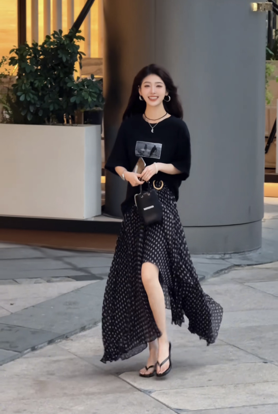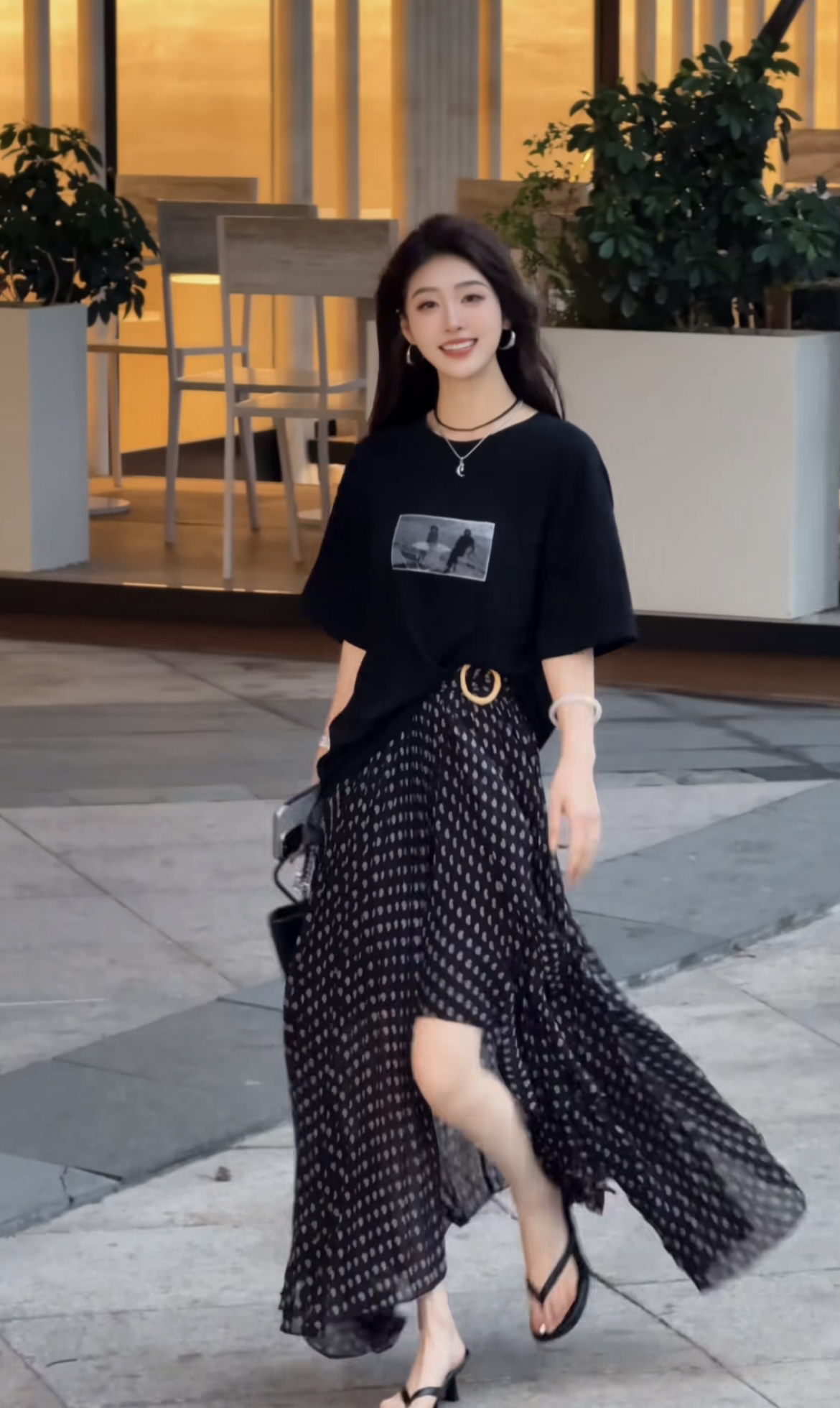 남쪽 萱 작은 반점 봄 새로운 불규칙 프릴 슬림해 보이는 반신 스커트 캐주얼 t