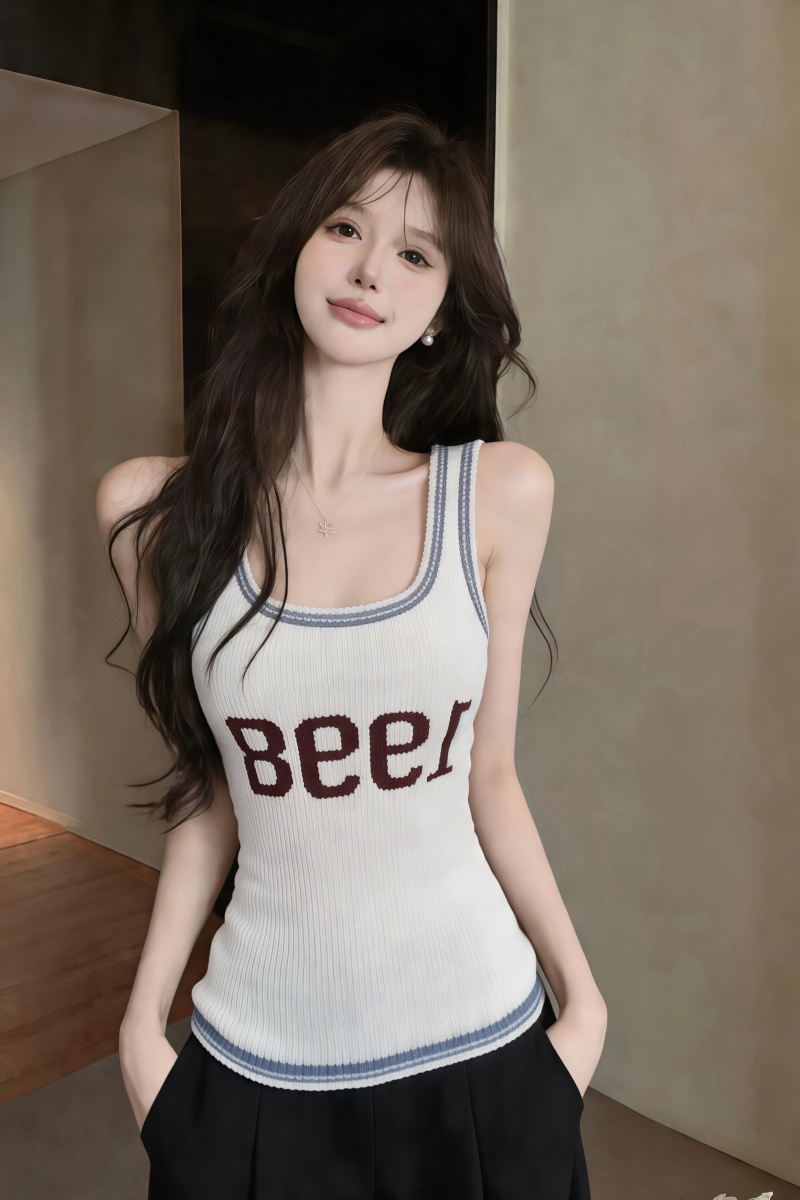 실사 정가 배색 u 칼라 민소매 니트 조끼 기본 셔츠 외출용 맨위
