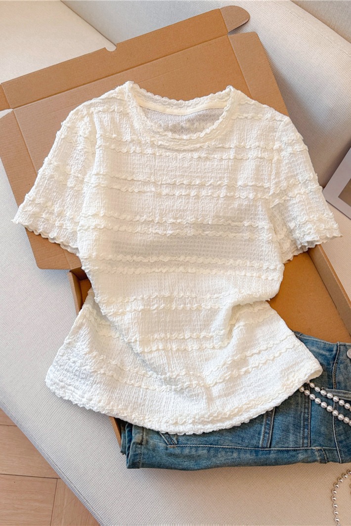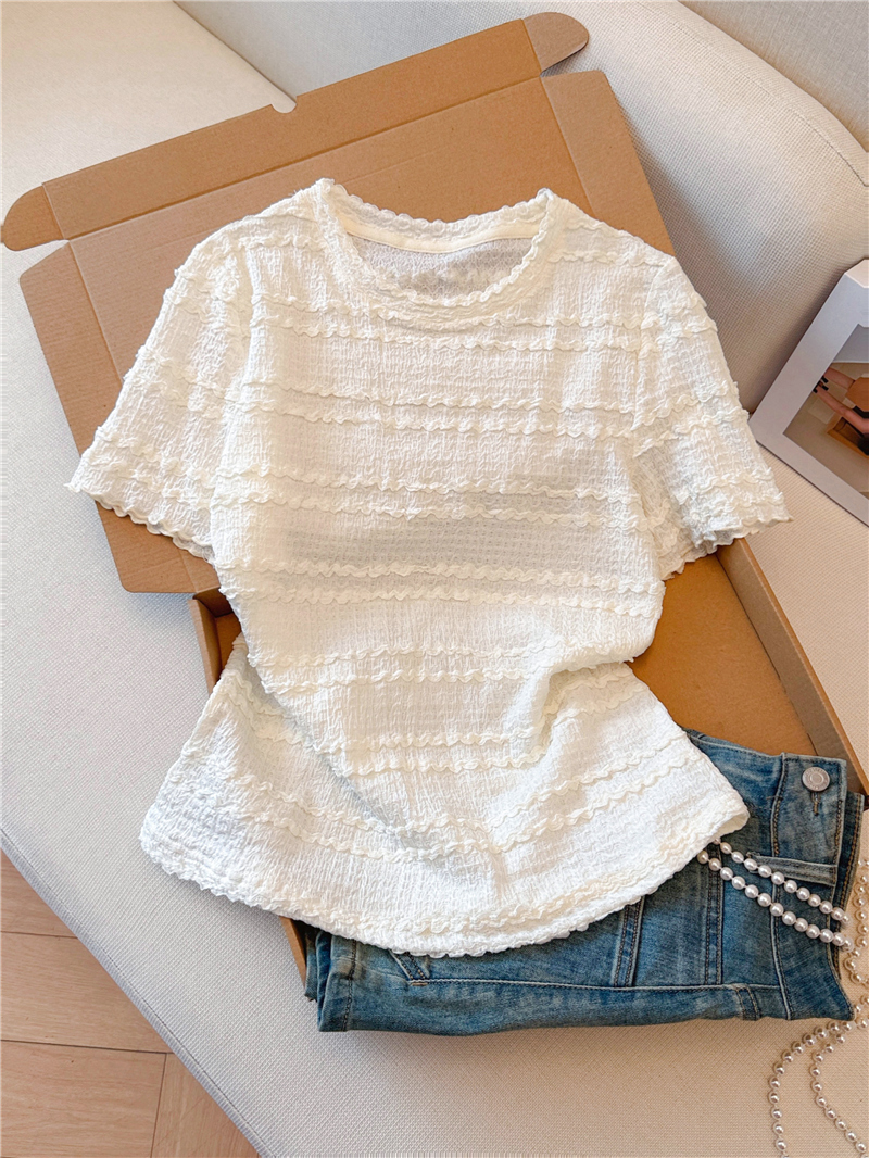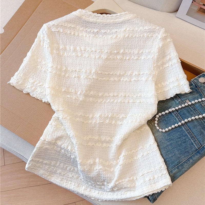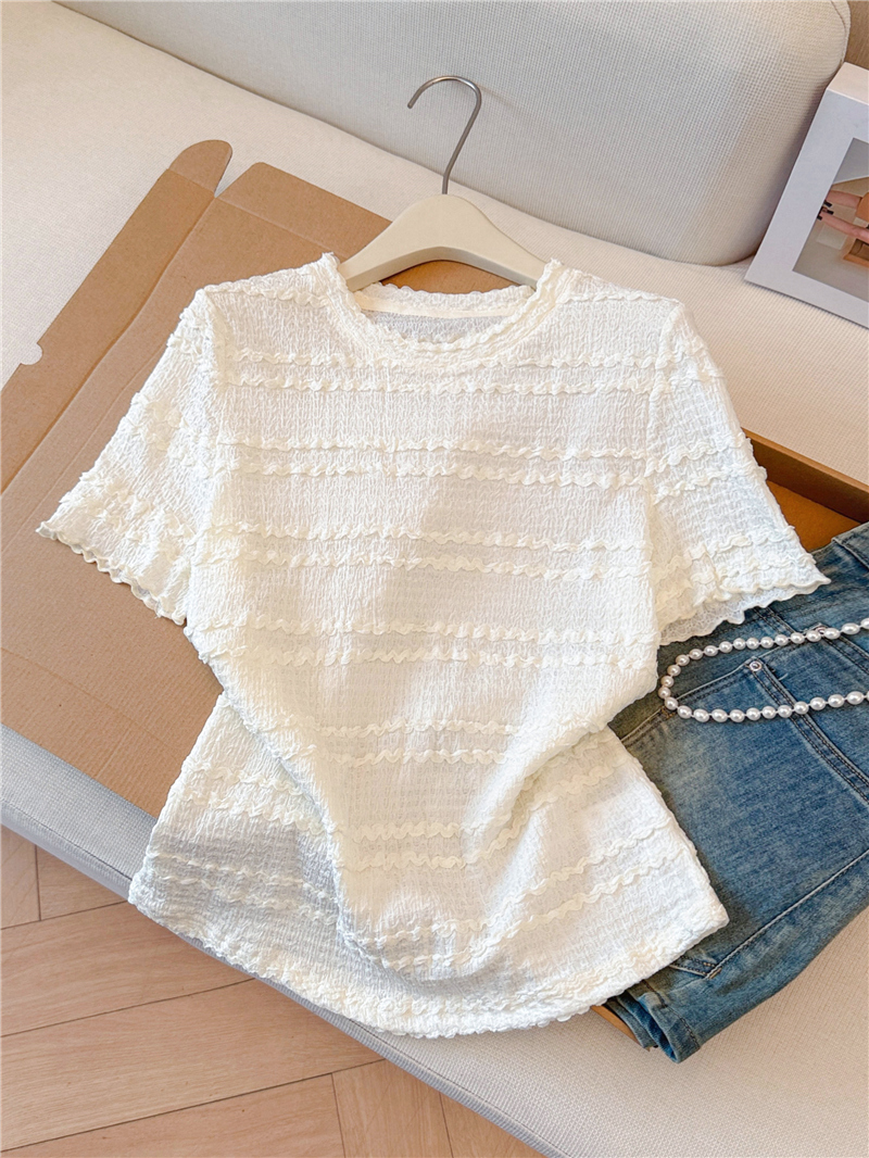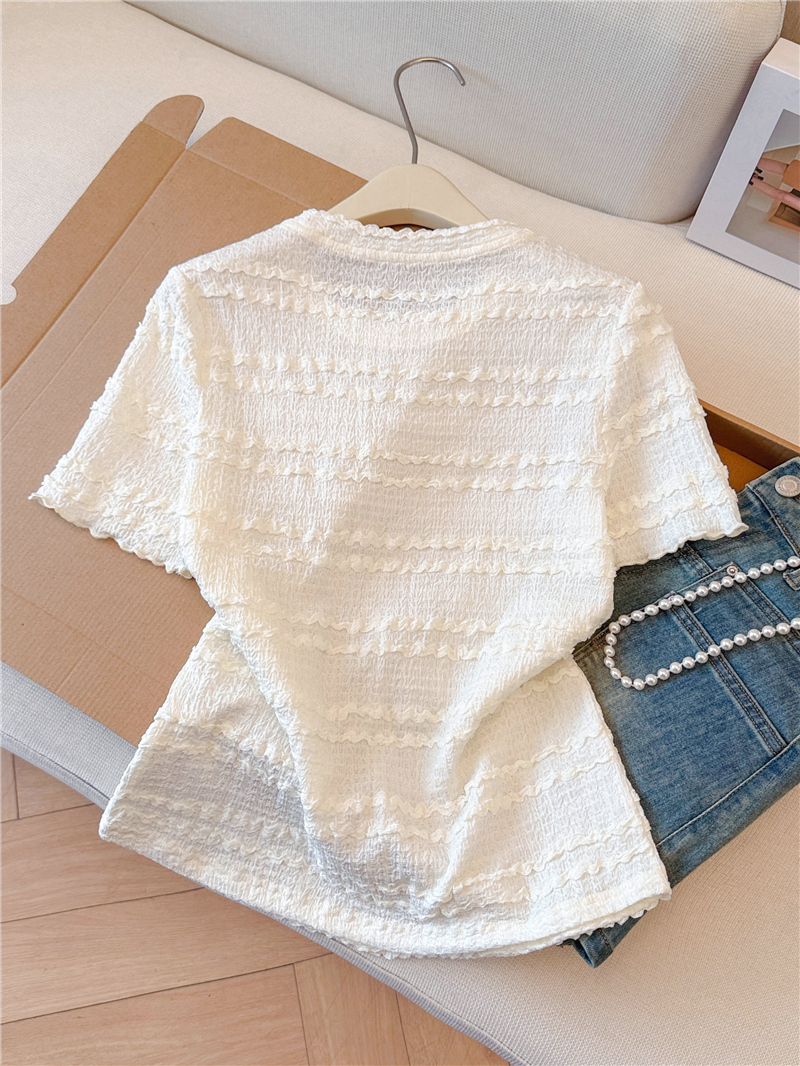 한 부서 프릴 라운드 넥 반팔 티셔츠 여성 2026 년 여름 새로운 작은 대중 고유 한 Chic 디자인 센스 맨위