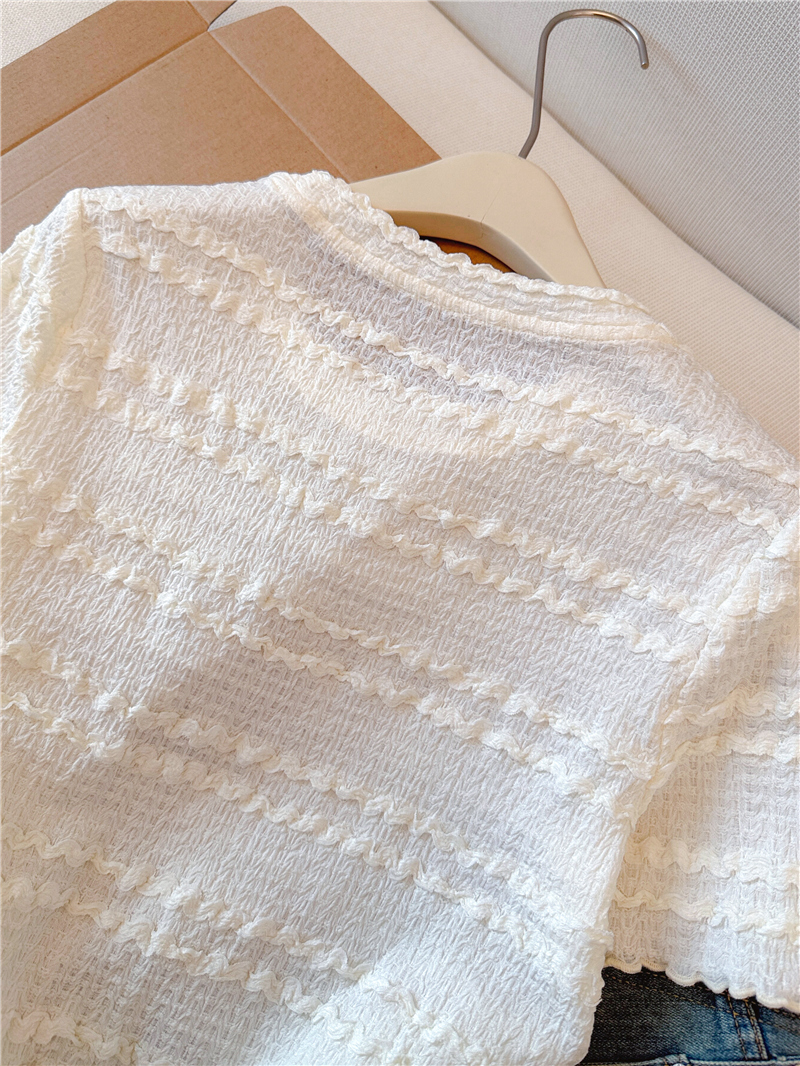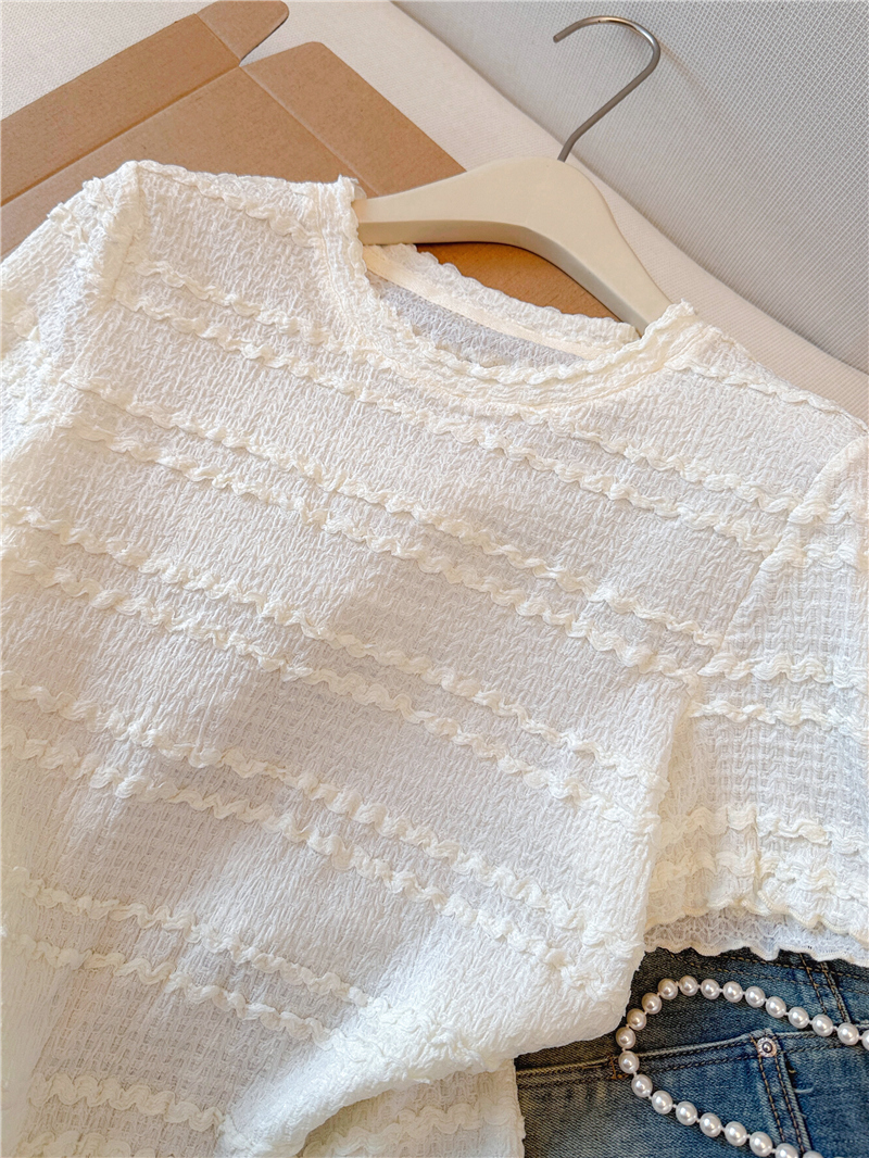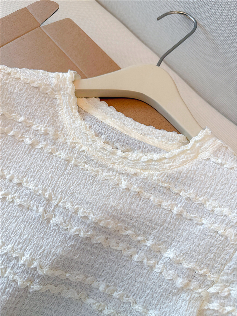 2026 새로운 순수한 욕망 바람 라이 경기 서울 작은 레이스 이중층 밑단 작은 셔츠 여성 수직 기사 질감 반팔 셔츠 맨위