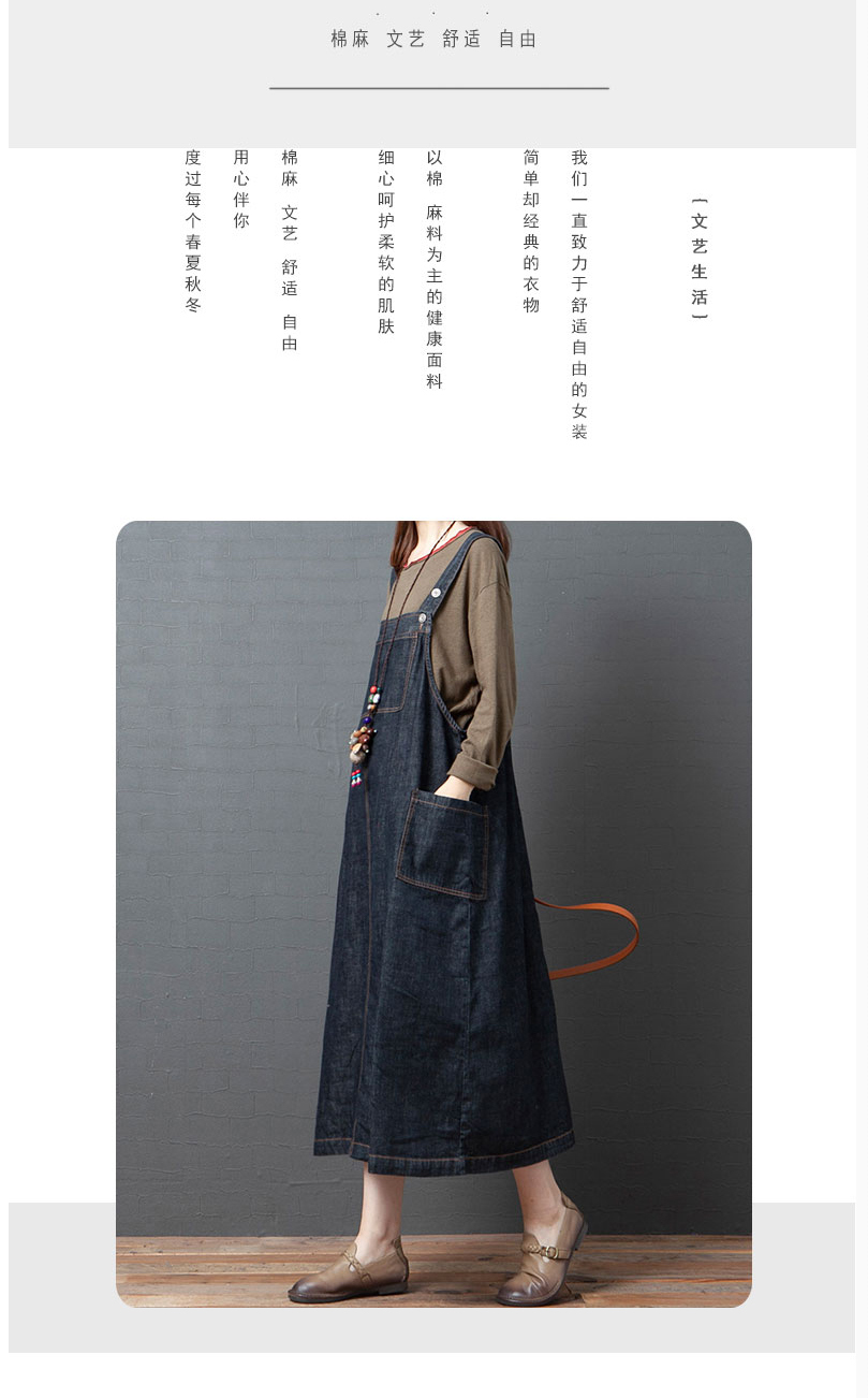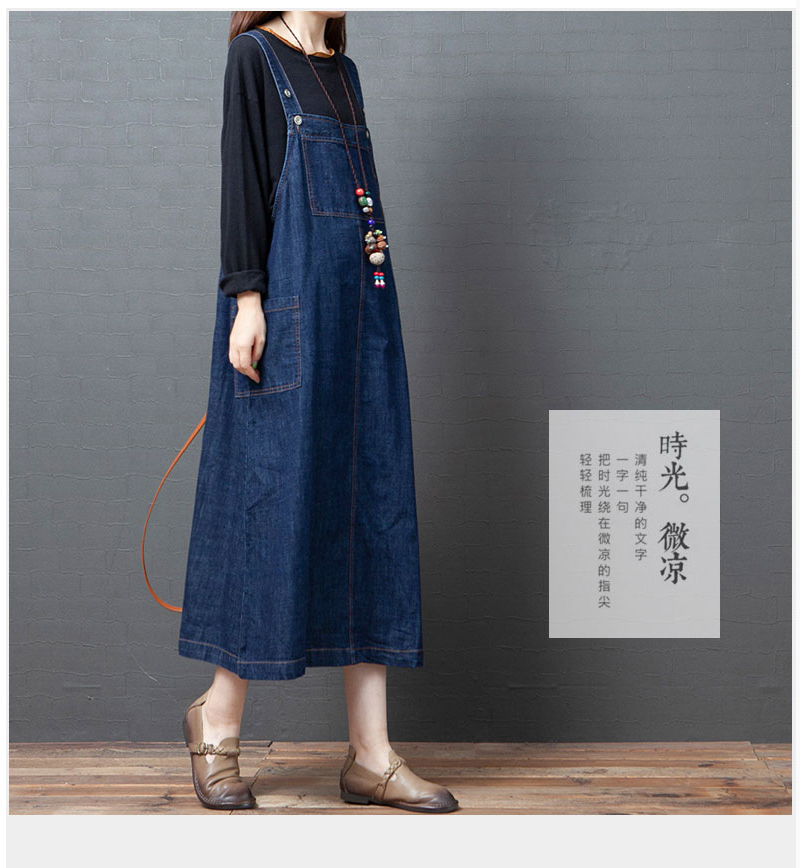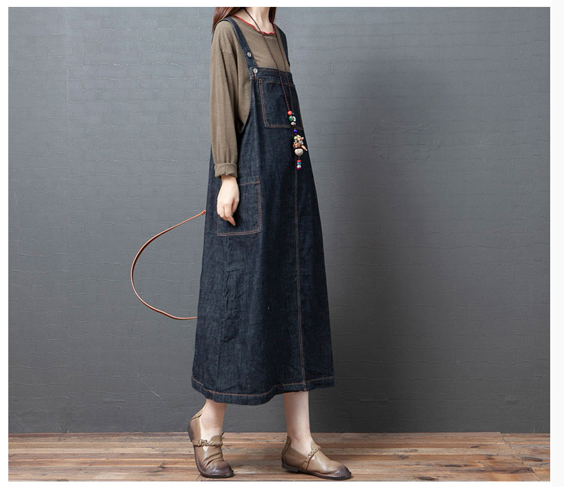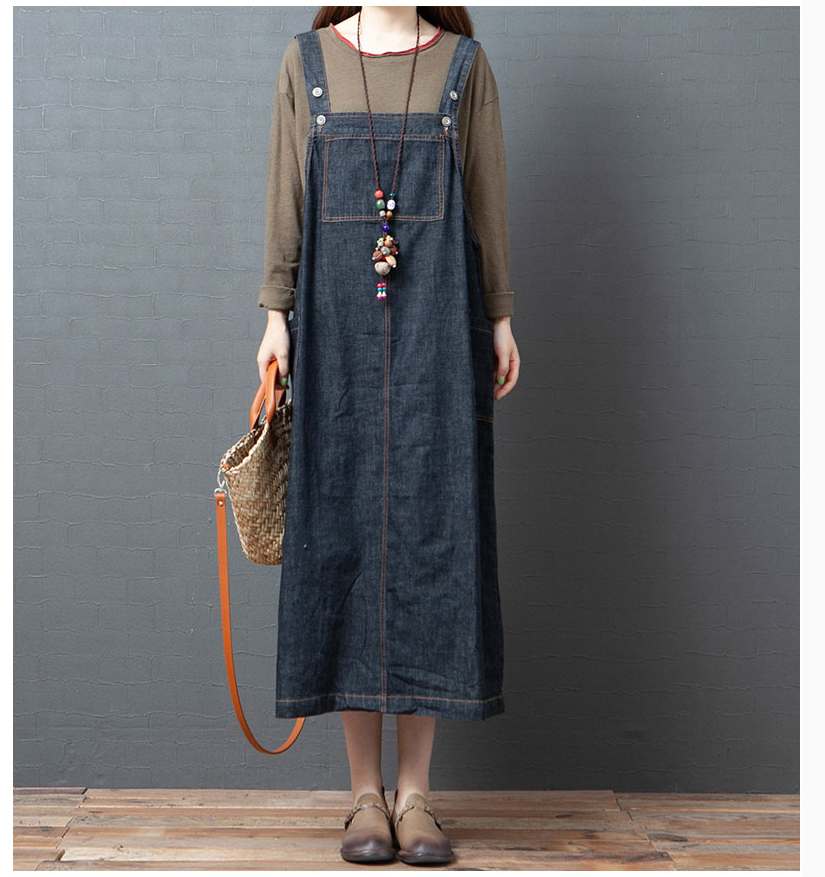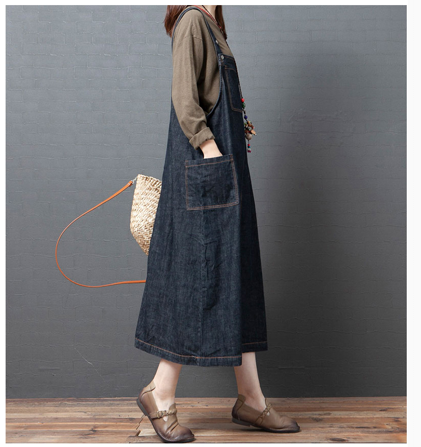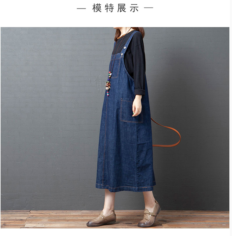 실사 2026 여름 새로운 한국 스타일 루즈핏 캐주얼 레트로 중간 길이 슬림해 보이는 단색 데님 멜빵 스커트 드레스