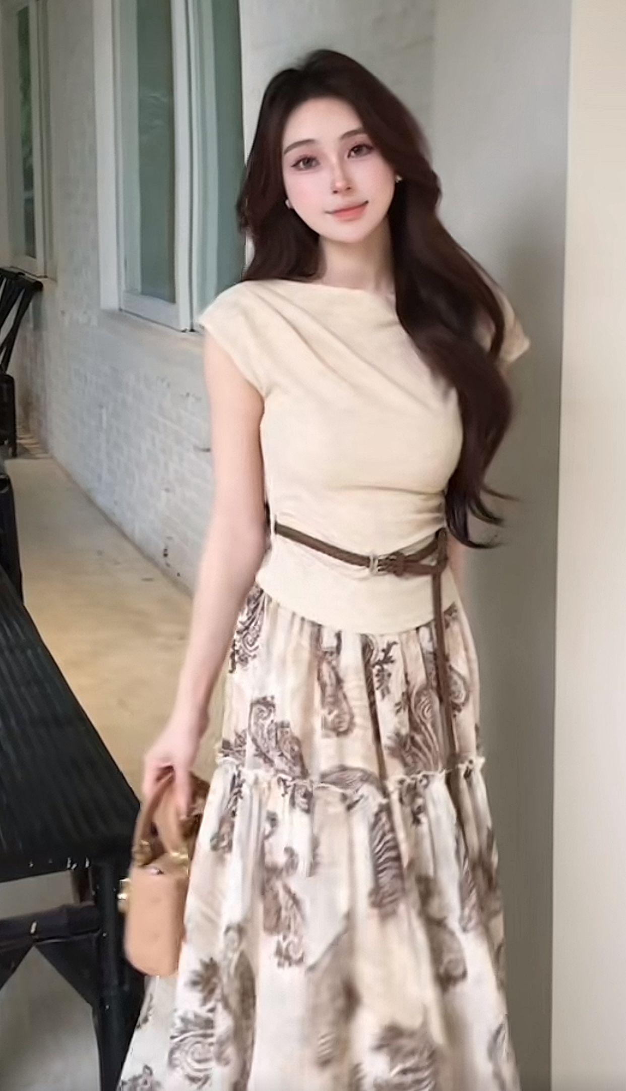 실사 지금 임산부 여름 외국 가스 슬림해 보이는 인형 셔츠 품격 셔츠 끌기 배 치마 투피스 세트