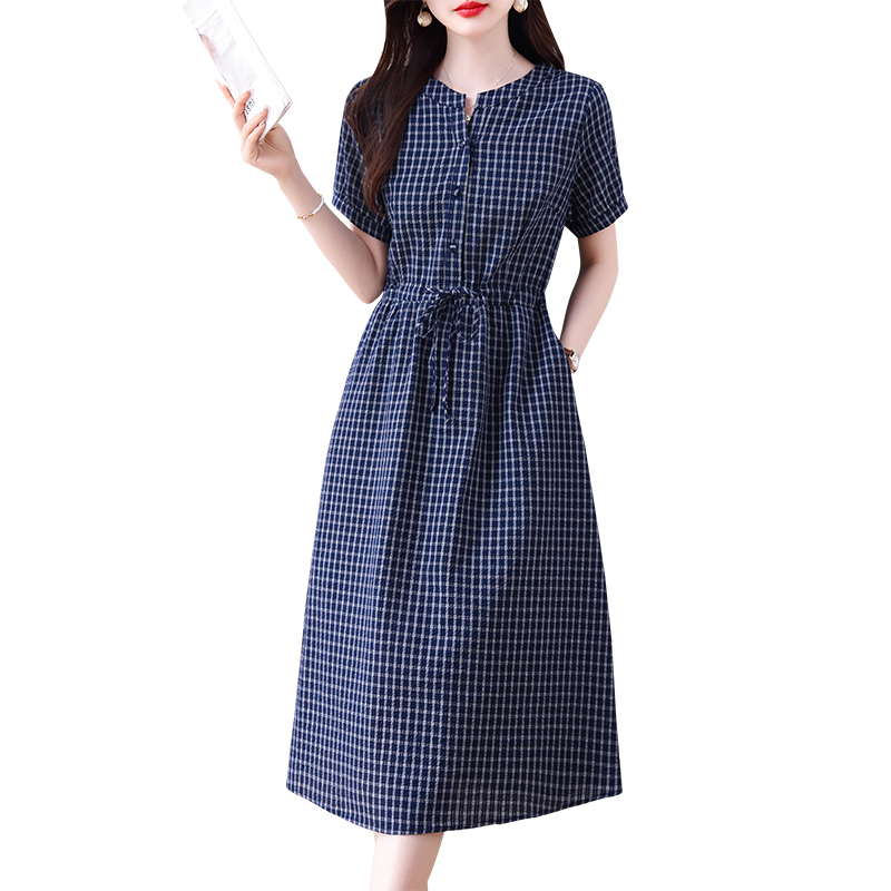 여성 드레스 여름 2026 새로운 올해 인기 폭발 빅 사이즈 허리 수축 슬림해 보이는 면 린넨 품격 치마
