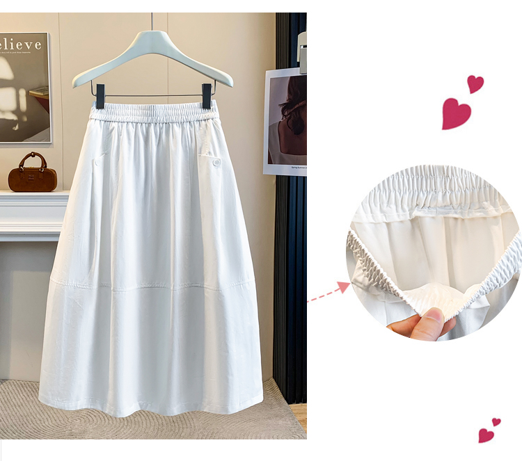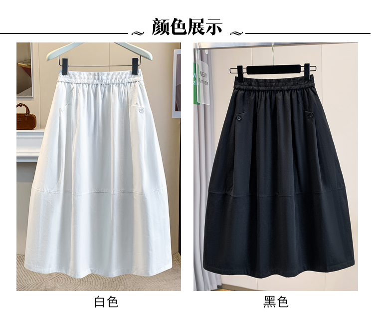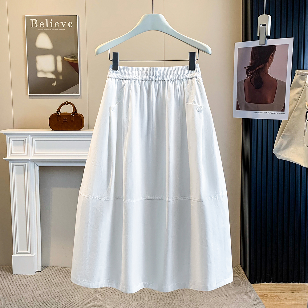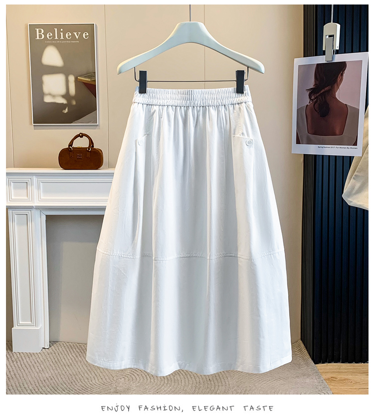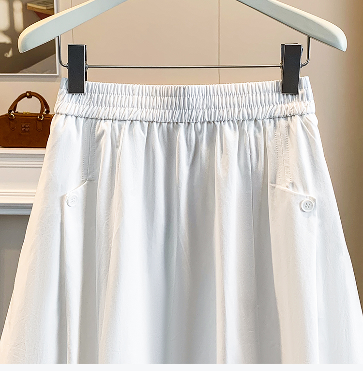 실사 새로운 빅 사이즈 허리밴드 단추 화이트 반신 스커트 여성 우산 치마 루즈핏 패션 다용도 꽃밭 치마
