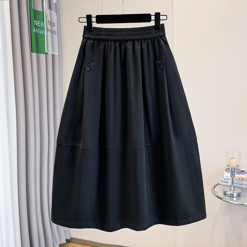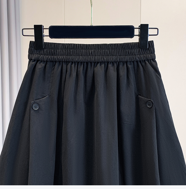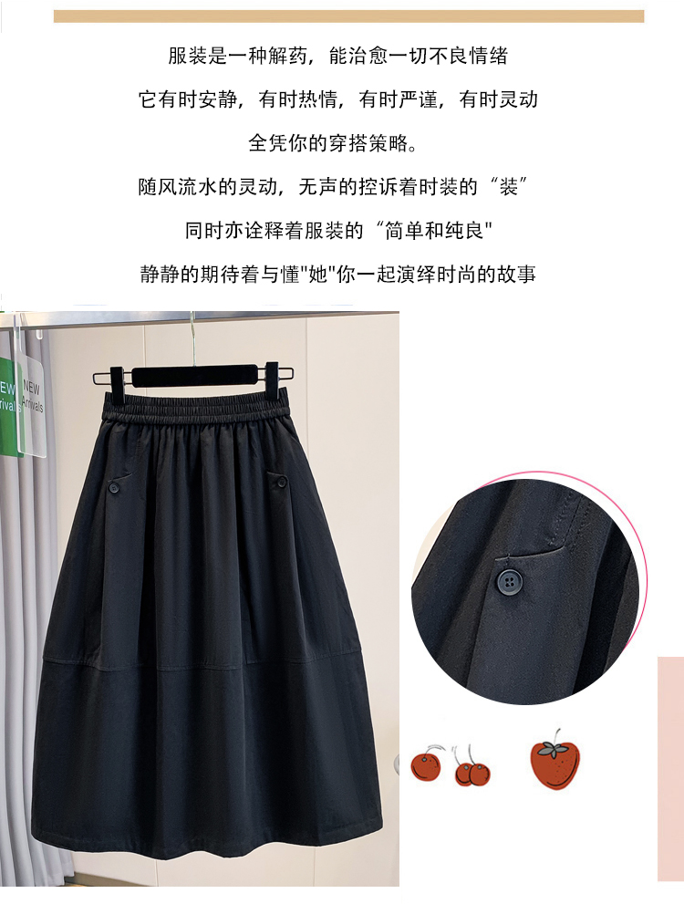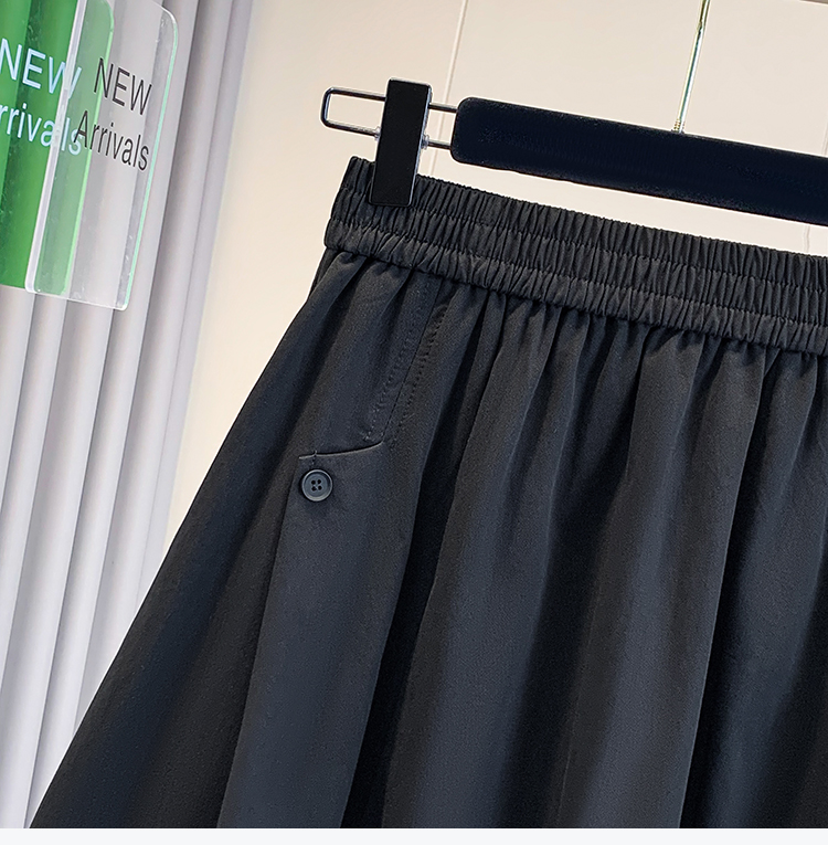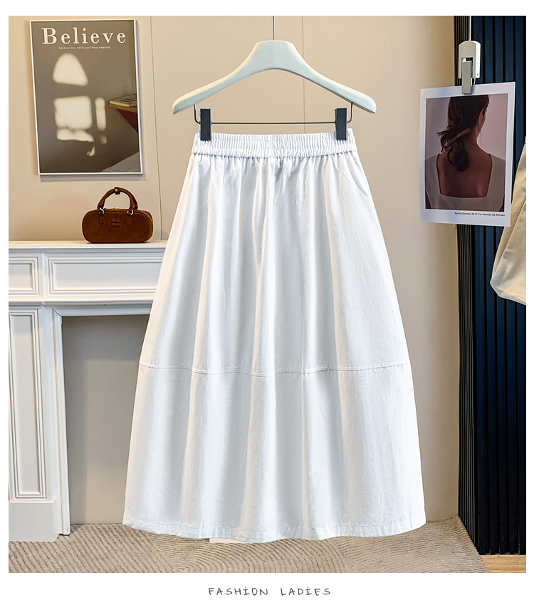 실사 새로운 빅 사이즈 허리밴드 단추 화이트 반신 스커트 여성 우산 치마 루즈핏 패션 다용도 꽃밭 치마