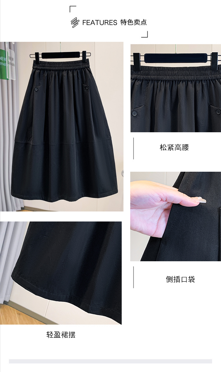 실사 빅 사이즈 허리밴드 아마 반신 스커트 여성 꽃밭 치마 표지 고기 슬림해 보이는 이후 트임 중간 길이 스커트 여름 섹션