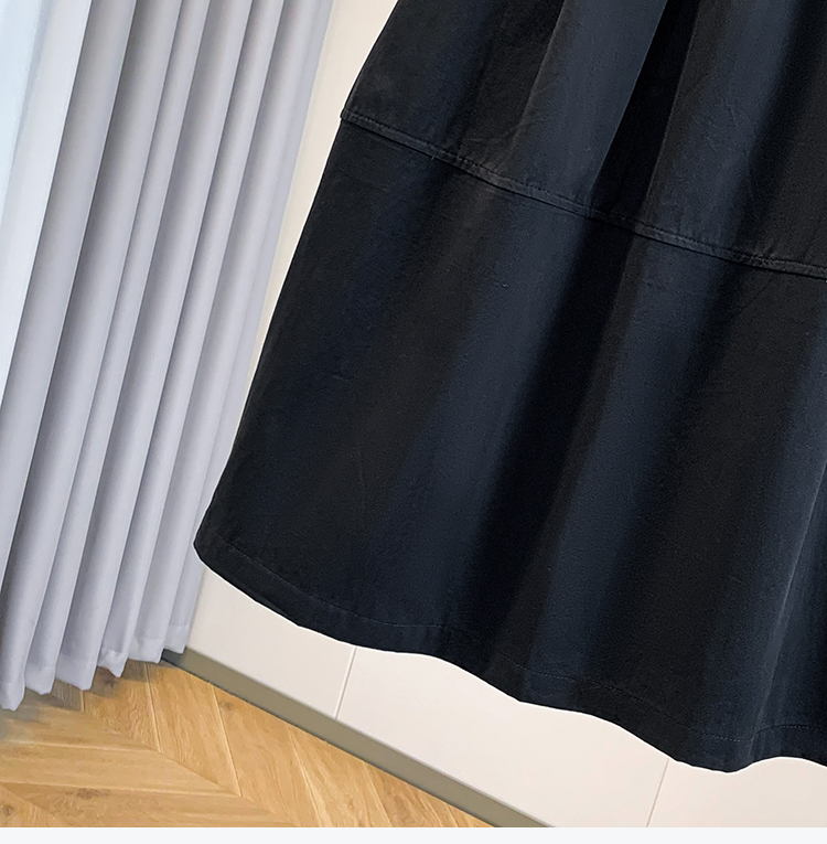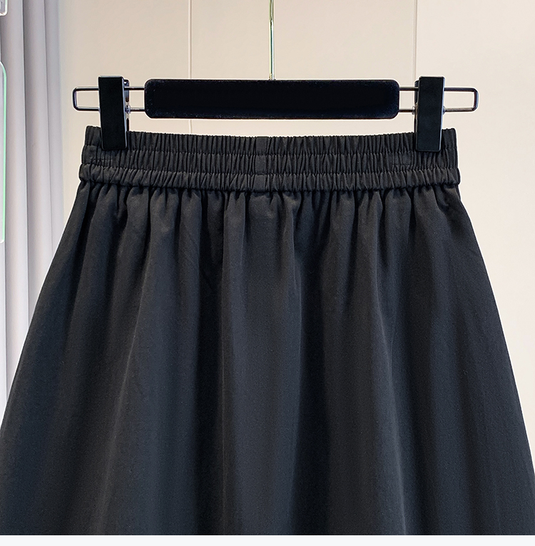 빅 사이즈 검정색 허리밴드 아세트산 새틴 반신 스커트 여자 중간 롱 스커트 밑단 패치워크 레이스 품격 여름