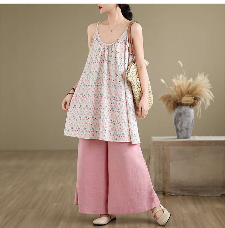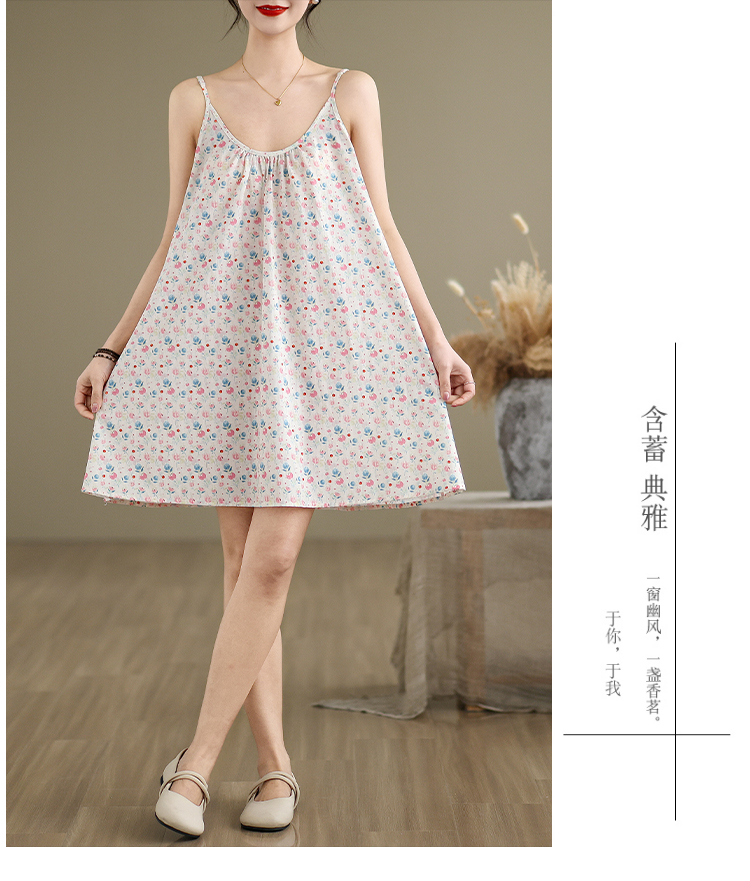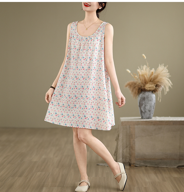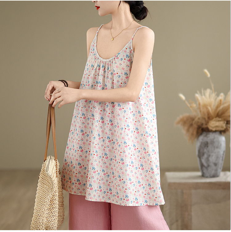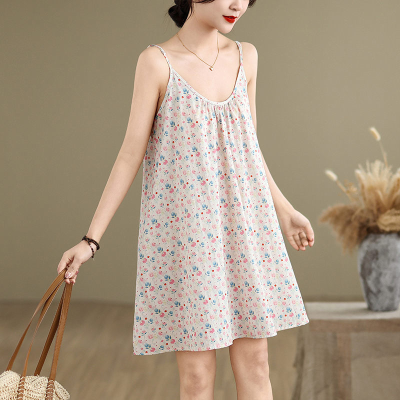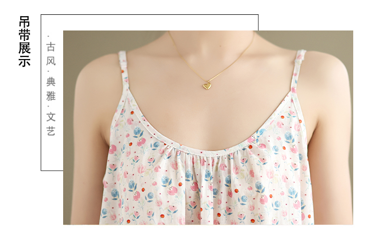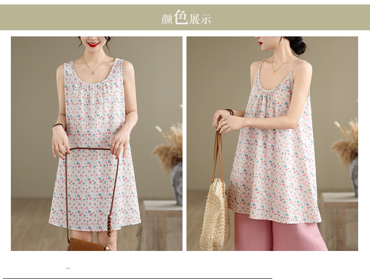 실사 2026 여름 루즈핏 캐주얼 작은 꽃무늬 슬립 드레스 문예 레트로 민소매 조끼 맨위