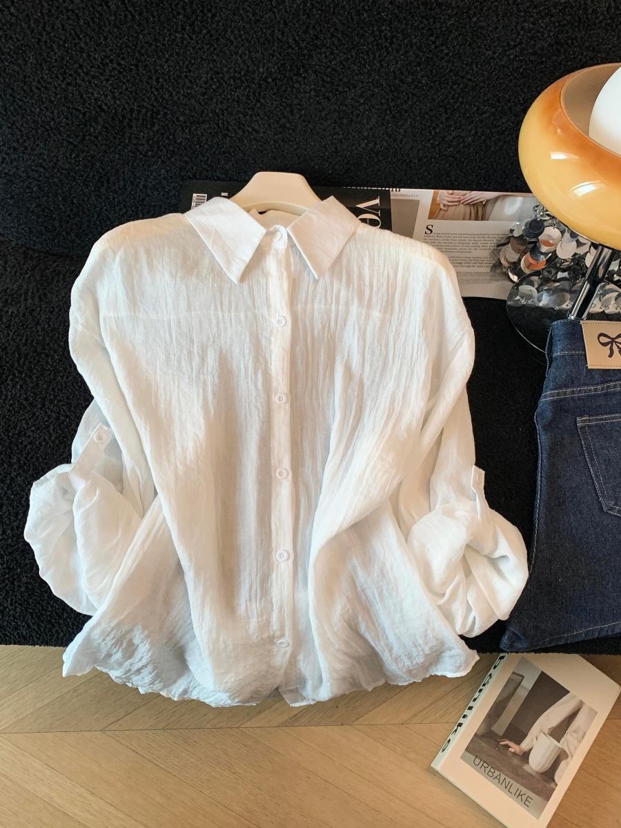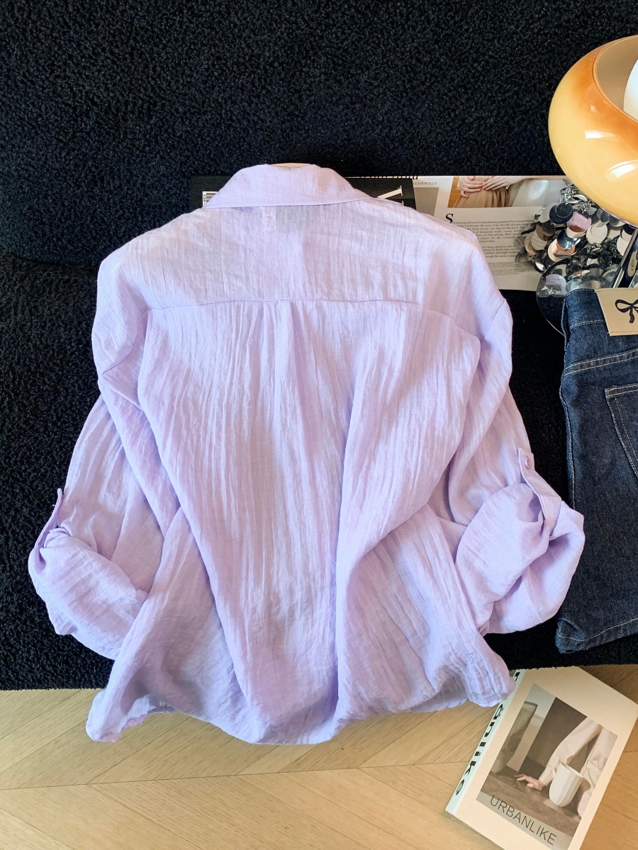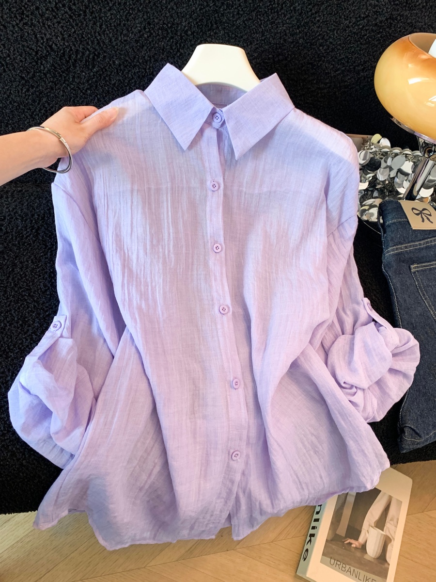 아마 여성 셔츠 2026 봄 여름 새로운 한국 스타일 루즈핏 단색 다용도 슬림해 보이는 긴팔 면 린넨 태양 보호 셔츠 셔츠