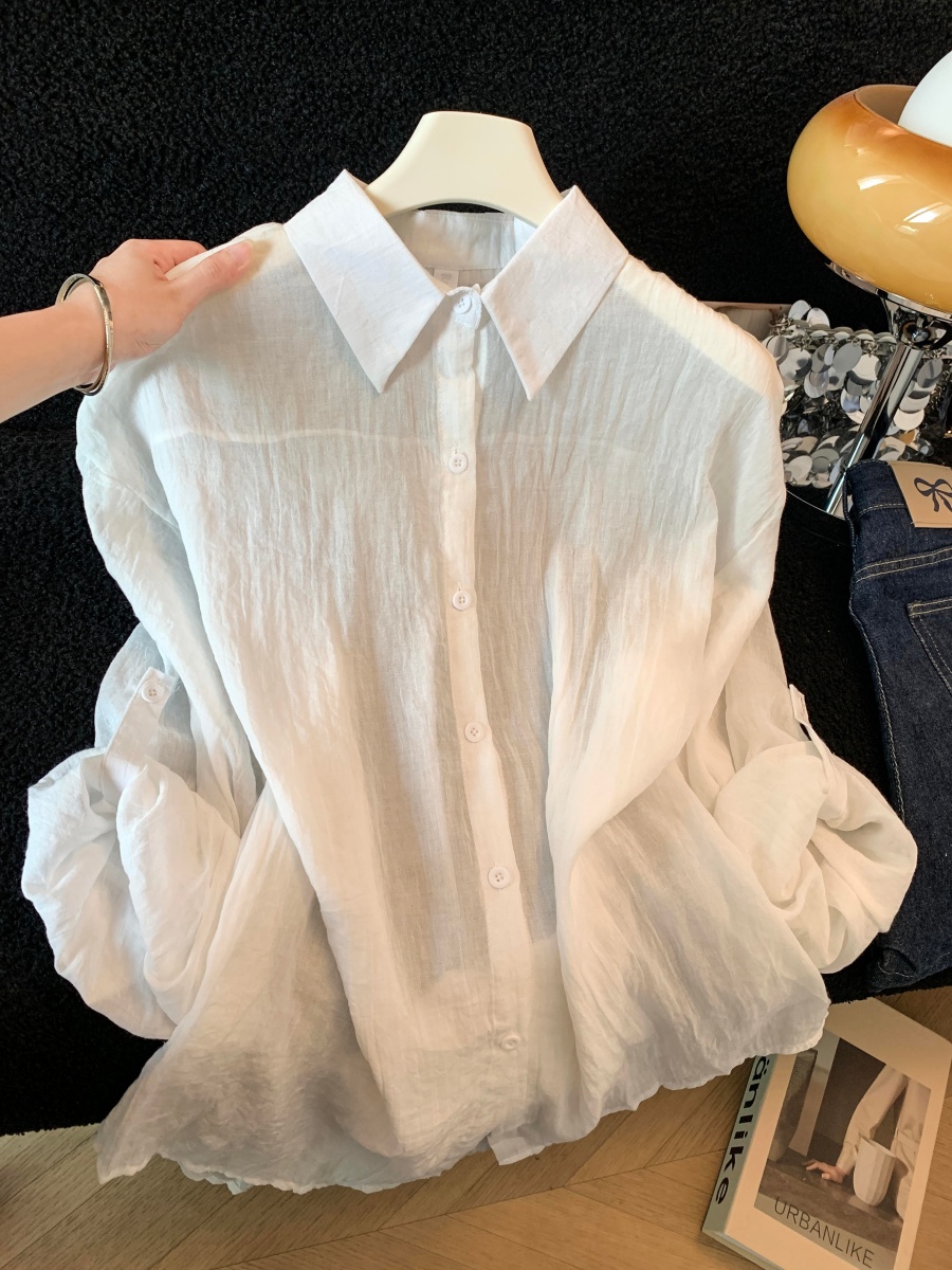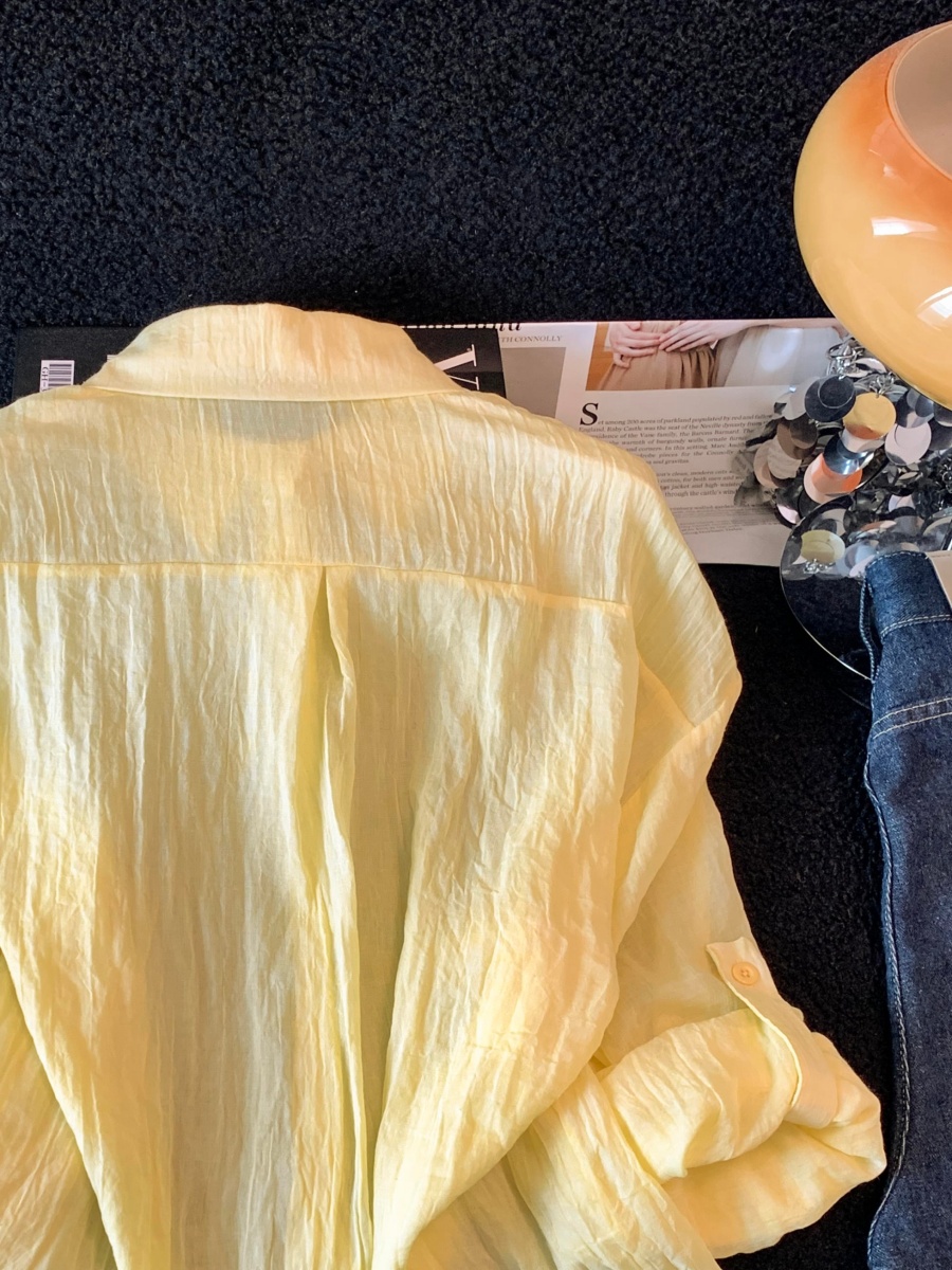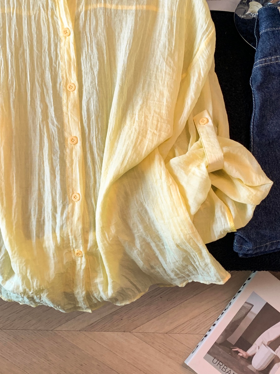 2026 여름 새로운 루즈핏 문예 단색 셔츠 여성 긴 소매 황색 라미 셔츠 얇고 가벼운 통기성 태양 보호 셔츠