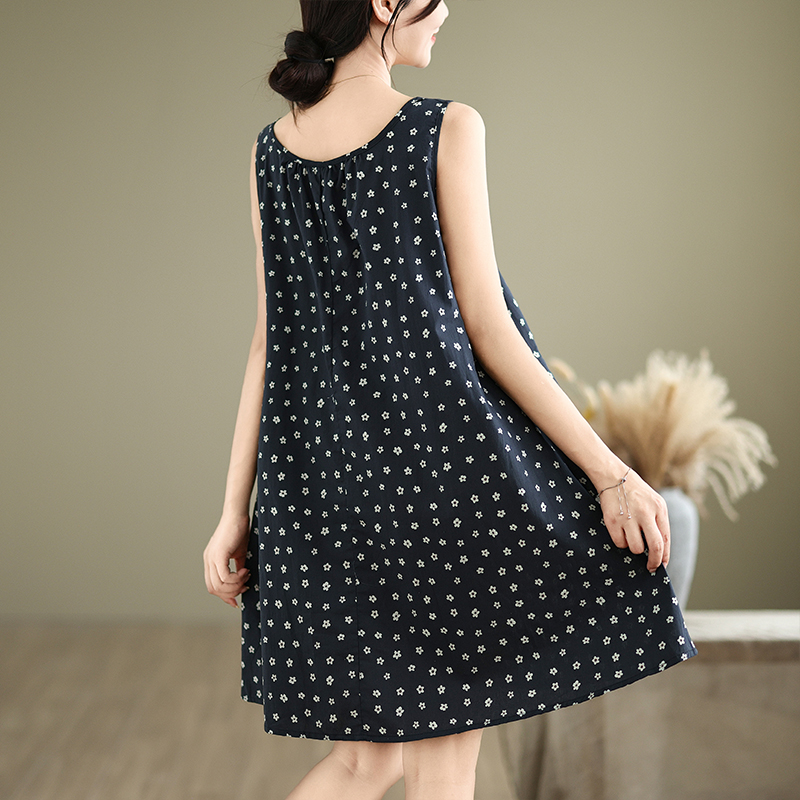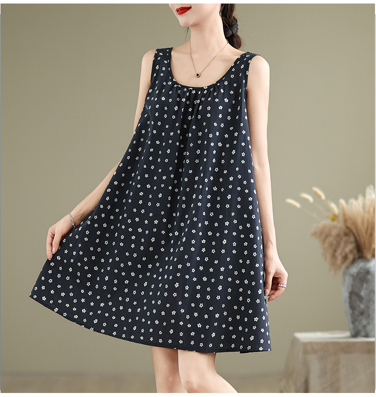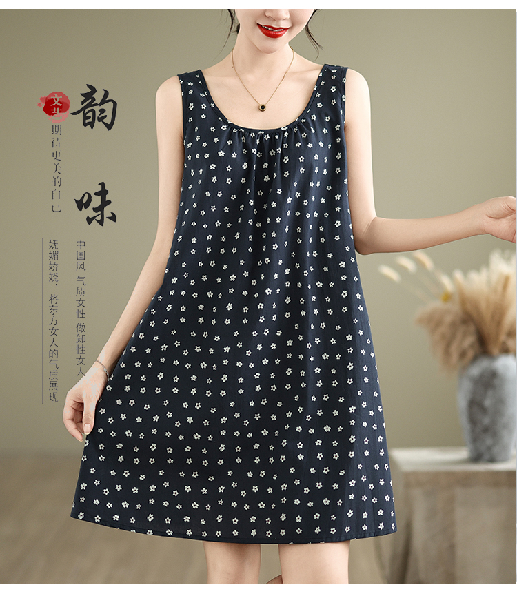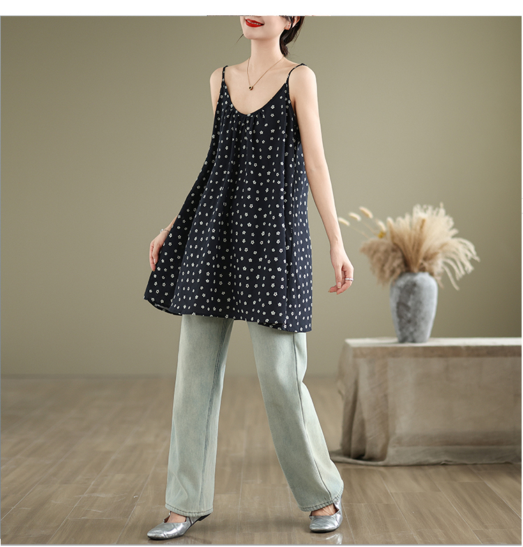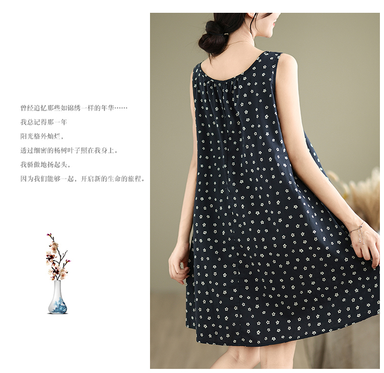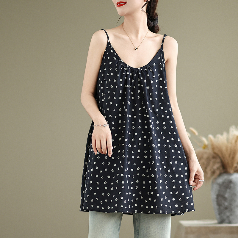 실사 2026 여름 루즈핏 캐주얼 작은 꽃무늬 슬립 드레스 문예 레트로 민소매 조끼 맨위