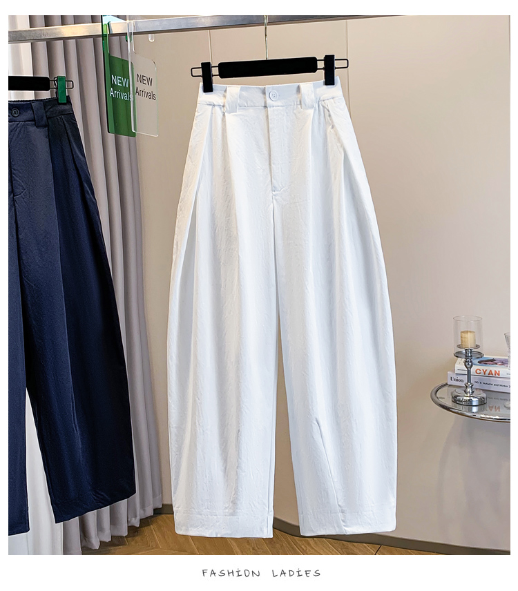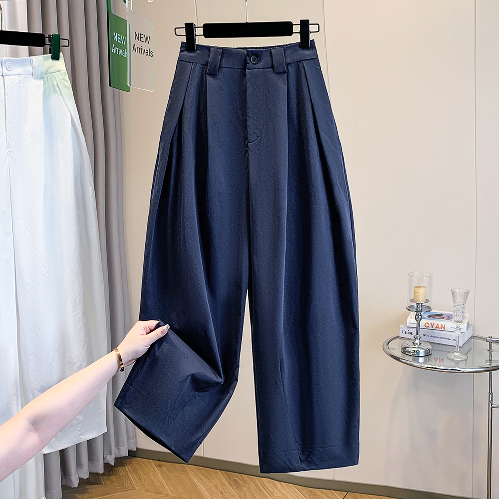 순면 하이웨이스트 워크웨어 얇은 스타일 넓은 다리 모통이 칼 바지 봄 여름 새로운 루즈핏 슬림해 보이는 캐주얼 풍선 바지