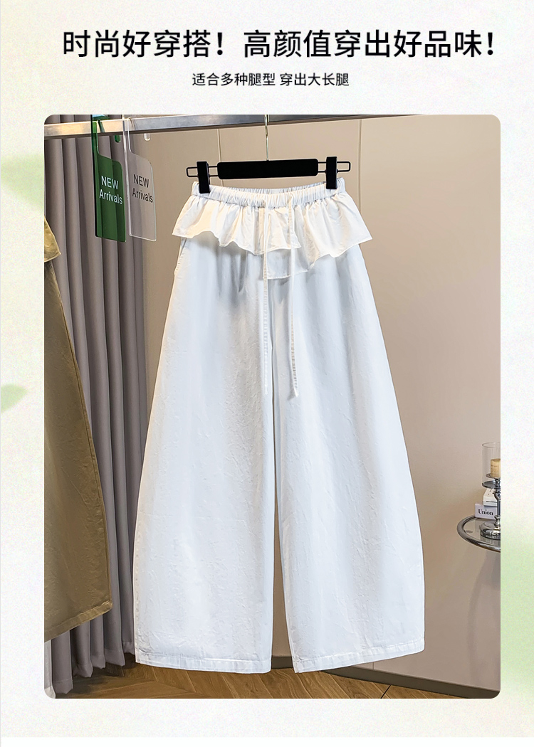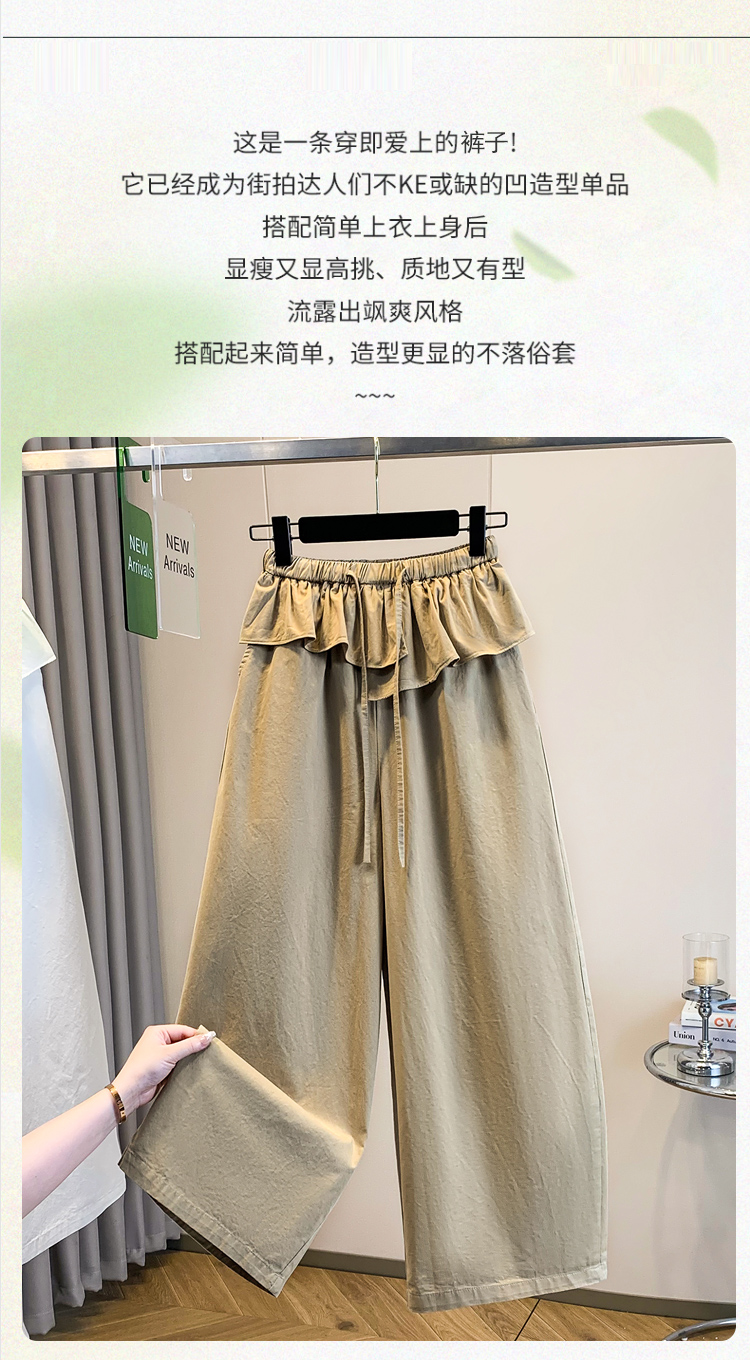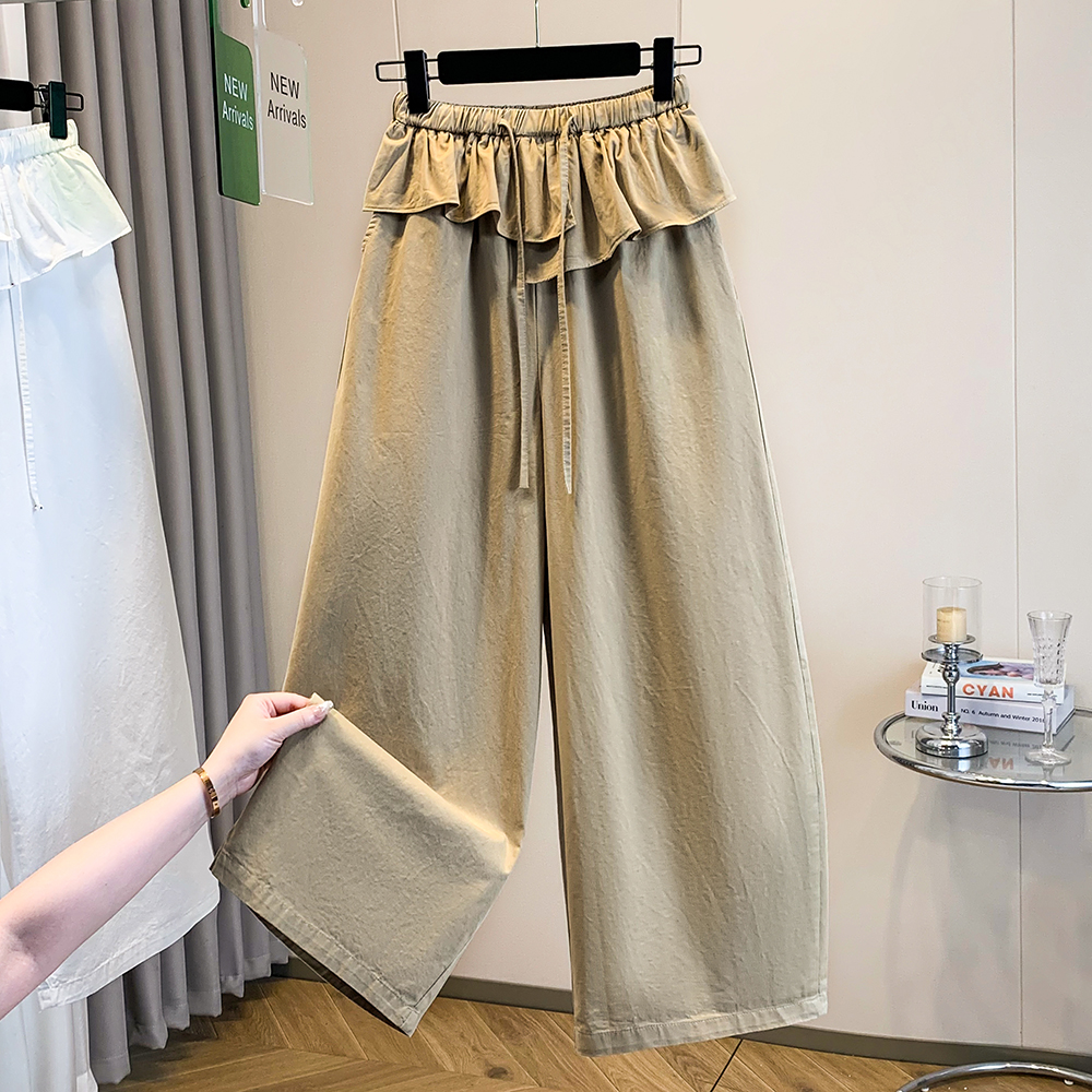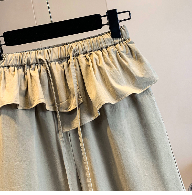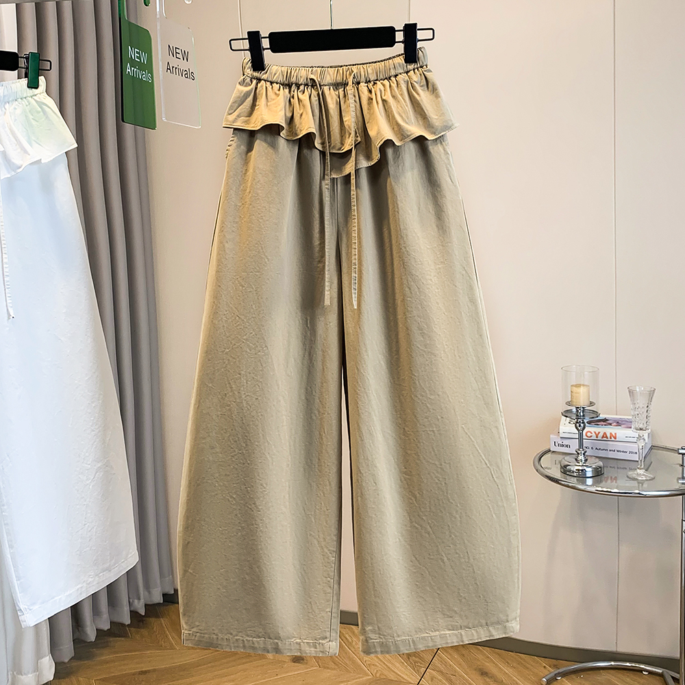 실사 빅 사이즈 바지 프릴 허리밴드 모통이 칼 와이드 레깅스 바지 봄 드레스 자이언트 잘 생긴 워크웨어 캐주얼 바지