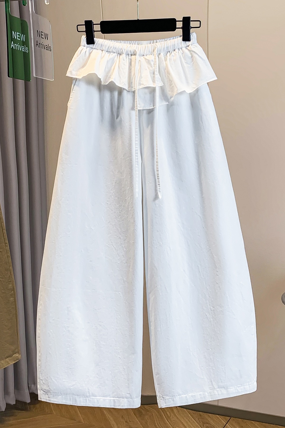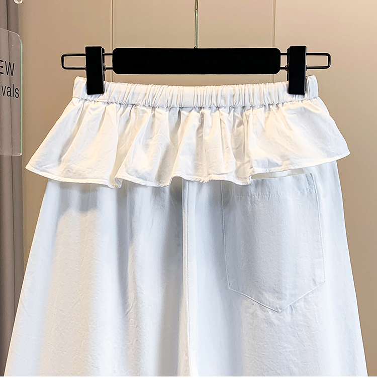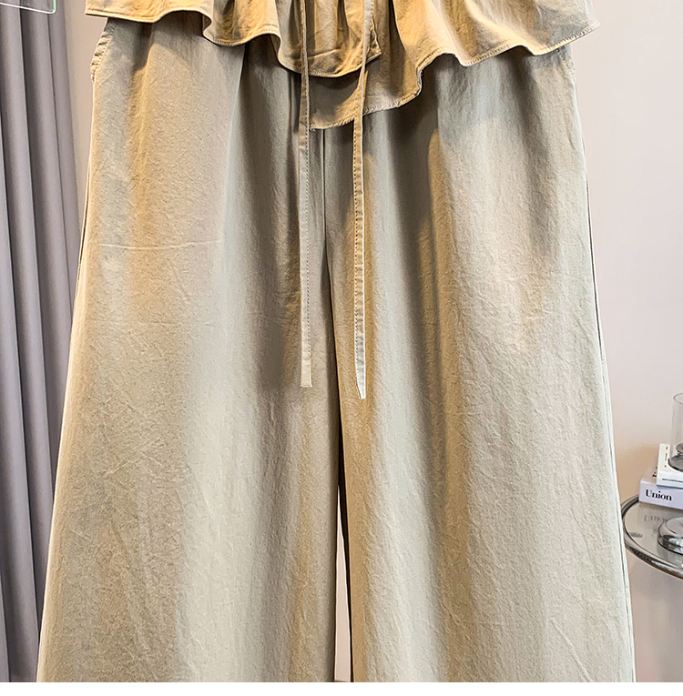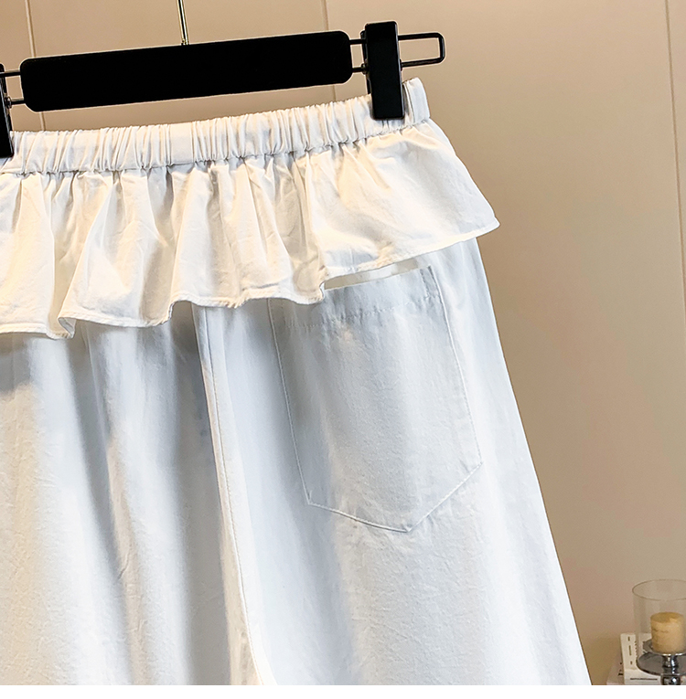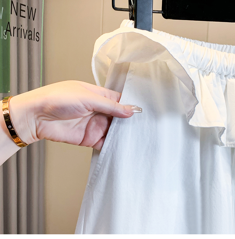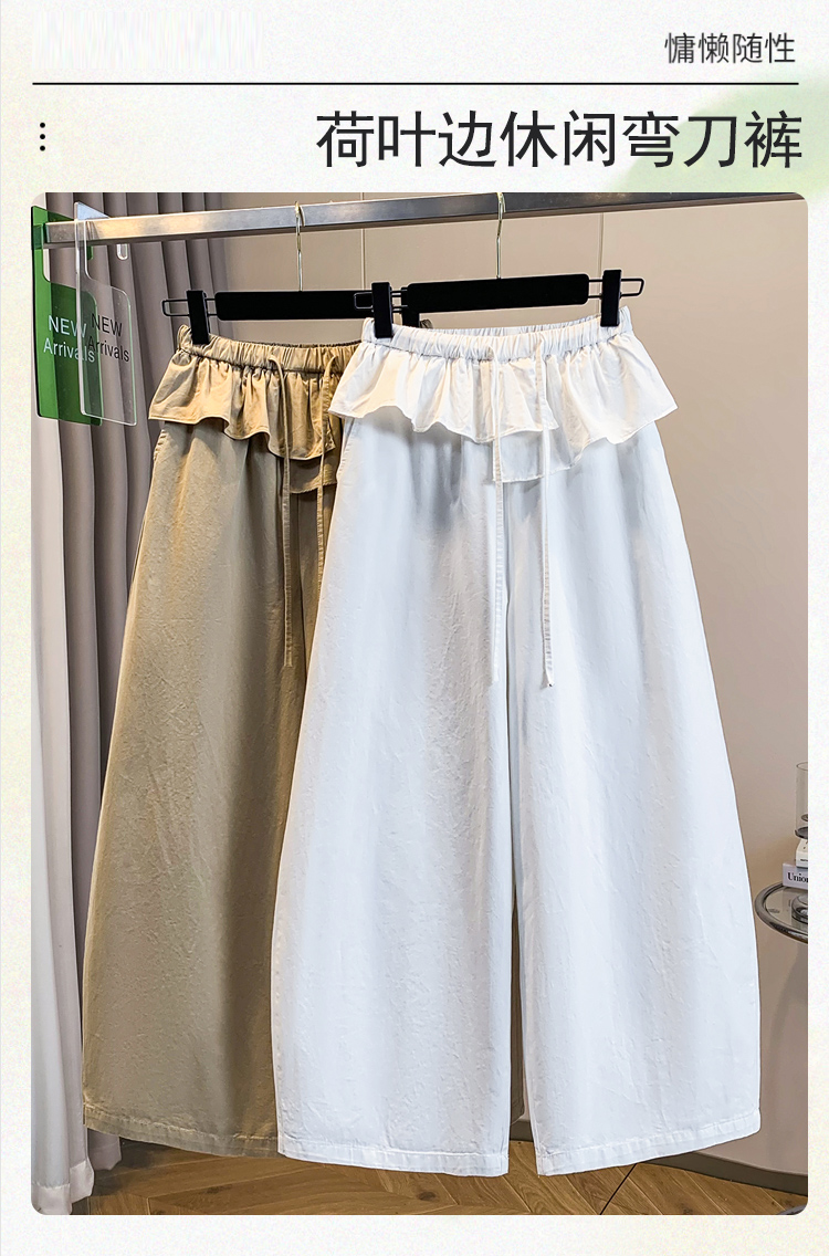 실사 빅 사이즈 바지 프릴 허리밴드 모통이 칼 와이드 레깅스 바지 봄 드레스 자이언트 잘 생긴 워크웨어 캐주얼 바지