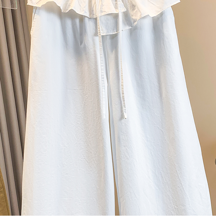 한 부서 목이버섯 레이스 면 린넨 재료 와이드 레깅스 바지 2026 여름 허리밴드 슬림해 보이는 루즈핏 스트레이트 캐주얼 바지 트렌디