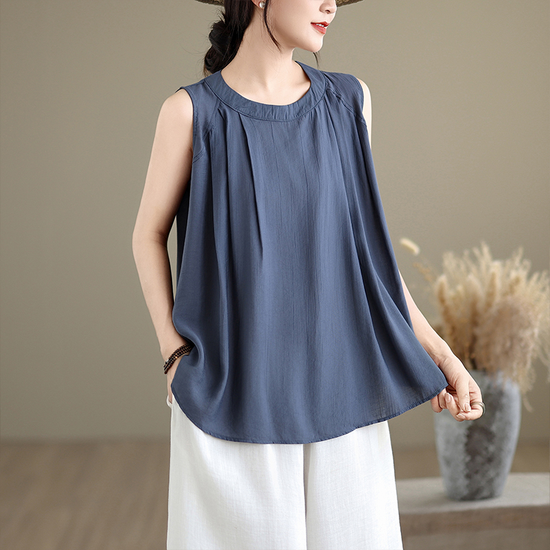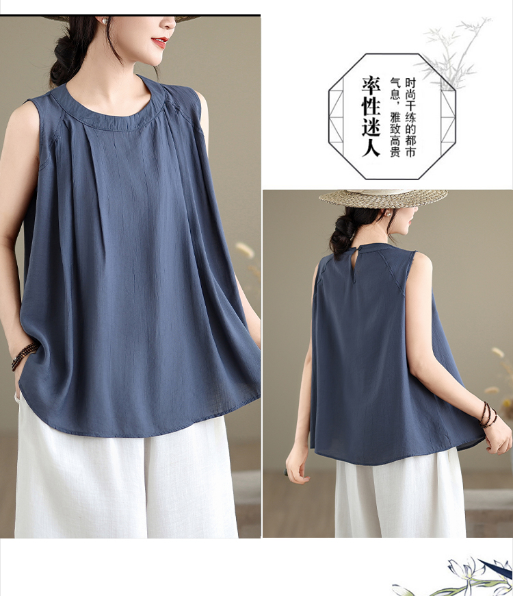실사 2026 새로운 여름 질감 라미 루즈핏 조끼 면 린넨 여성 의류 외국 가스 주름 민소매 맨위
