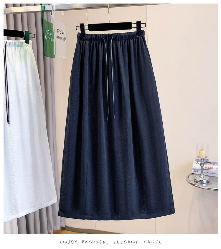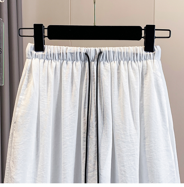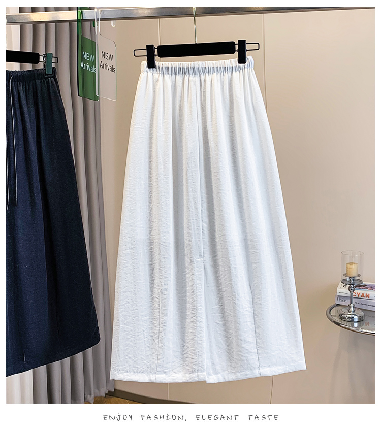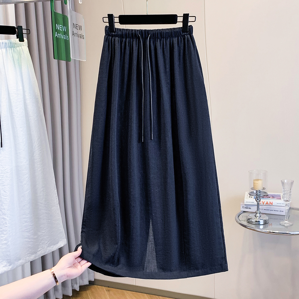 실사 빅 사이즈 허리밴드 아마 반신 스커트 여성 꽃밭 치마 표지 고기 슬림해 보이는 이후 트임 중간 길이 스커트 여름 섹션