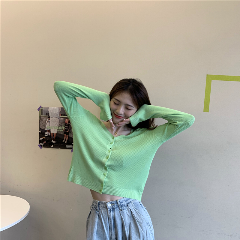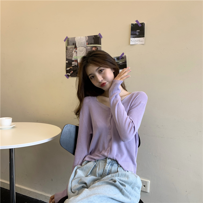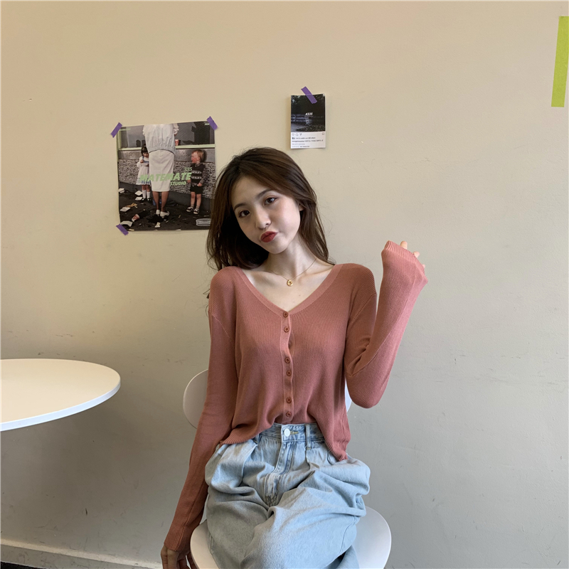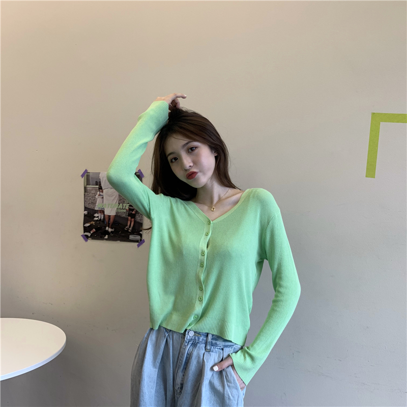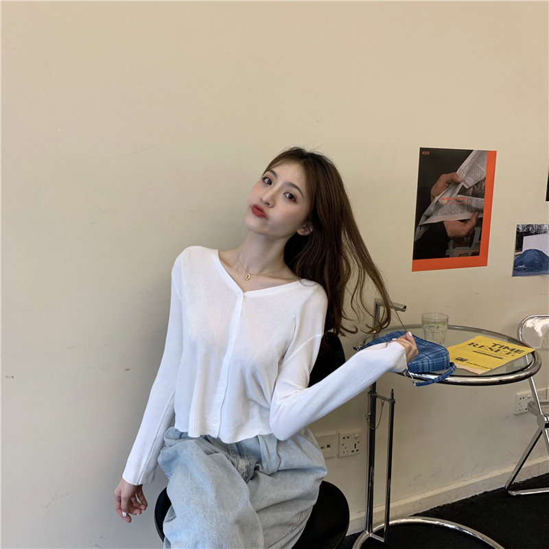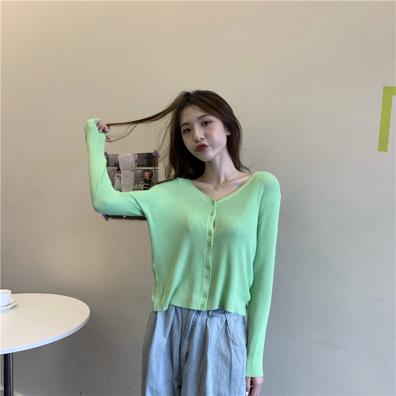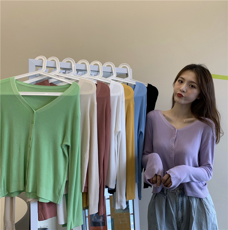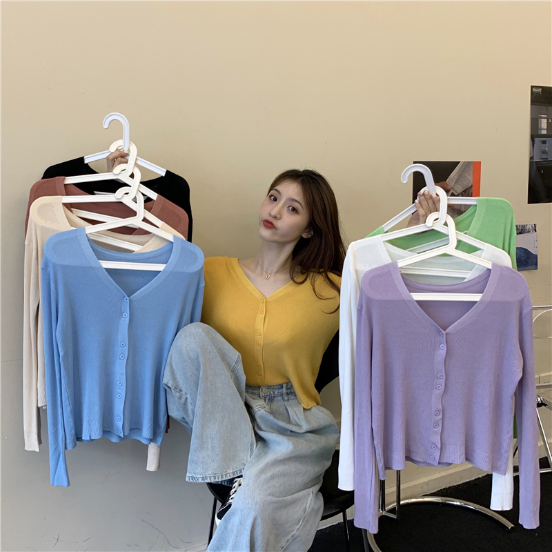 실사 정가 한국 스타일 여름 외국 가스 니트 오픈 가디건 긴팔 태양 보호 셔츠 여성