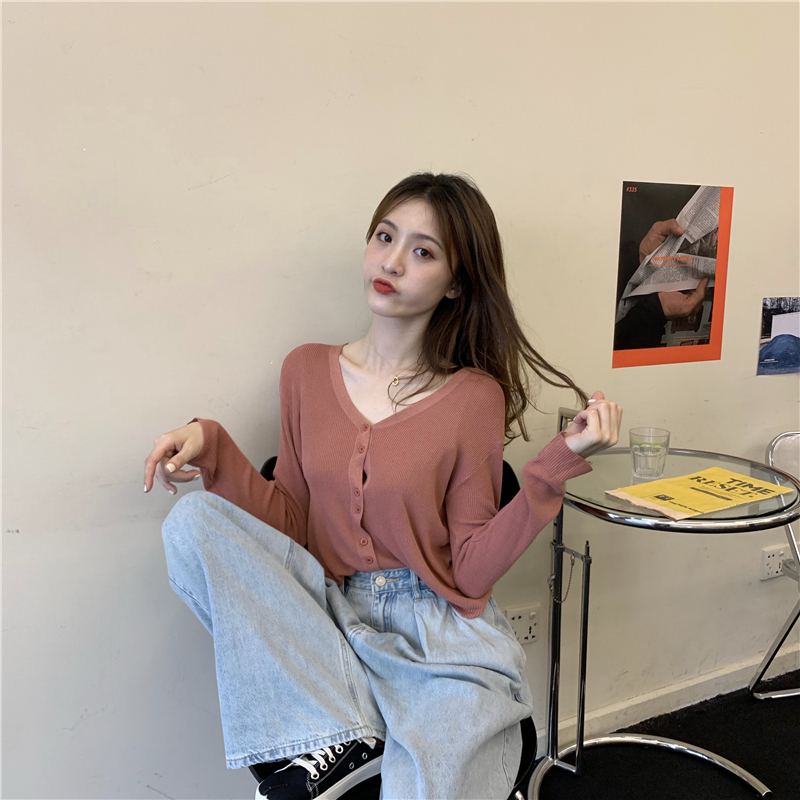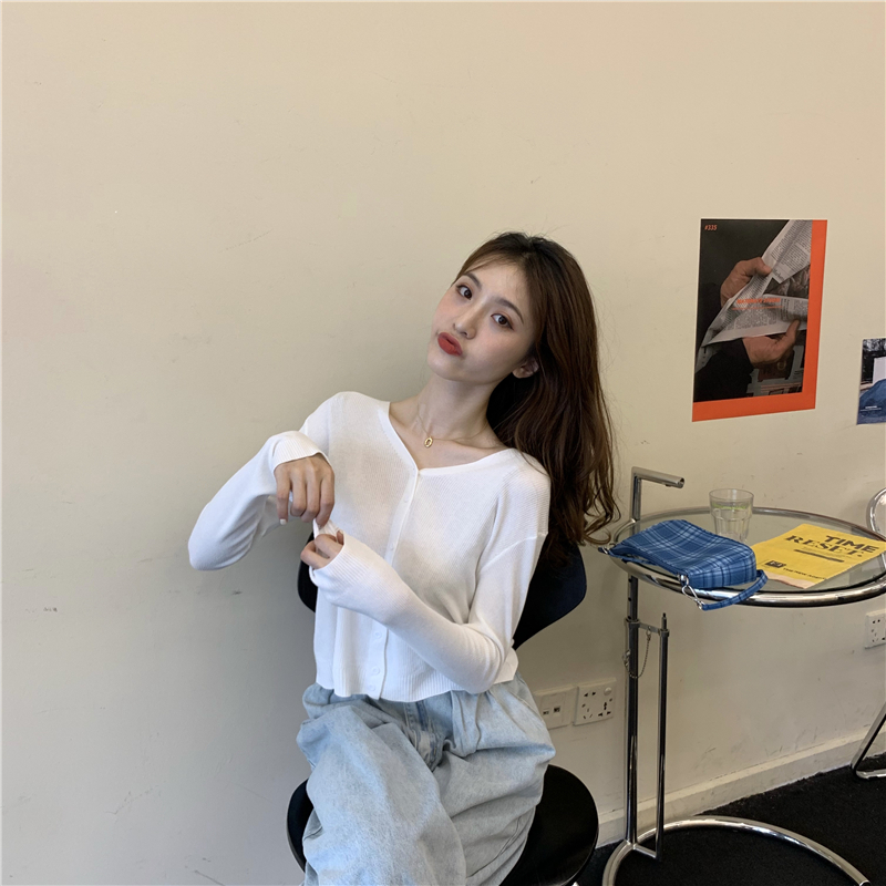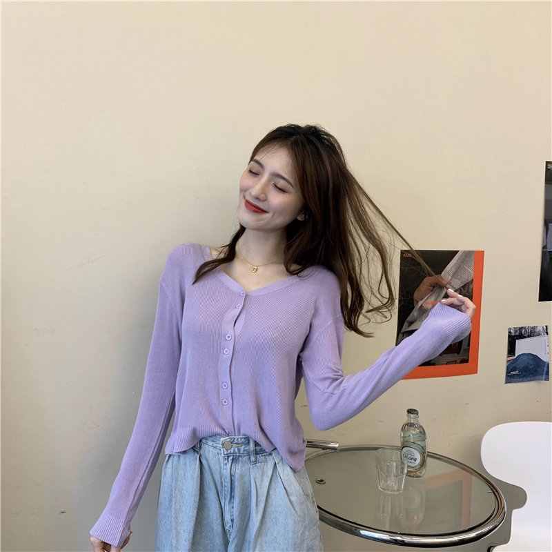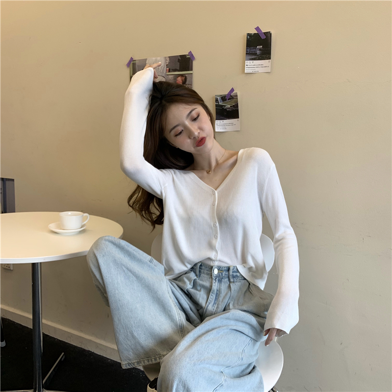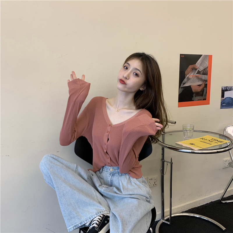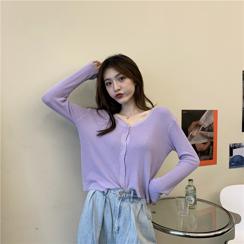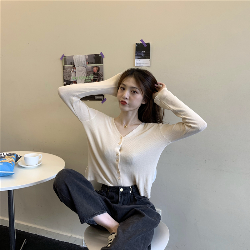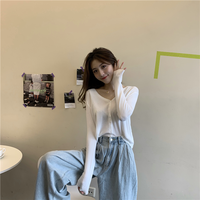 실사 정가 한국 스타일 여름 외국 가스 니트 오픈 가디건 긴팔 태양 보호 셔츠 여성
