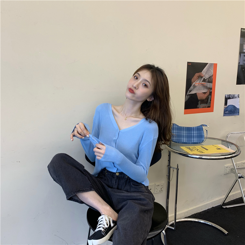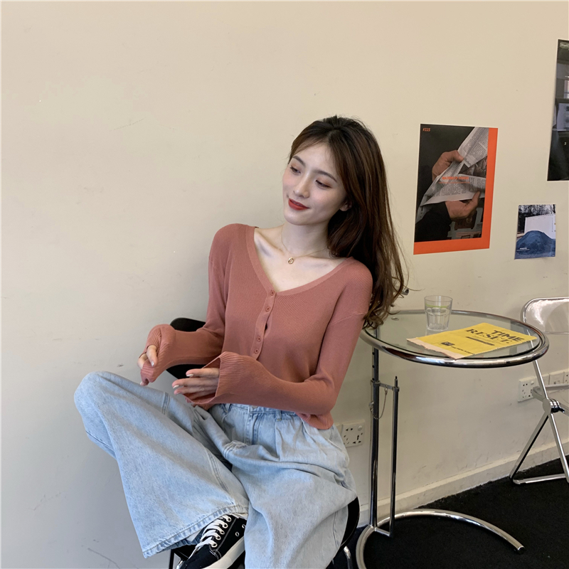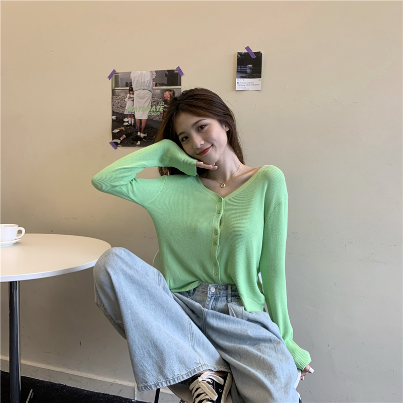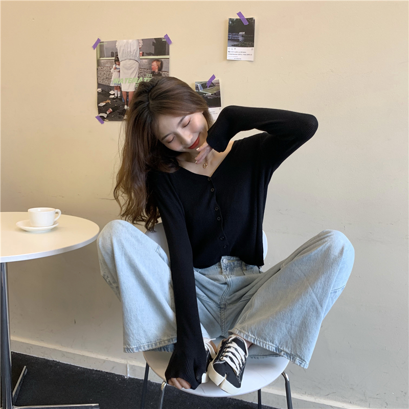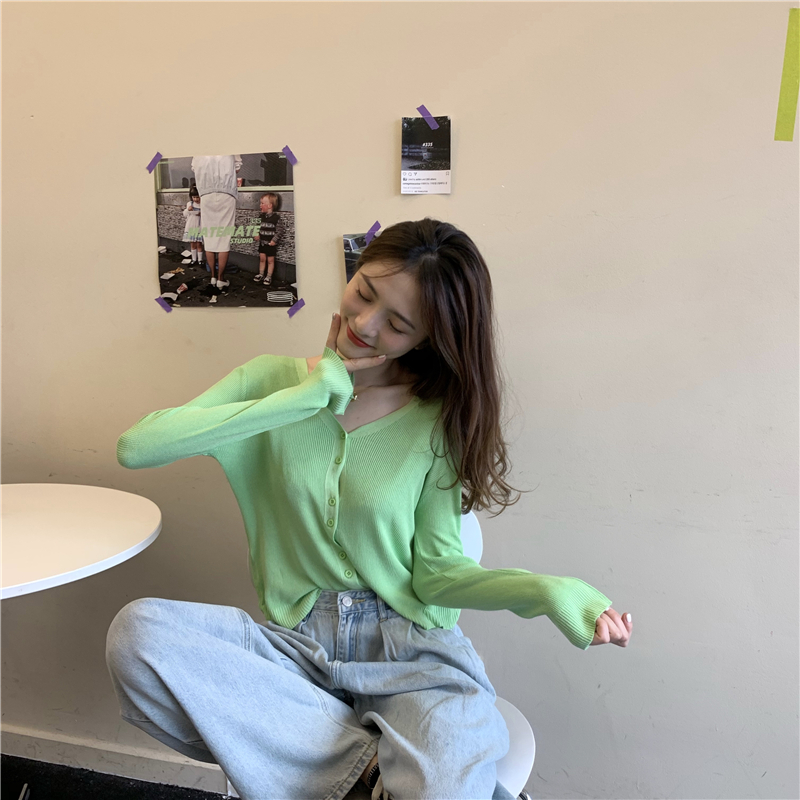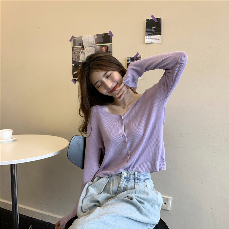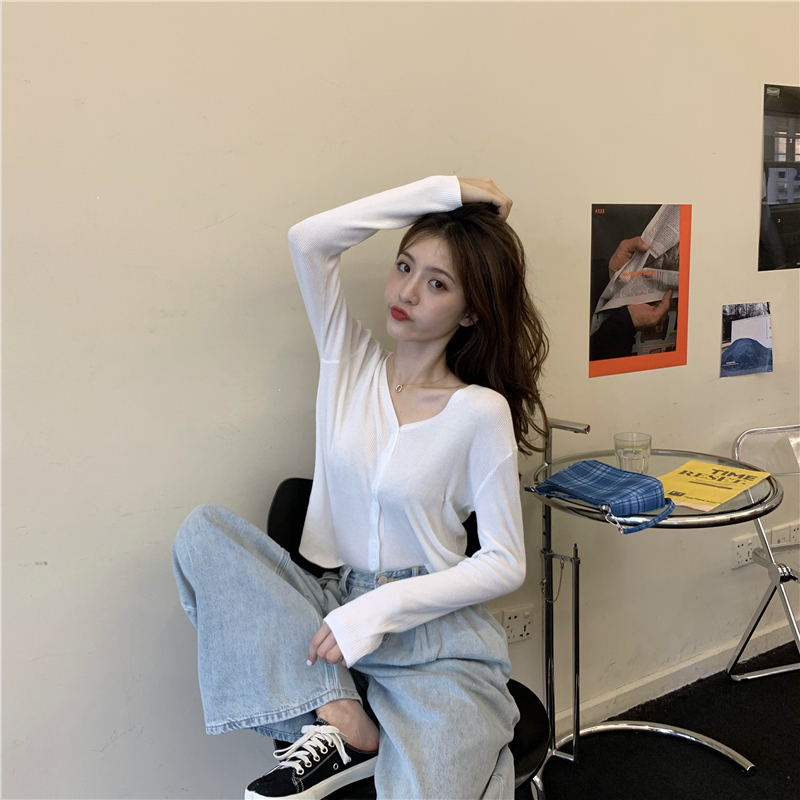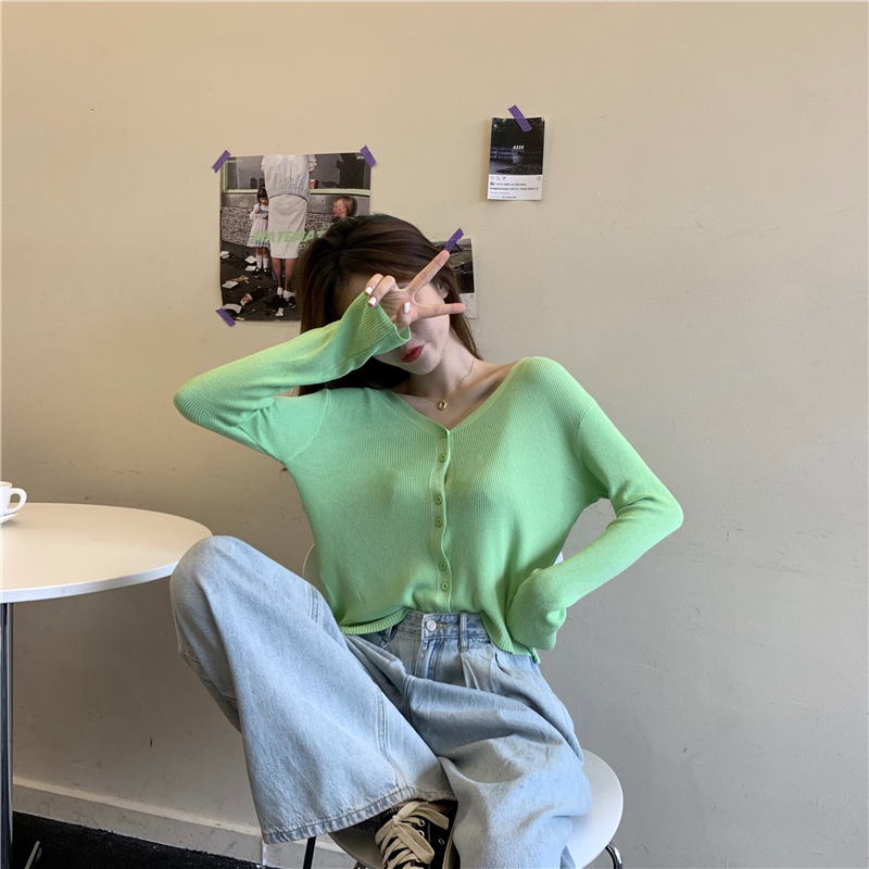 실사 정가 한국 스타일 여름 외국 가스 니트 오픈 가디건 긴팔 태양 보호 셔츠 여성