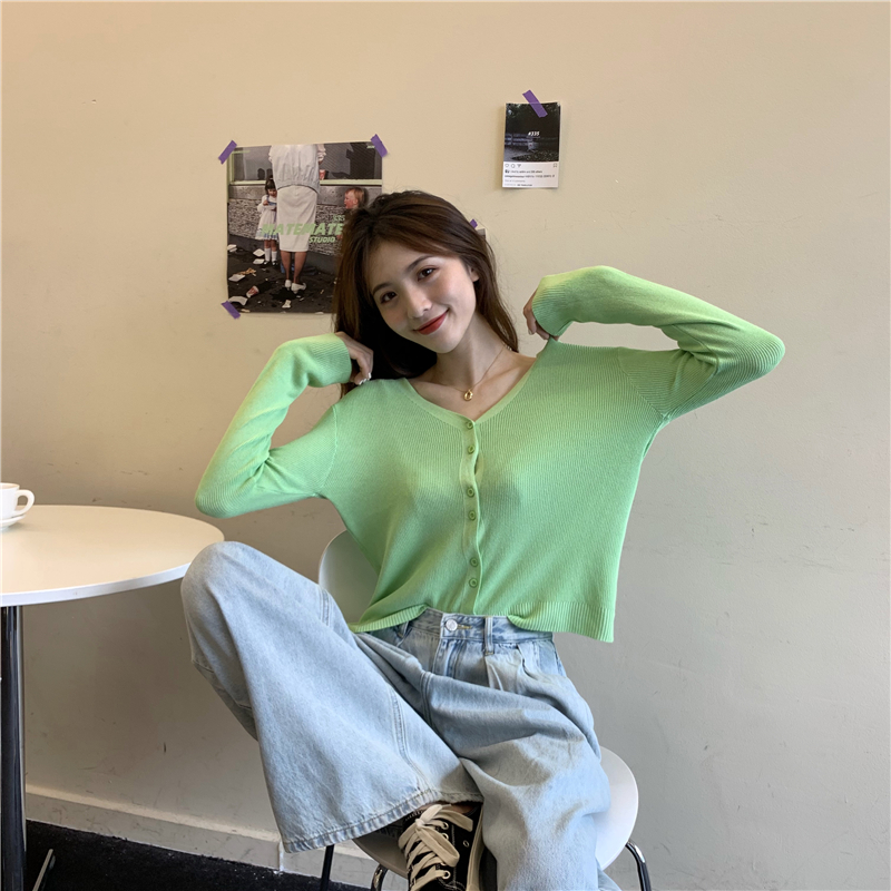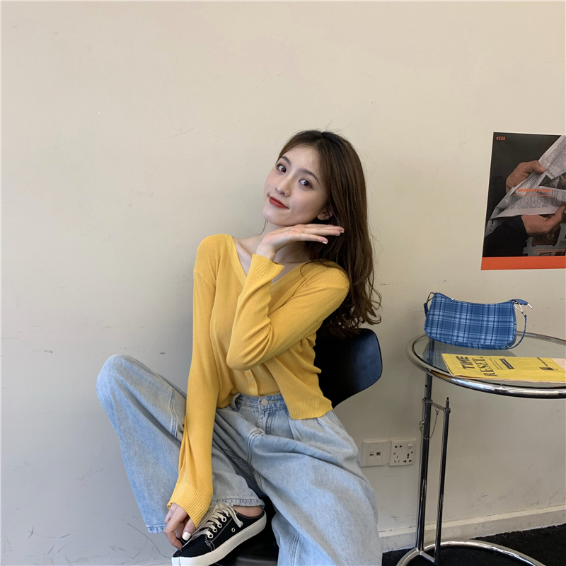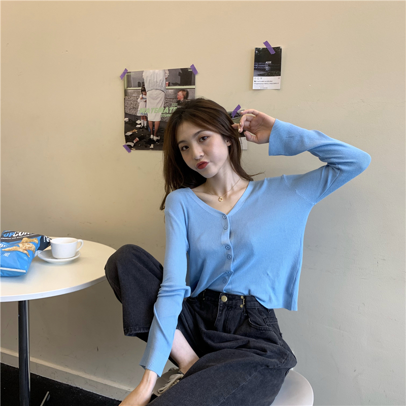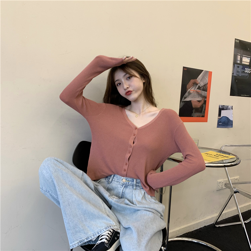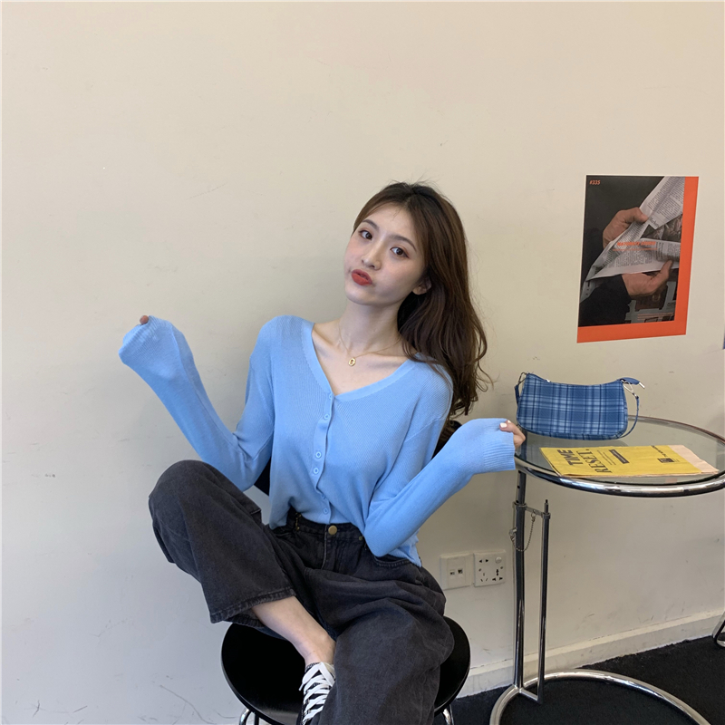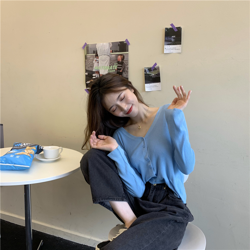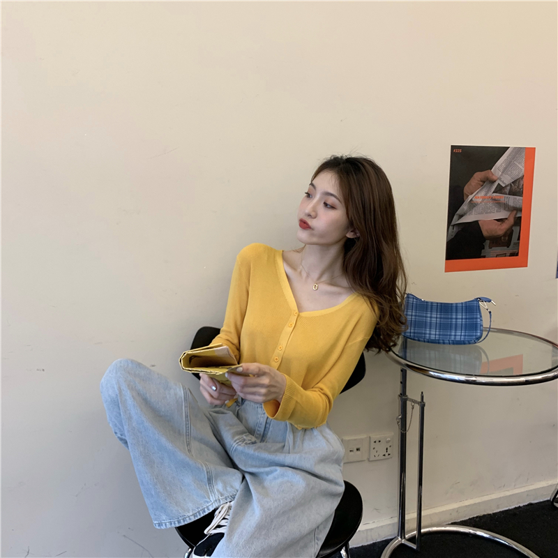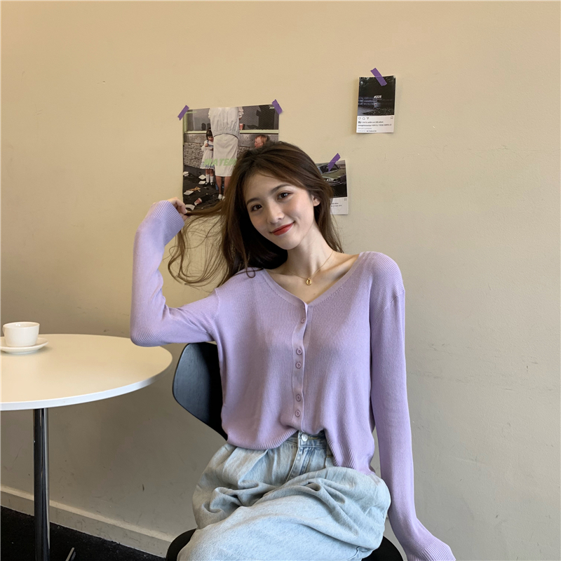 실사 정가 한국 스타일 여름 외국 가스 니트 오픈 가디건 긴팔 태양 보호 셔츠 여성