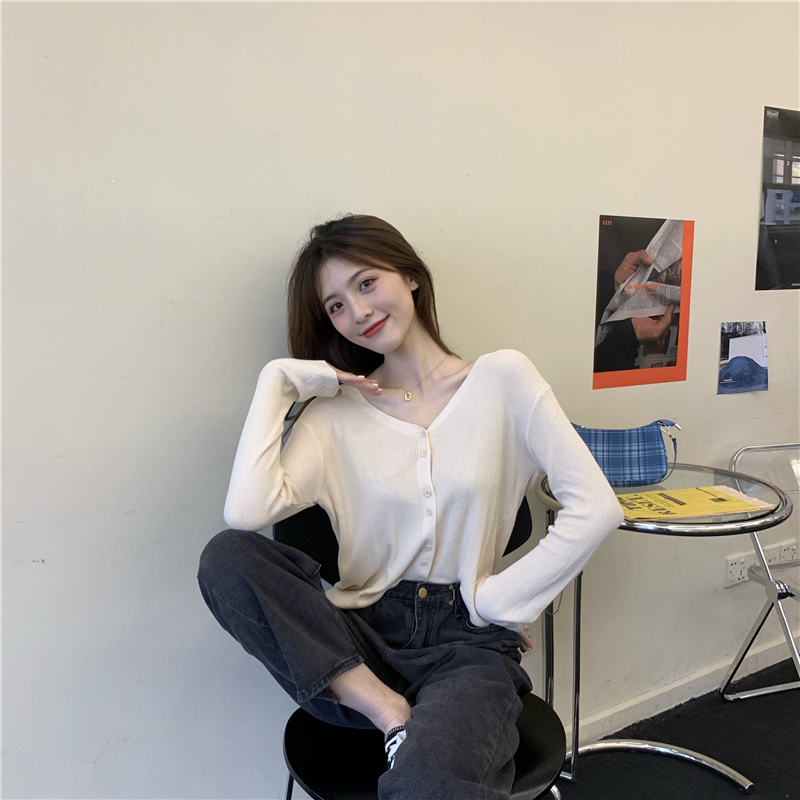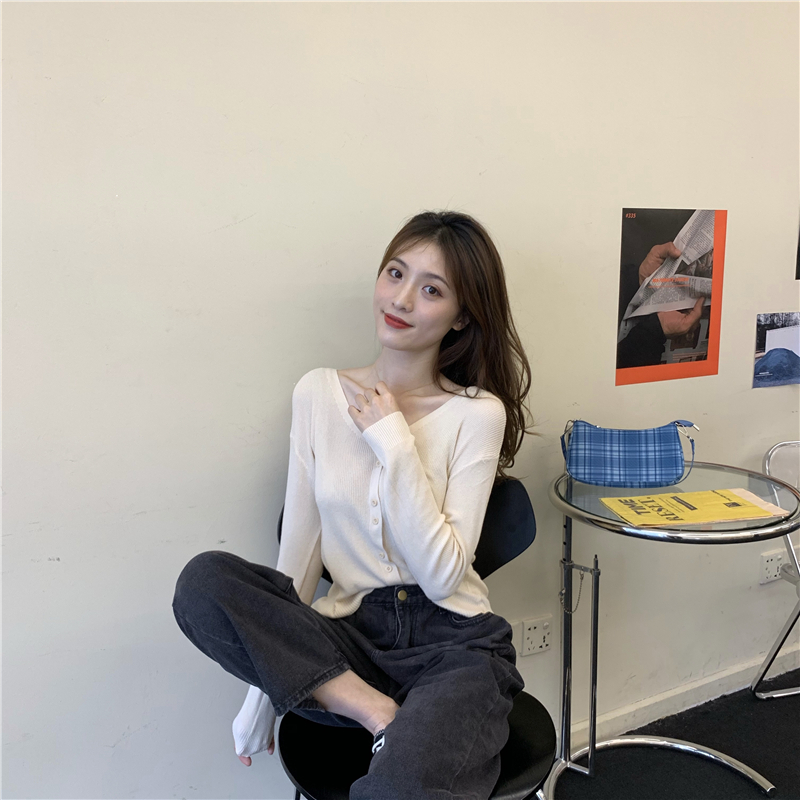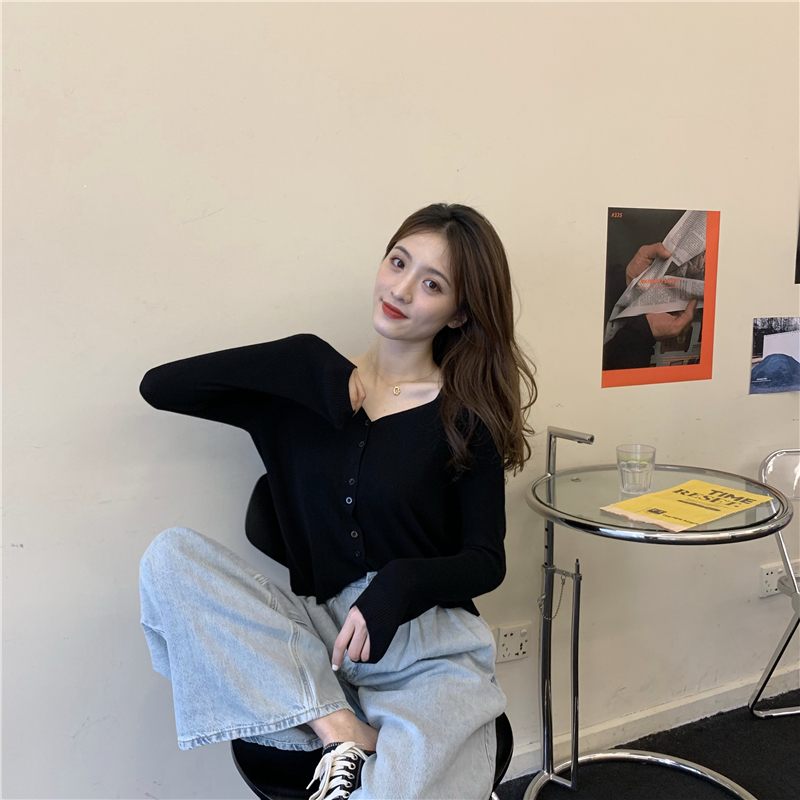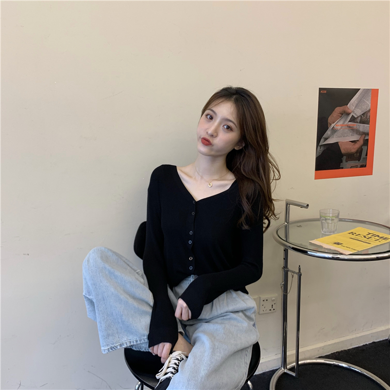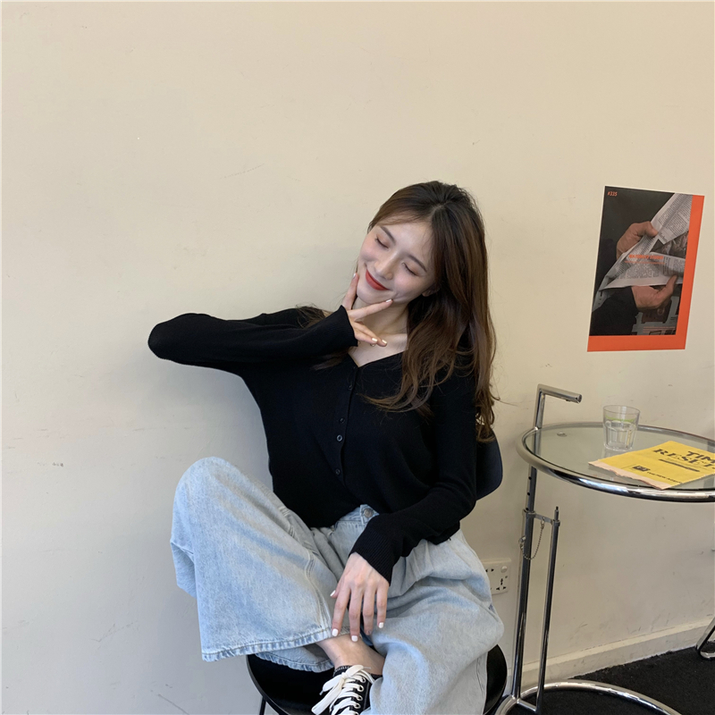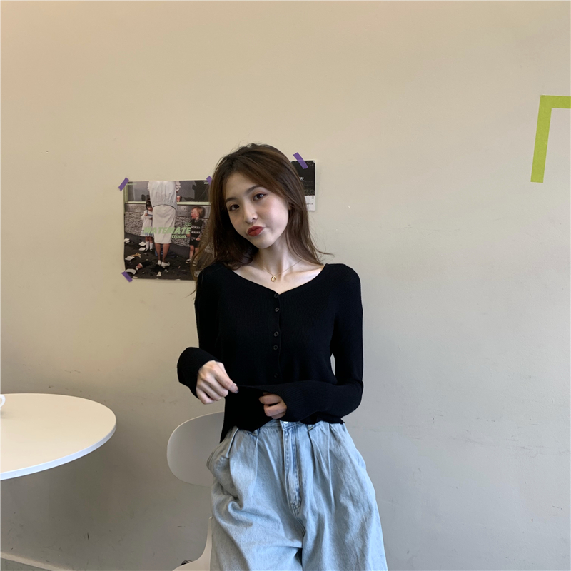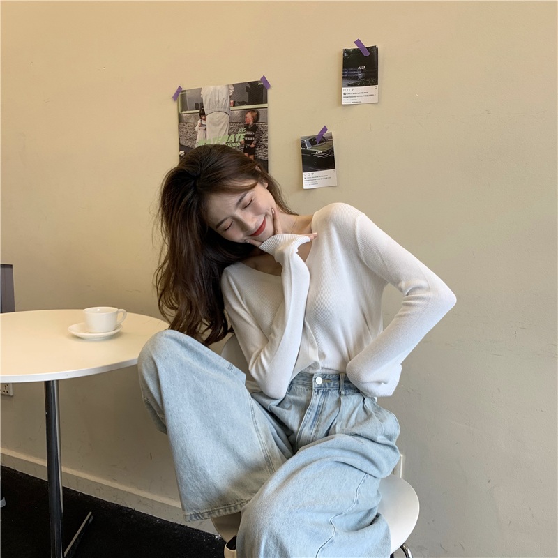 실사 정가 레트로 chic 낮은 가슴 섹시함 광장 칼라 몸매 가꾸기 슬림해 보이는 단색 긴팔 티셔츠 맨위