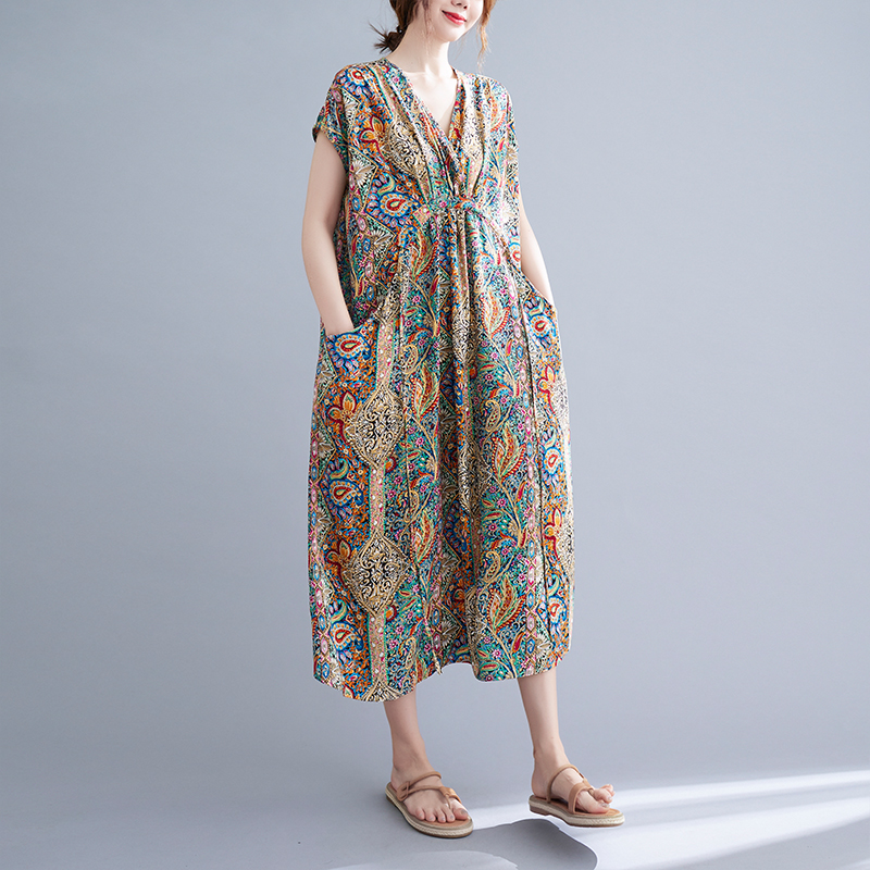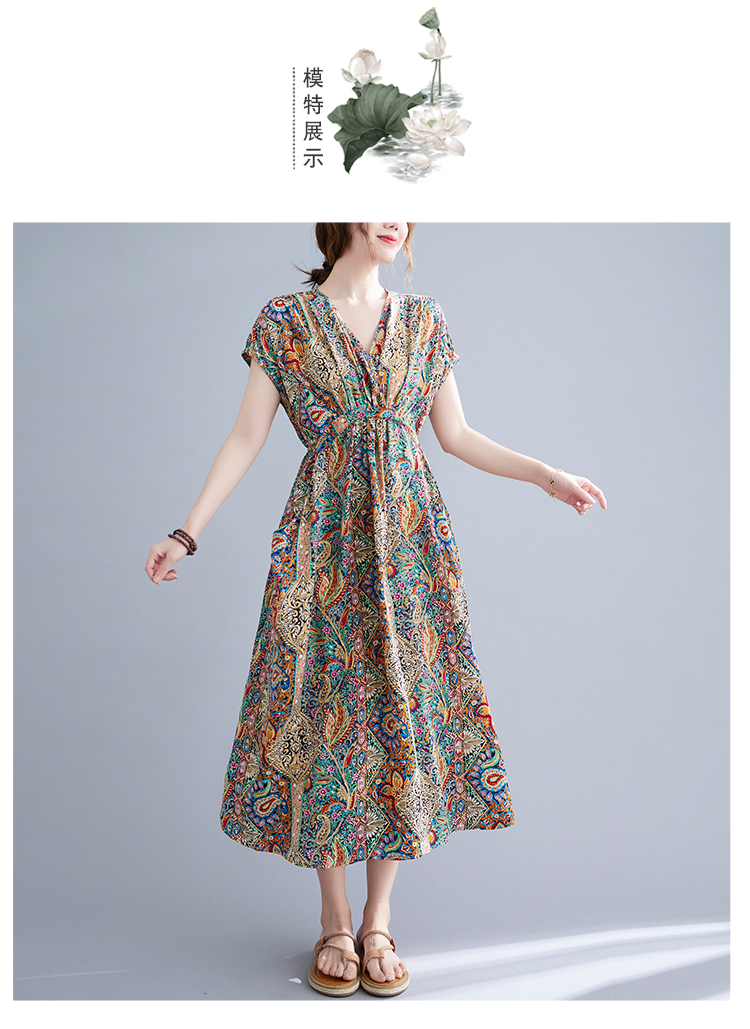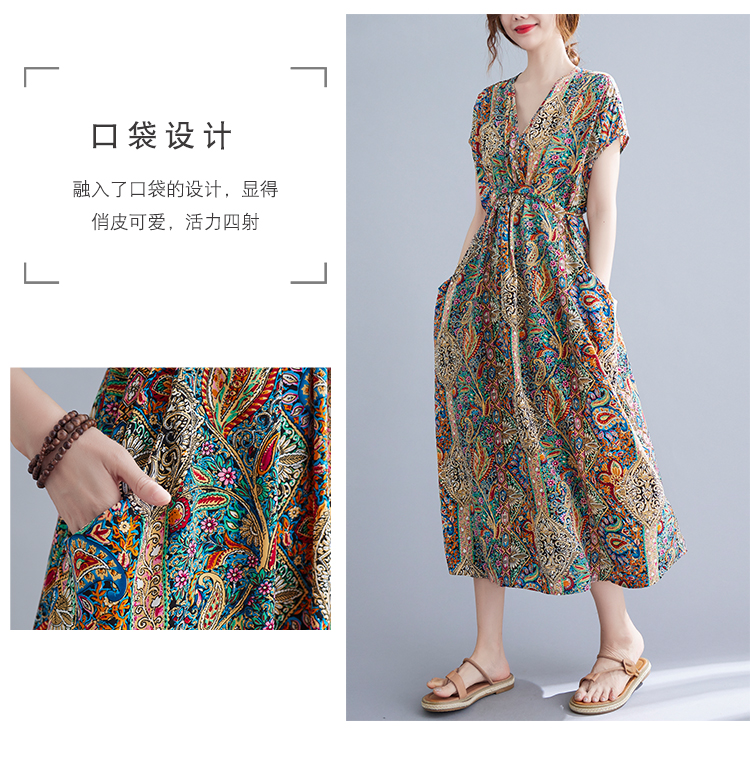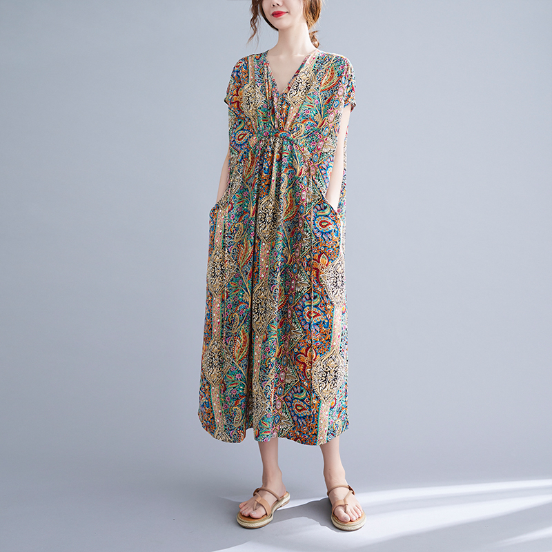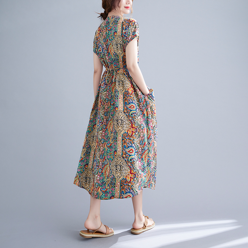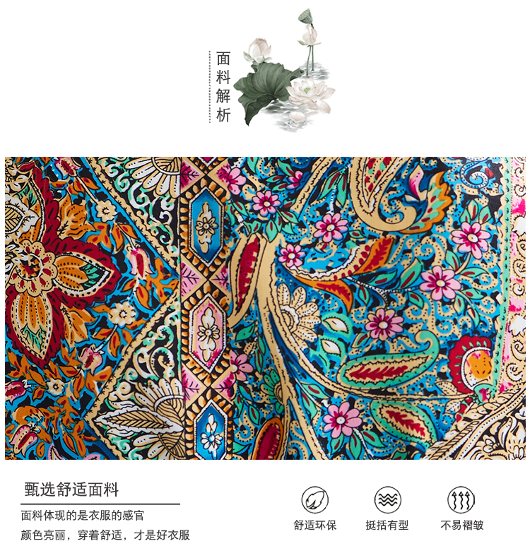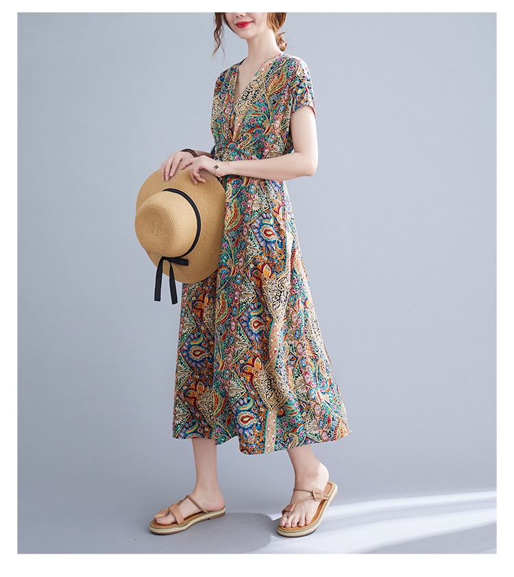 실사 2026 여름 디자인 센스 루즈핏 민족 스타일 프린트 여성 드레스 품격 여행 휴가 바람 롱 스커트