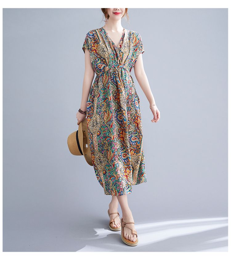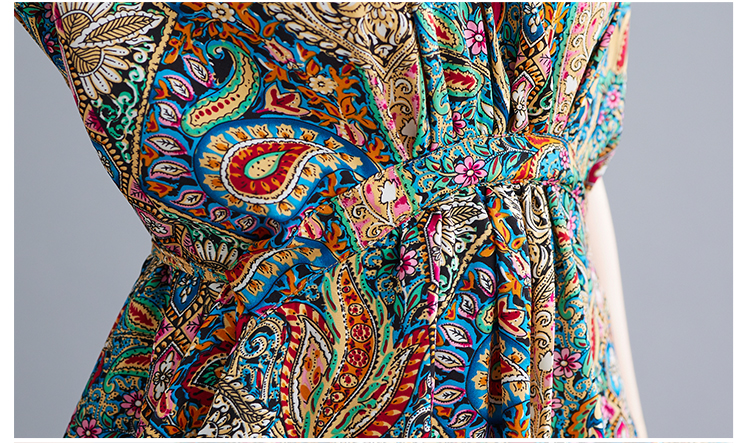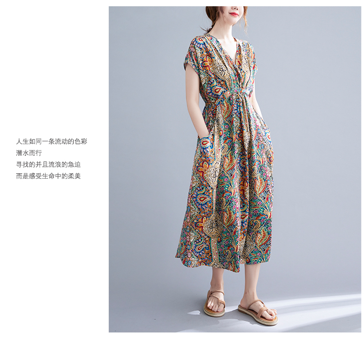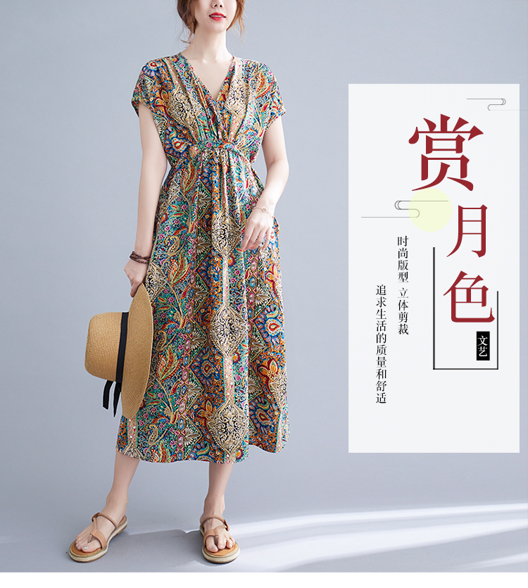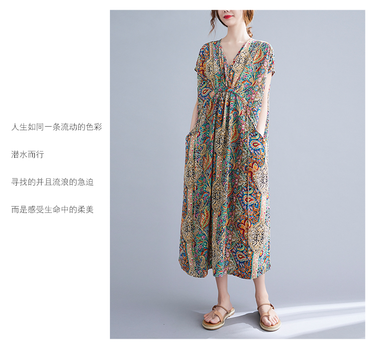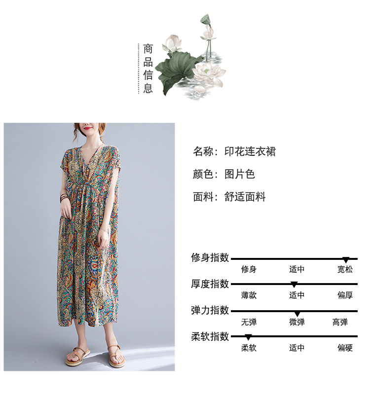 실사 여름 빅 사이즈 새로운 나뭇잎 프린트 여성 드레스 허리 수축 해변가 휴가 바람 품격 길다 치마 대외 무역