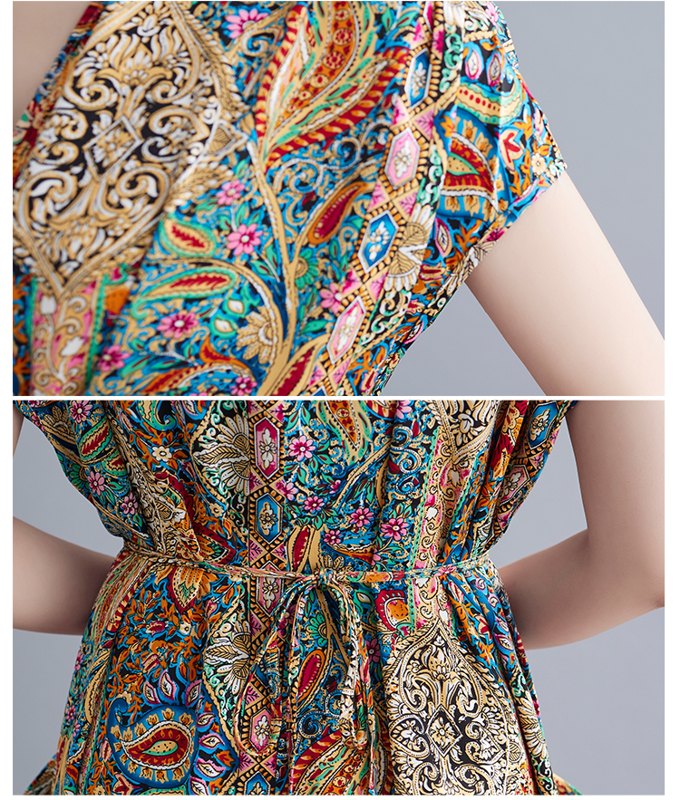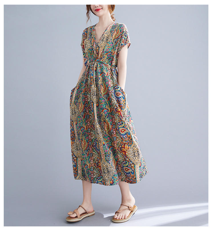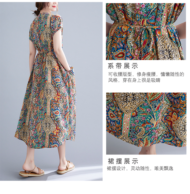 실사 여름 새로운 보헤미안 드레스 벨트 루즈핏 롱 스커트 로브 빅 사이즈 슬림해 보이는 휴가 치마